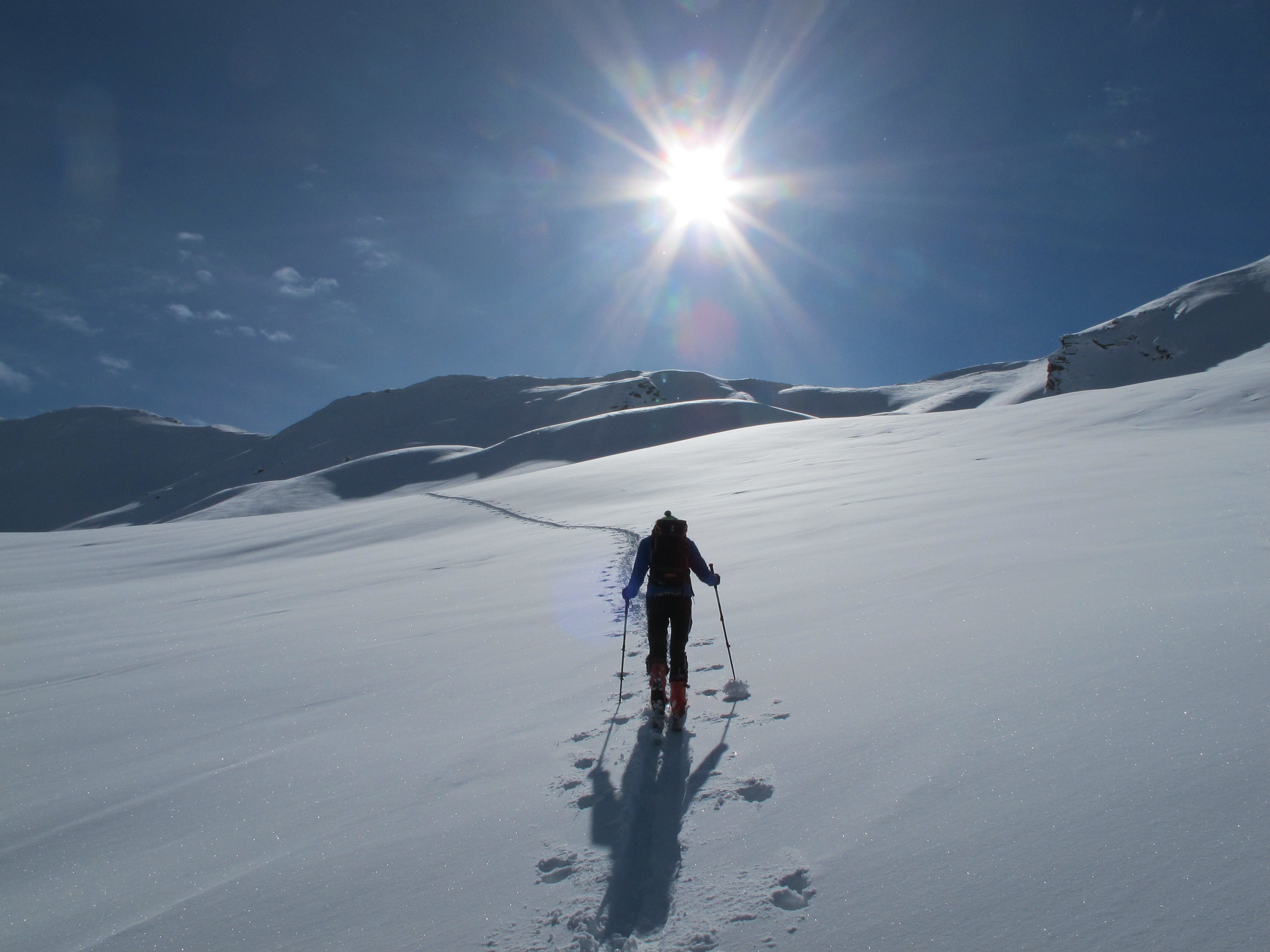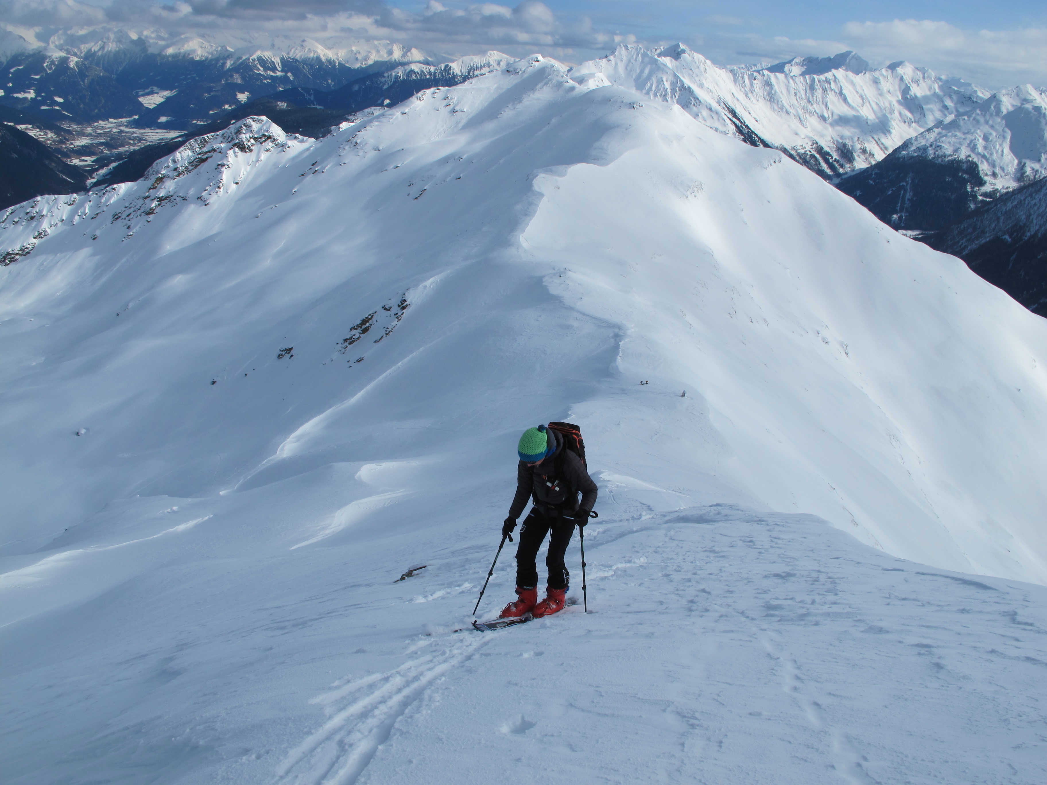 Augfstieg über de steilen Ostgrat, Abfahrt entlang des Nordrückens.