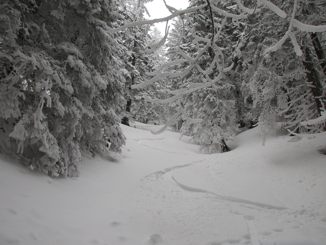 Tourenverhältnisse: Sehr gut / alles tief verschneit / trockener Pulver bis 20 cm auf tragendem Altschnee / net vui los heit
