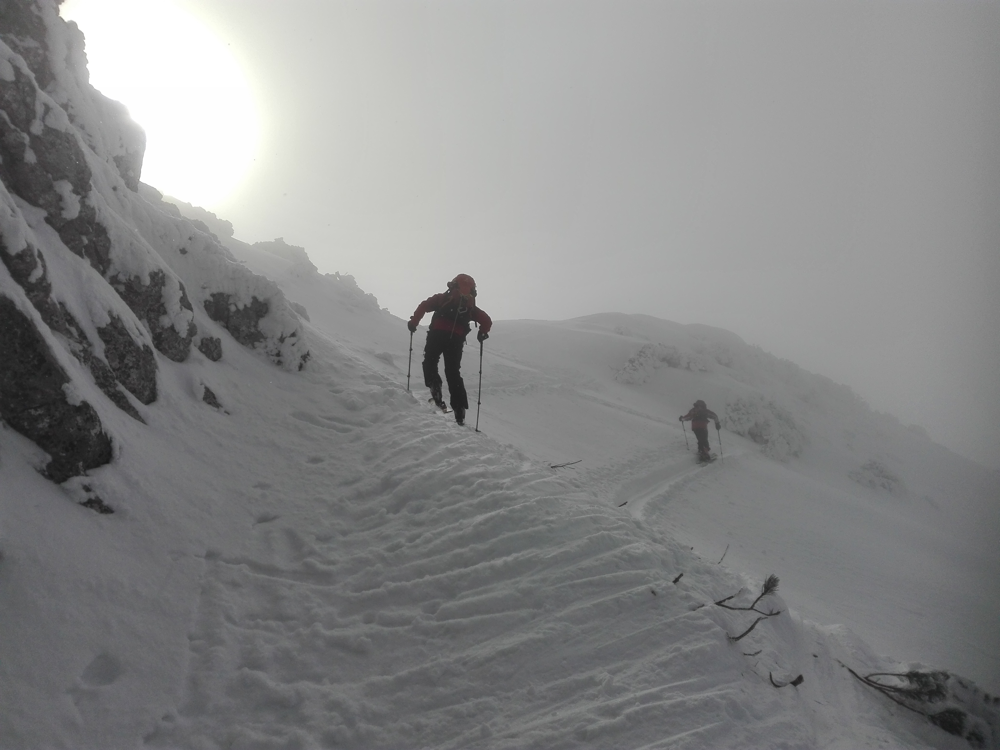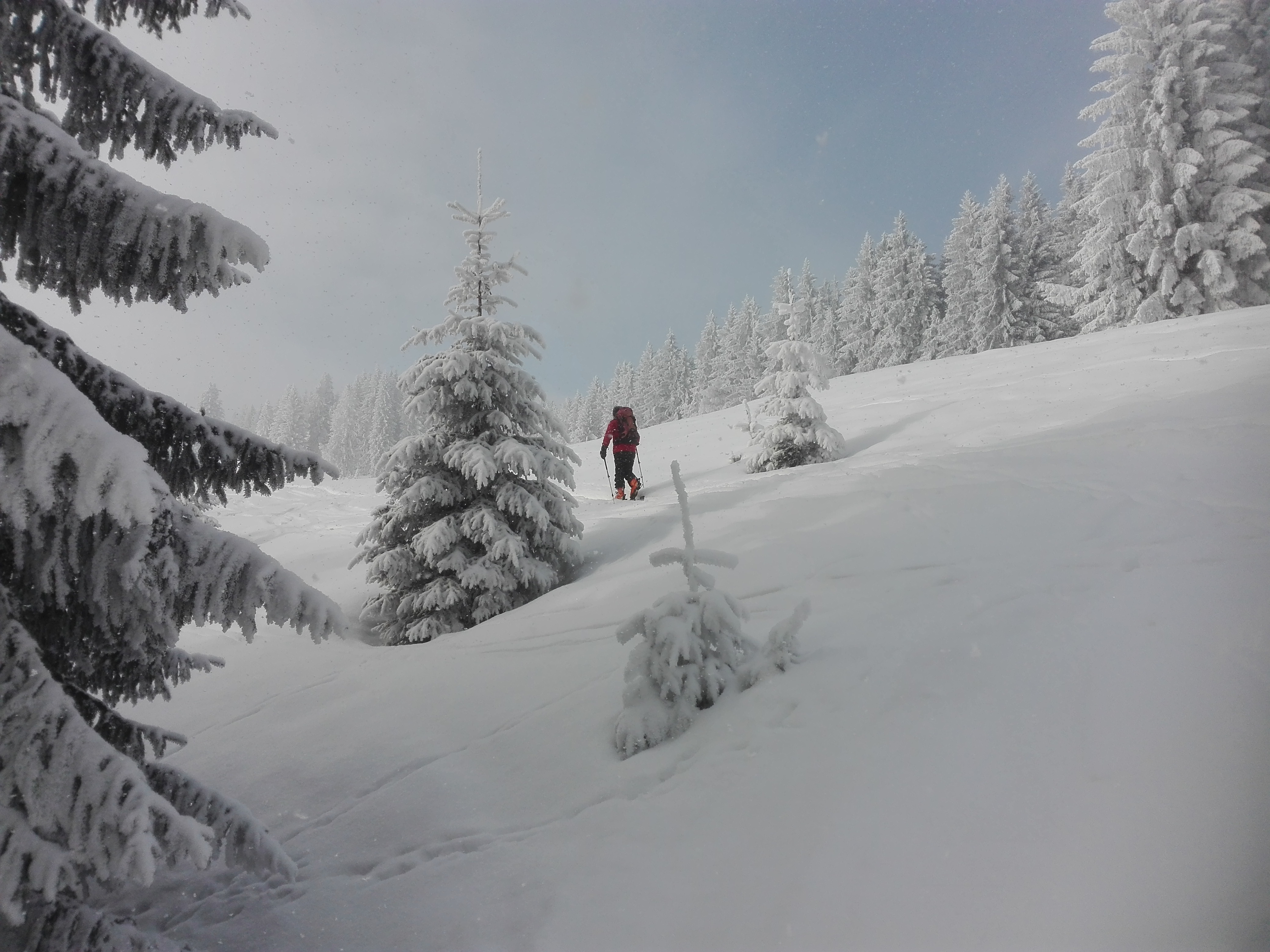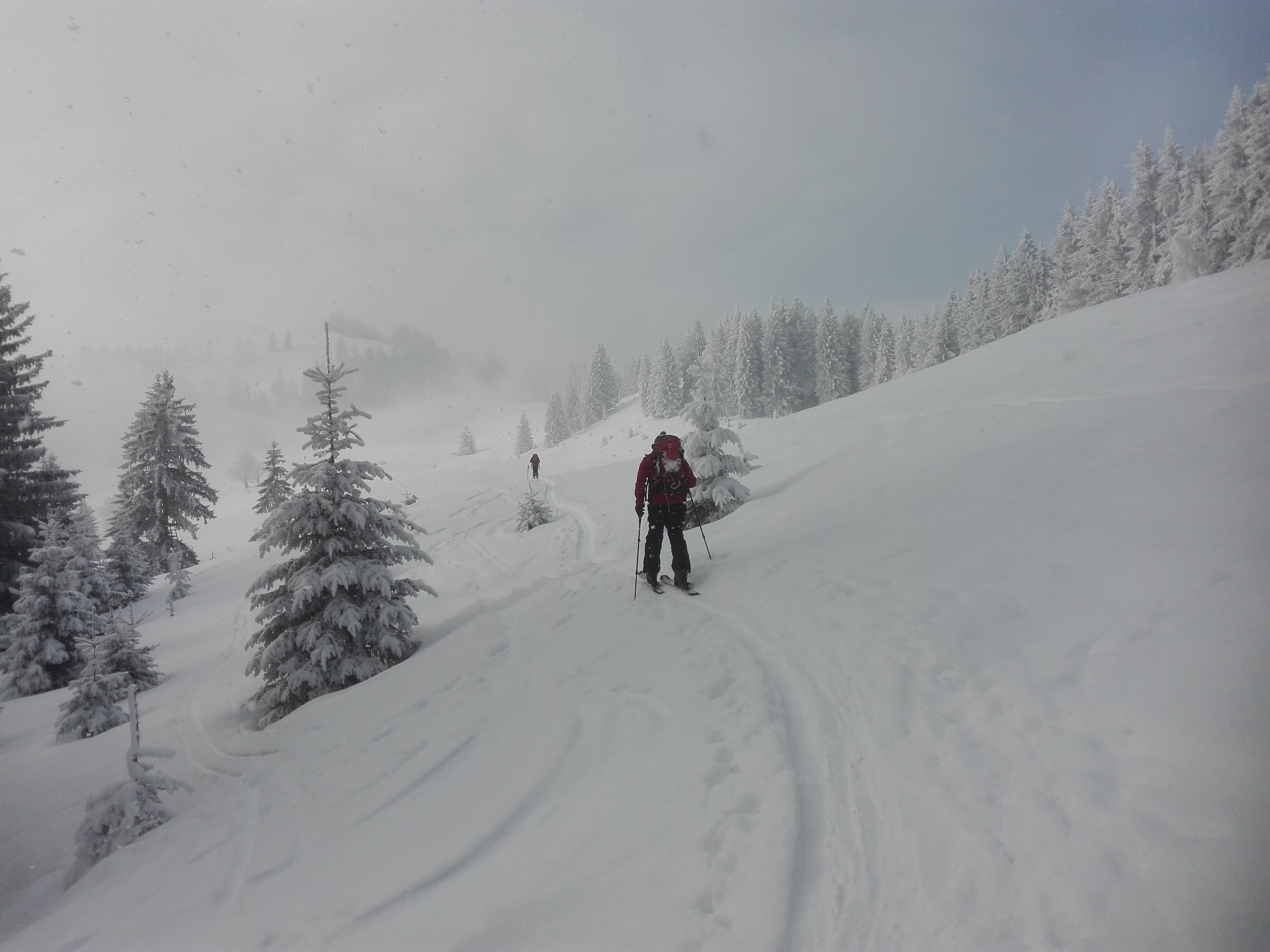 Tourenverhältnisse: Vom Parkplatz über Baumoosalm und Seeonalm zum Sattel unterhalb des Unterberger Joch und den Steilhang hoch zum Grat. Über diesen zum Gipfel. Abfahrt vom Gipfel nach Norden und durch den "Stopselzieher" zur Rosengasse. Von dort entlang der Straße zum Ausgangspunkt. Im Aufstieg ein Wintermärchen mit teilweise Sonne, teilweise Nebel. Am Gipfelgrat und Gipfel sonnig und kaum Wind, bei der Abfahrt im Gipfelhang wieder neblig, darunter Sicht. Durch den Nebel und die vielen spuren war der Gipfelhang nicht besonders gut zu fahren, im Stopselzieher relativ hart, unterhalb Pulverschnee. Die Strecke von der Rosengasse zum Waldparkplatz an der Straße entlang ist nicht empfehlenswert(lieber wieder über die Seeon- und Baumoosalm zurück, auch wenn da ca. 100Hm Gegenanstieg dabei sind).