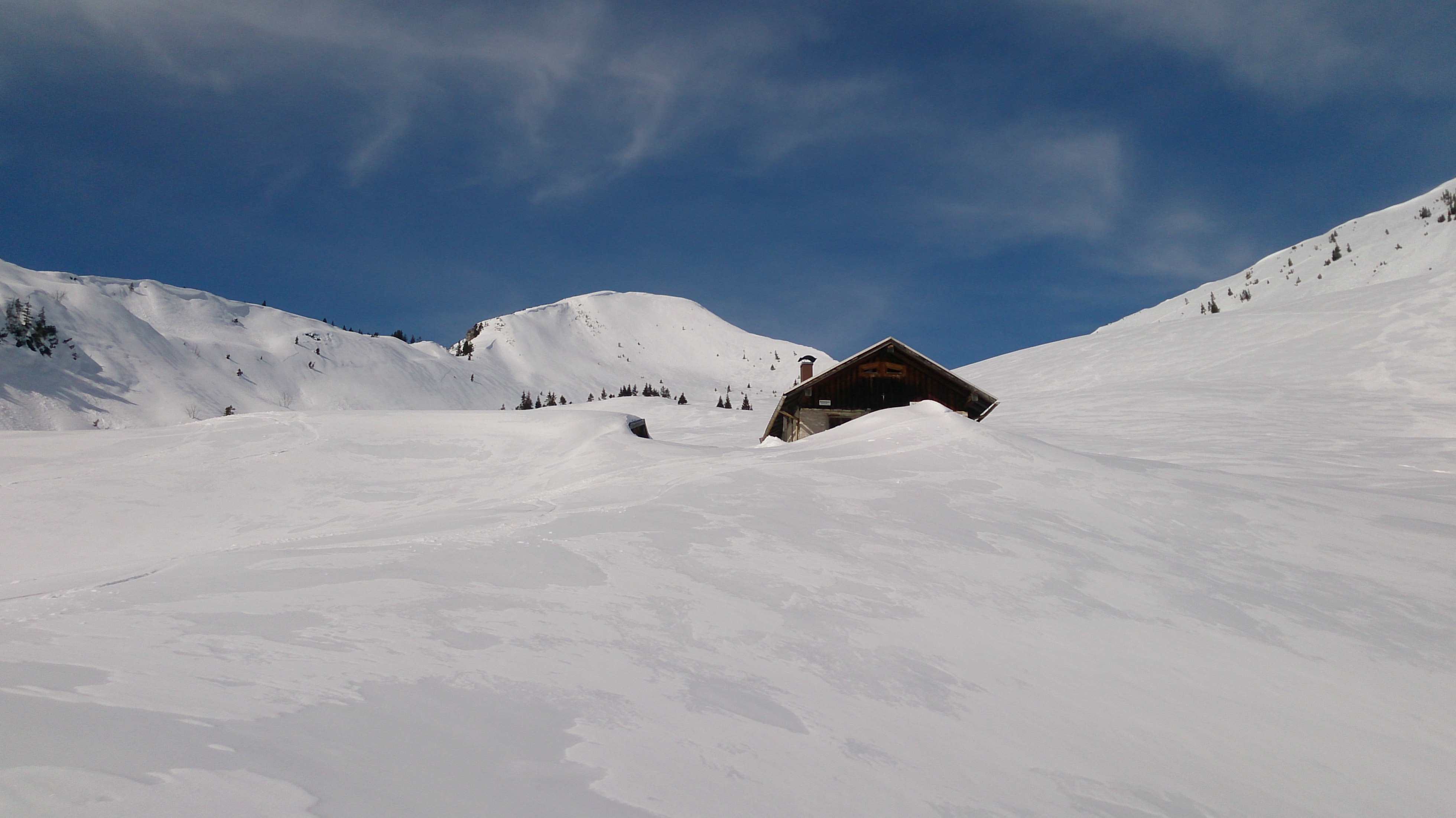 Tourenverhältnisse: Frühling! Heute bis Mittag sehr warm, der Schnee reichte heute aber noch von unten weg; allerdings taut es südseitig im unteren Teil überall