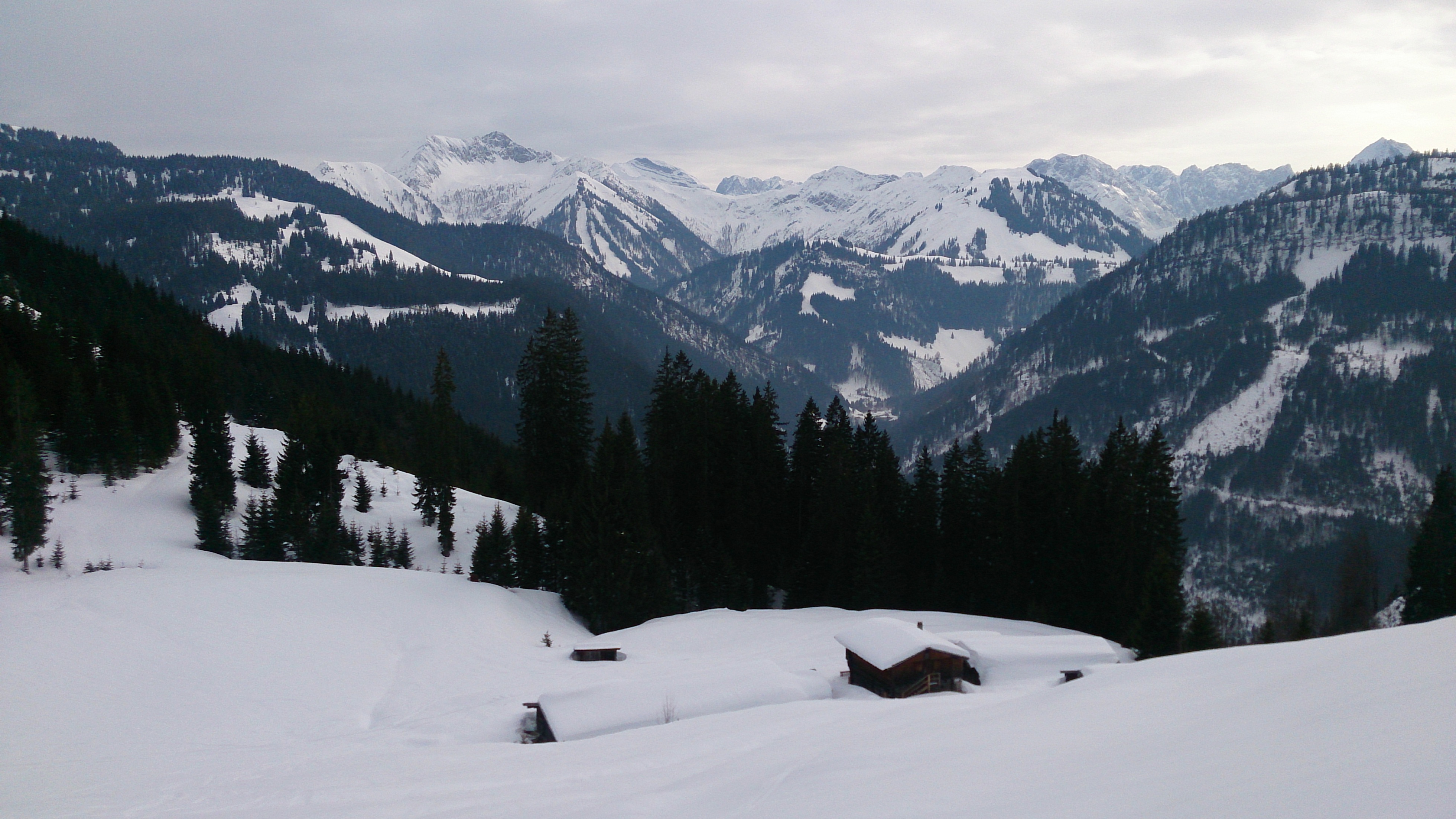 Wermutstropfen ist der kilometerlange flache Anstieg von Fall und v.a. der Rückweg, der heute angesichts des sulzigen Schnees und Eises auch mühsam war. In der Abfahrt hält man sich am besten über die Zoten-Alm (Hochleger; Mittelleger und Niederleger), dann gibt es fast durchgehend freie Hänge bzw. teilweise Forststraße, aber kein Geholze. Allerdings auch 9 Kilometer schieben / skaten von der Jausenstation Aquila. Die schönen Hänge oben wollen wirklich etwas erkämpft werden.