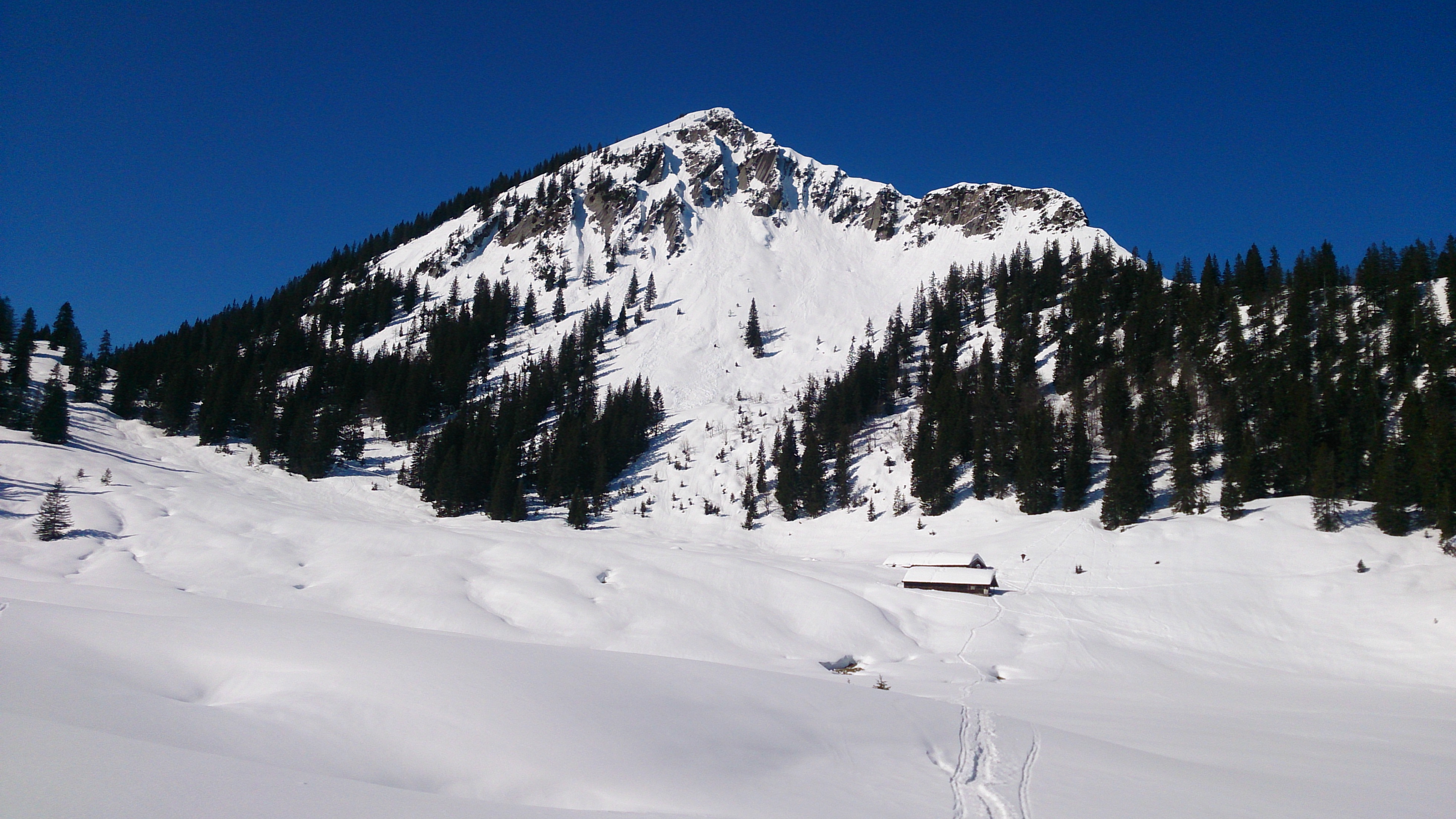 Gefahreneinschätzung: der Aufstieg zum Blaubergkamm und der Gipfelhang sind steil, hier braucht man sichere Verhältnisse