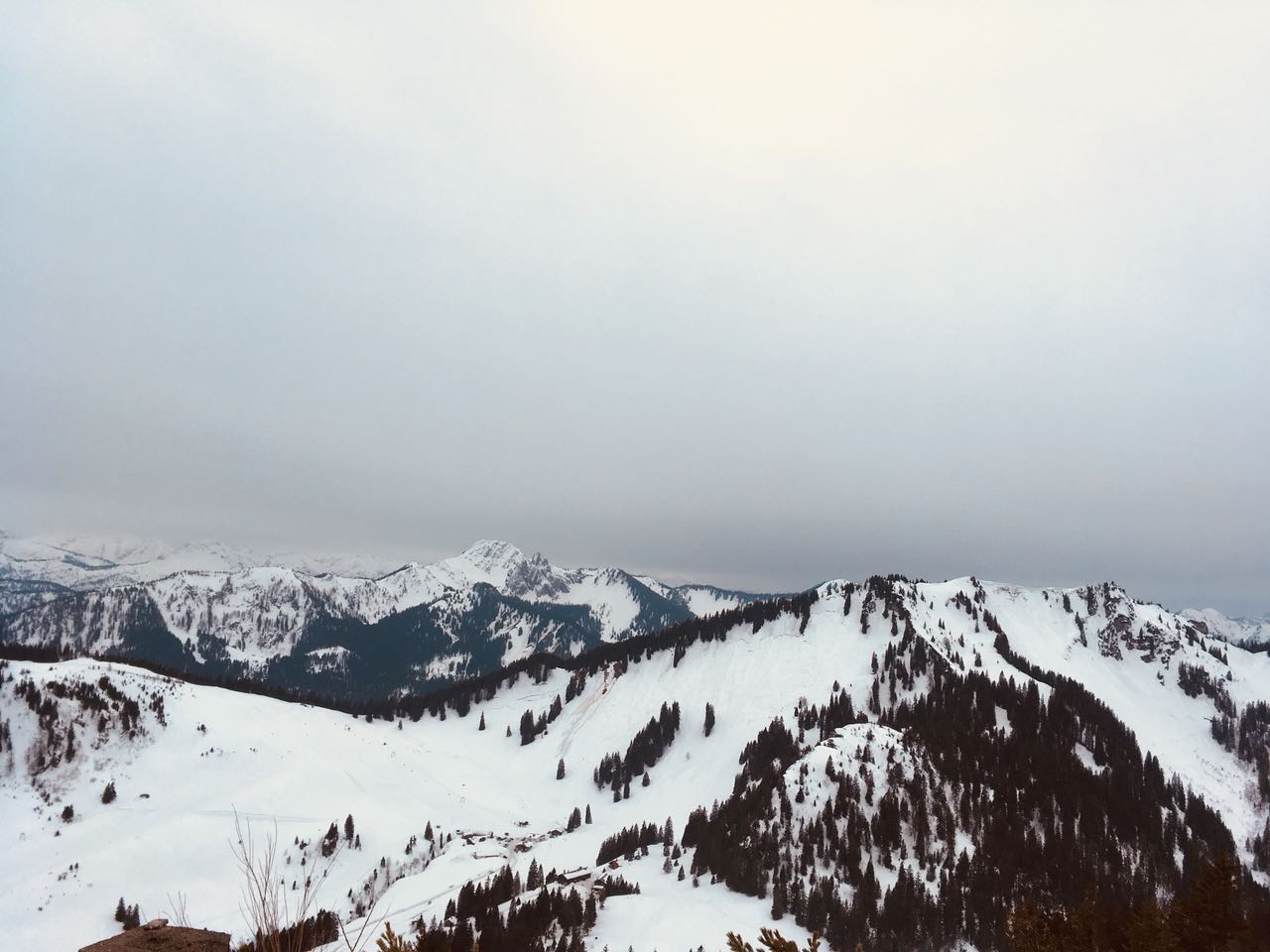 Es war durchgehend bedeckt, hat sogar ab und an etwas geregnet. Der Schnee war aber vor allem in den oberen Bereichen der Abfahrten sehr schön firnig, in den unteren Bereichen durch den Regen etwas stumpf. Die STraße zur Unteren Firstalm ist schon großteil aper und zudem gestreut. Im Aufstieg sind wir über die Wiesen daneben ausgewichen.