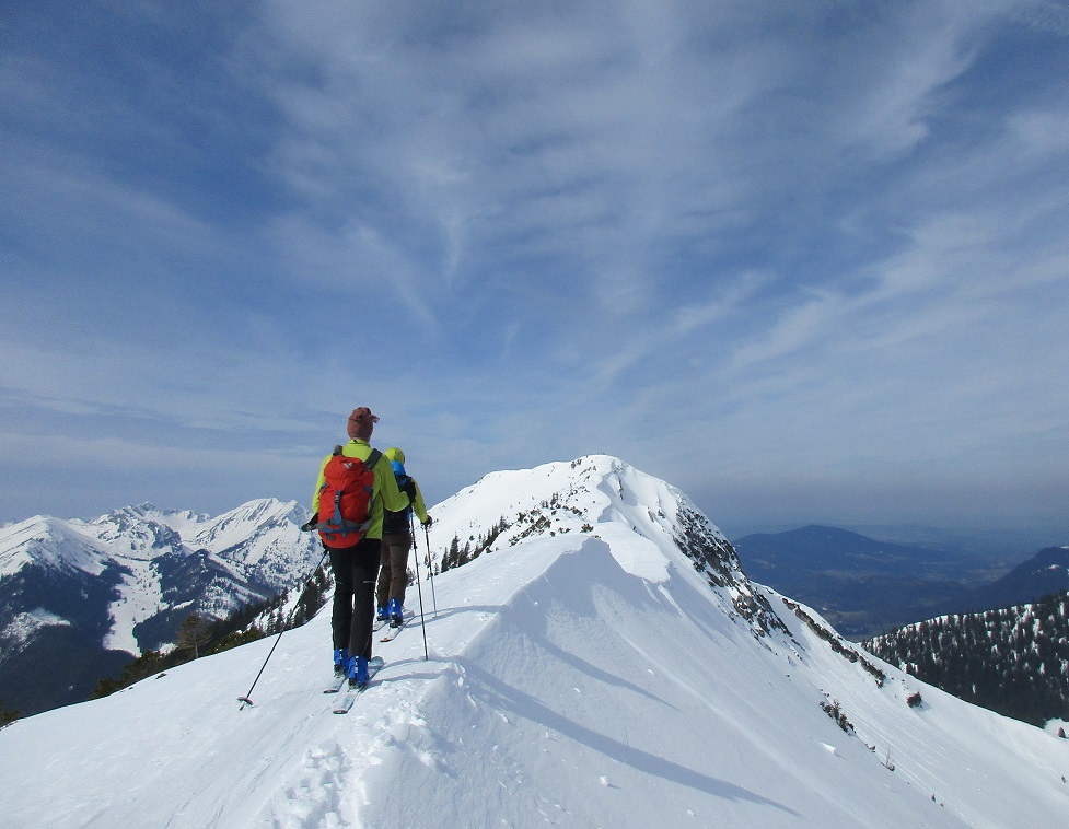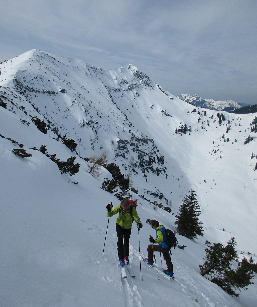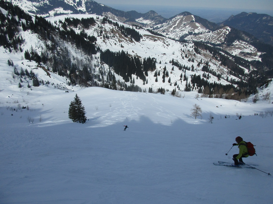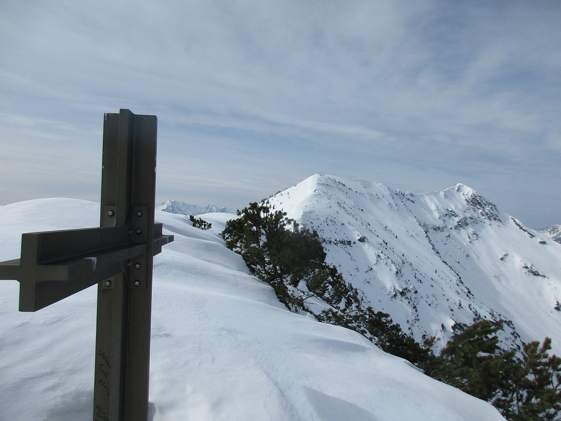 Tourenverhältnisse: Sehr Gut / genug Schnee / fast alle Latschen tief verschneit / kräftiger Südwind / Abfahrten : Wo die Sonne hinkam = feinster Firnschnee ( tragend ) in den Schattenhängen hingegen nicht so toll = etwas Neuschnee auf einer bockelharten Unterlage