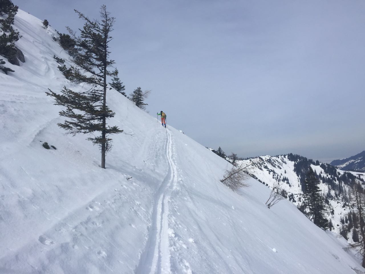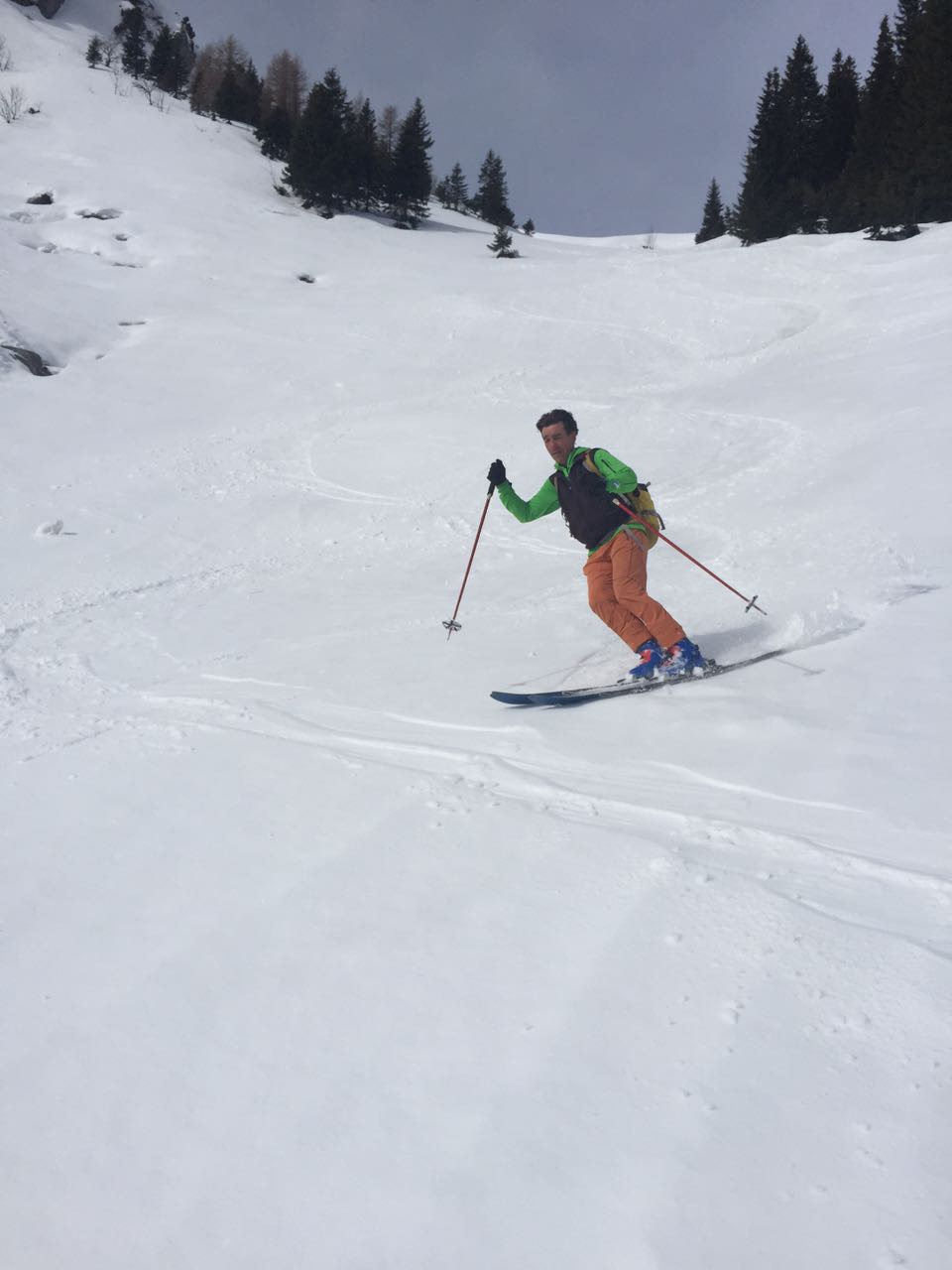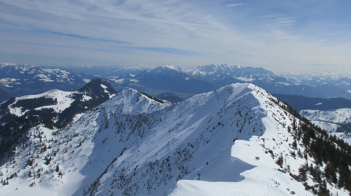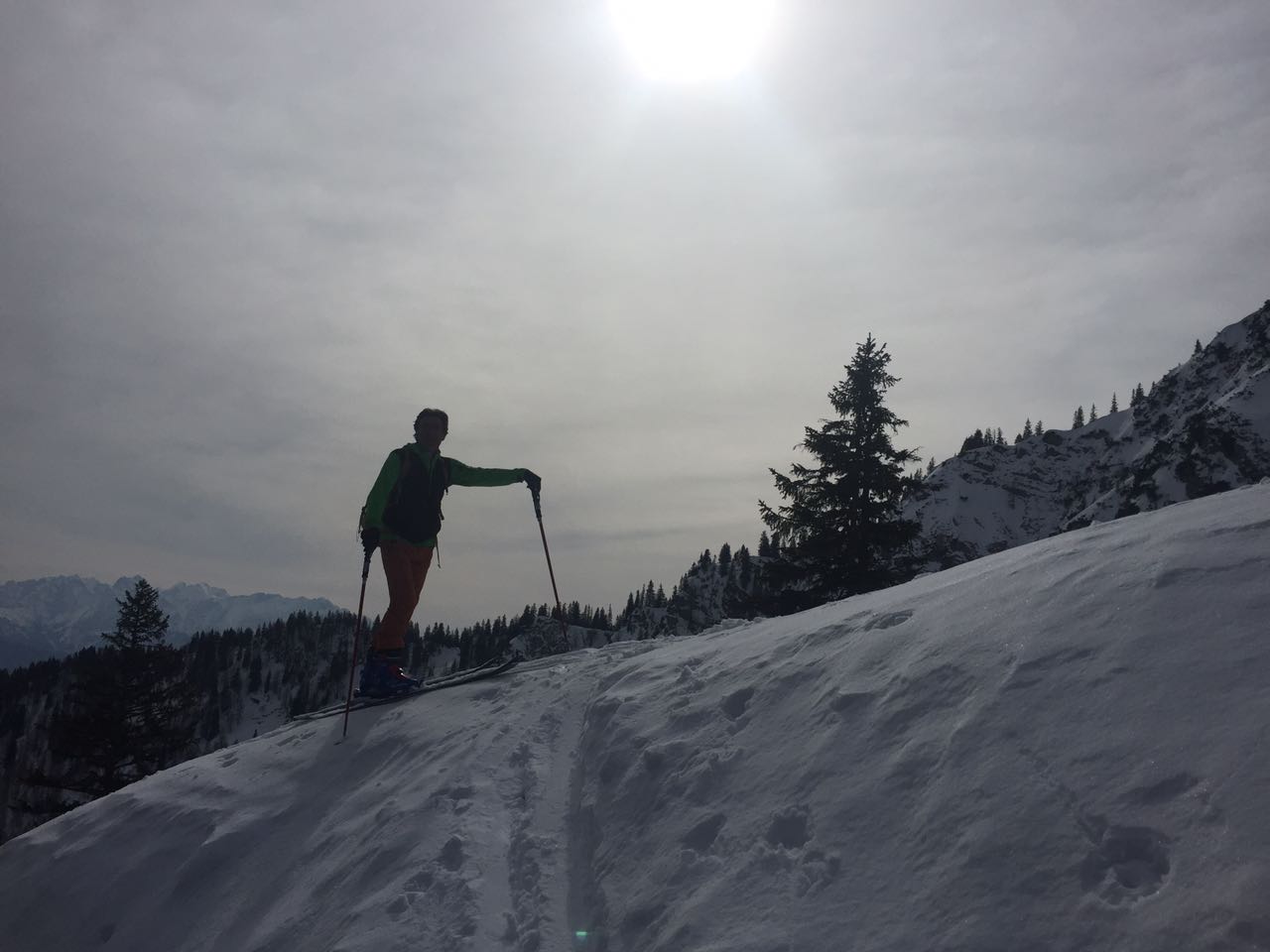 Tourenverhältnisse: Sehr Gut / genug Schnee / fast alle Latschen tief verschneit / kräftiger Südwind / Abfahrten : Wo die Sonne hinkam = feinster Firnschnee ( tragend ) in den Schattenhängen hingegen nicht so toll = etwas Neuschnee auf einer bockelharten Unterlage