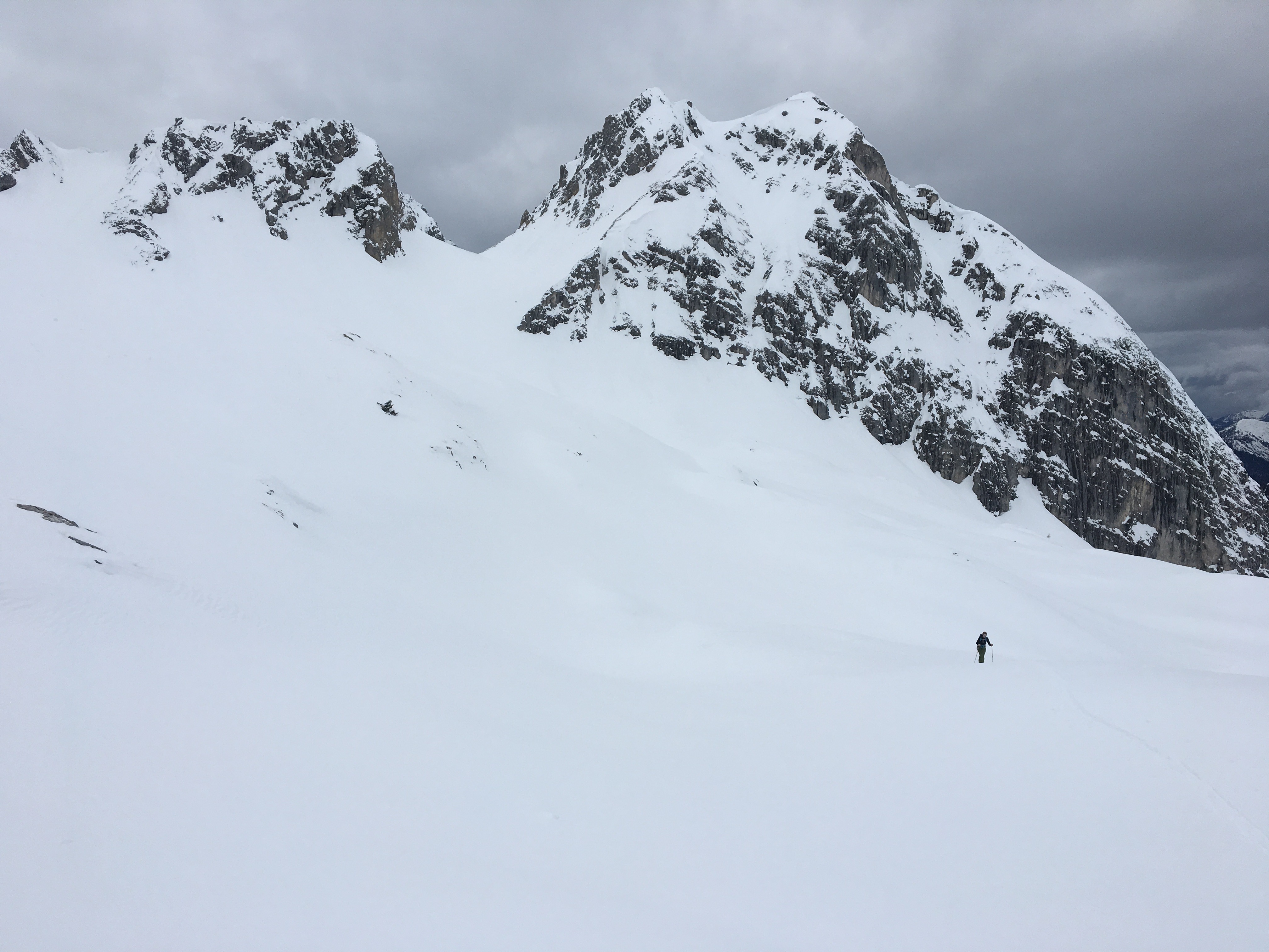 Tourenverhältnisse: überraschend gut; vom angesagten Regen keine Spur. Bis Mittag Sonne, dann dunkle Wolken über der Zugspitze, gute Sicht, Pulver.
