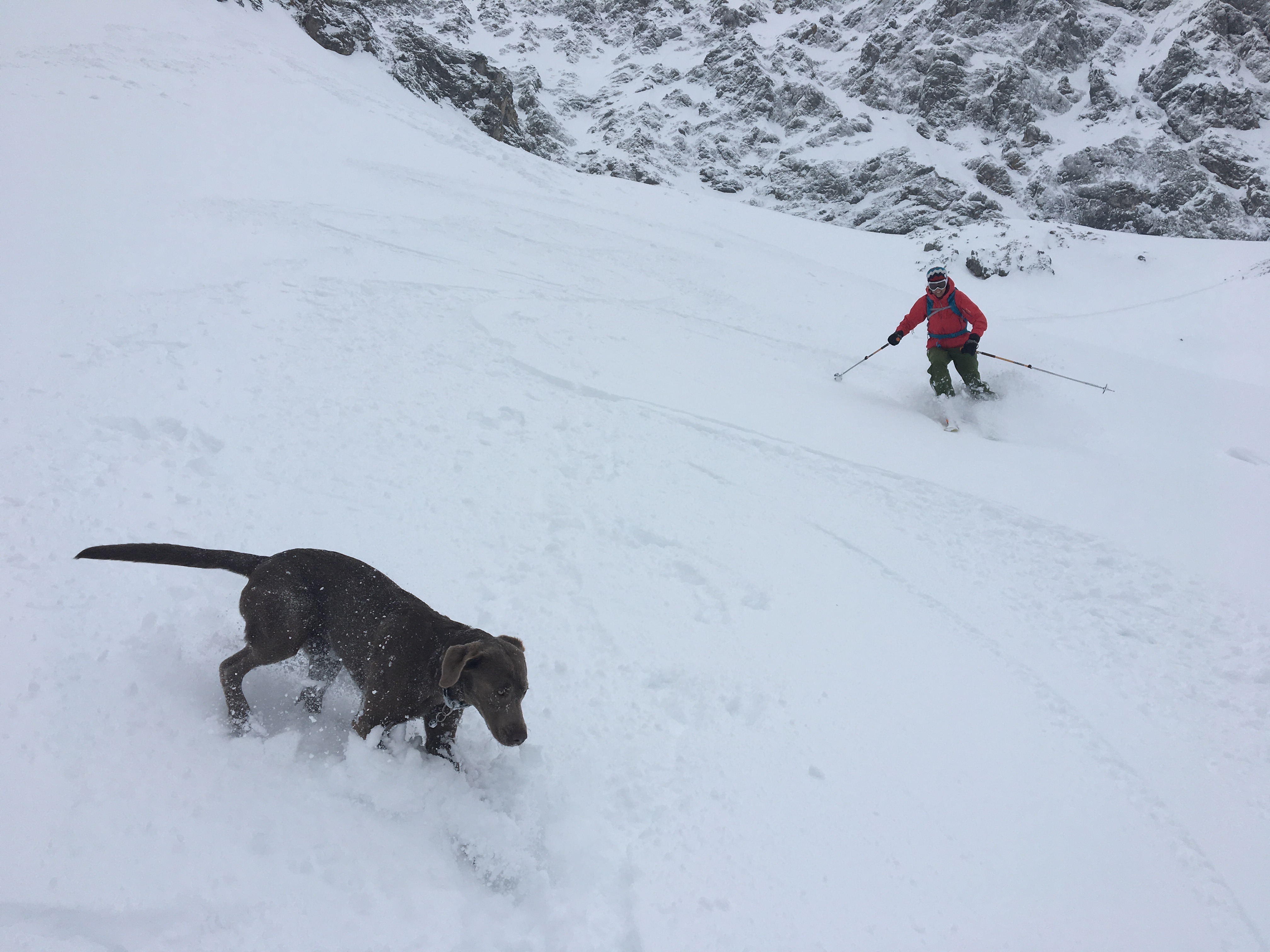 Sonstiges: Immer wieder schön! Pulver lag unverbunden auf Harschdeckel, dadurch im Aufstieg immer wieder weggerutscht, etwas nervig. Lola hat wie immer eine gute Figur gemacht...