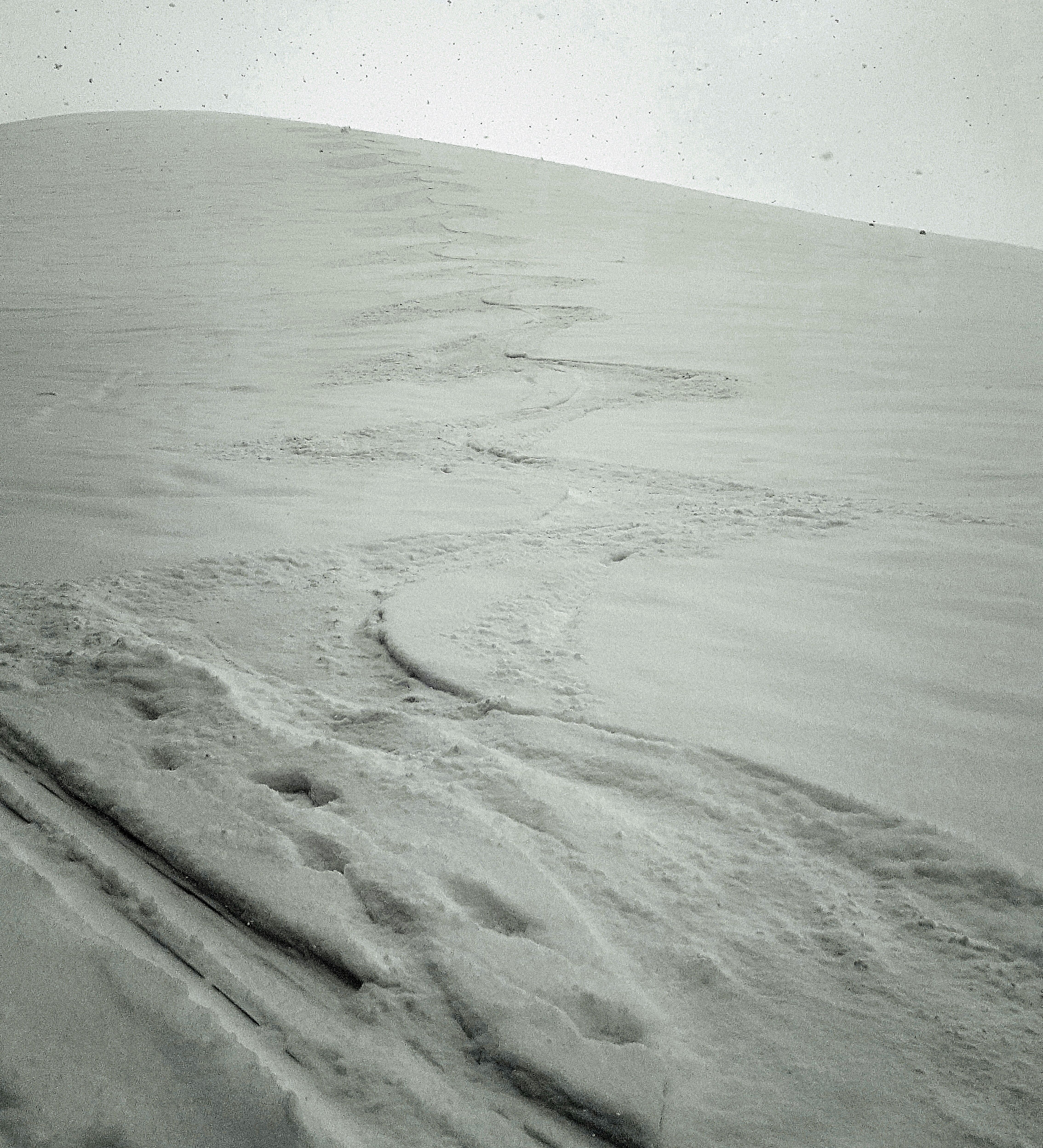 Skifahrerisch lohnend sind vor allem wenig befahrene Hangbereiche, denn bei den viel befahrenen spürt man arg die alten Spuren durch. Allerdings war die Sicht teilweise recht eingeschränkt...