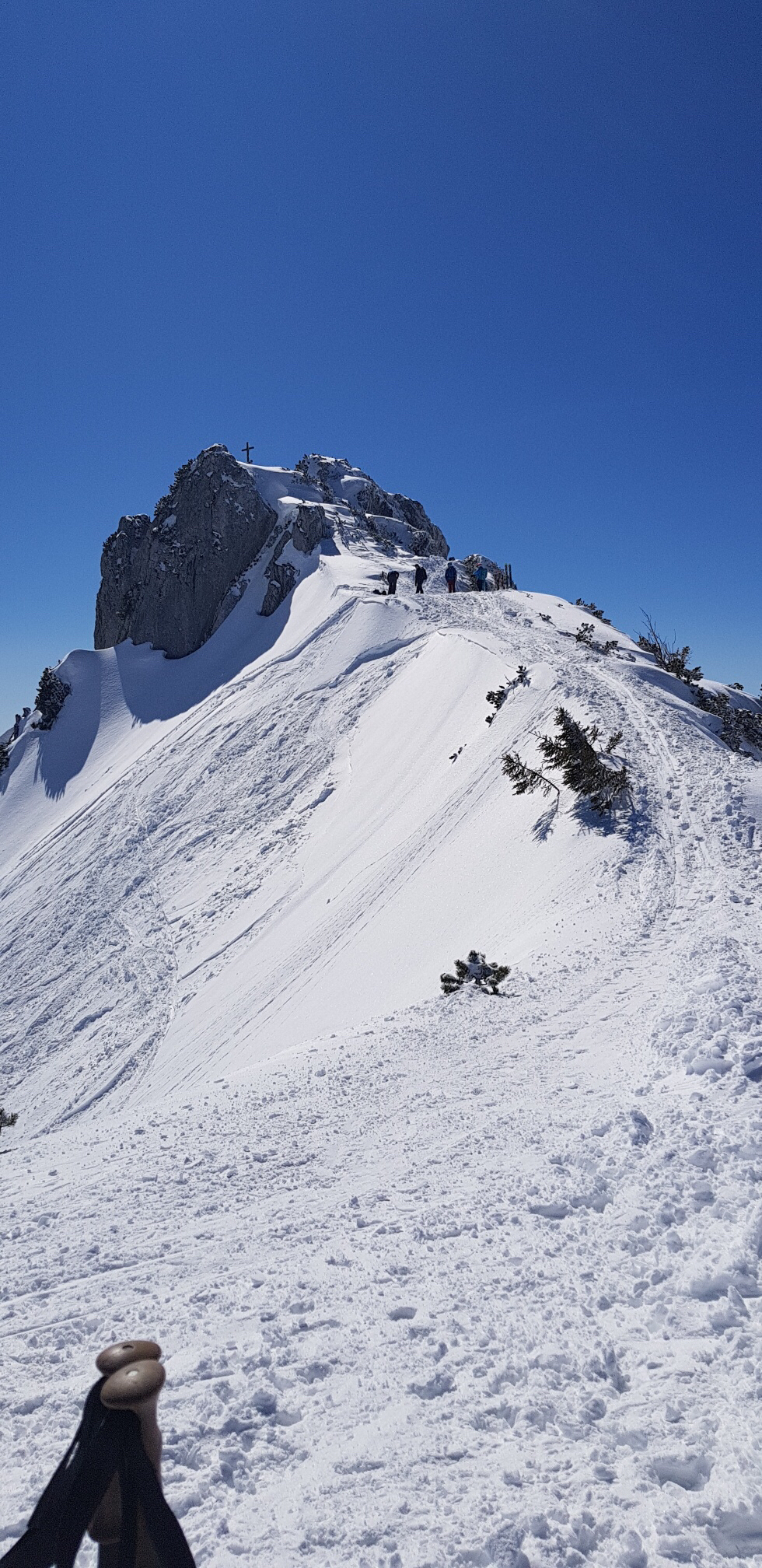 Tourenverhältnisse: Vom Ap über Wiesen hinauf ins Lacherkar, steiler weiter das Kar hinauf und rechts haltend zum Vorgipfel,