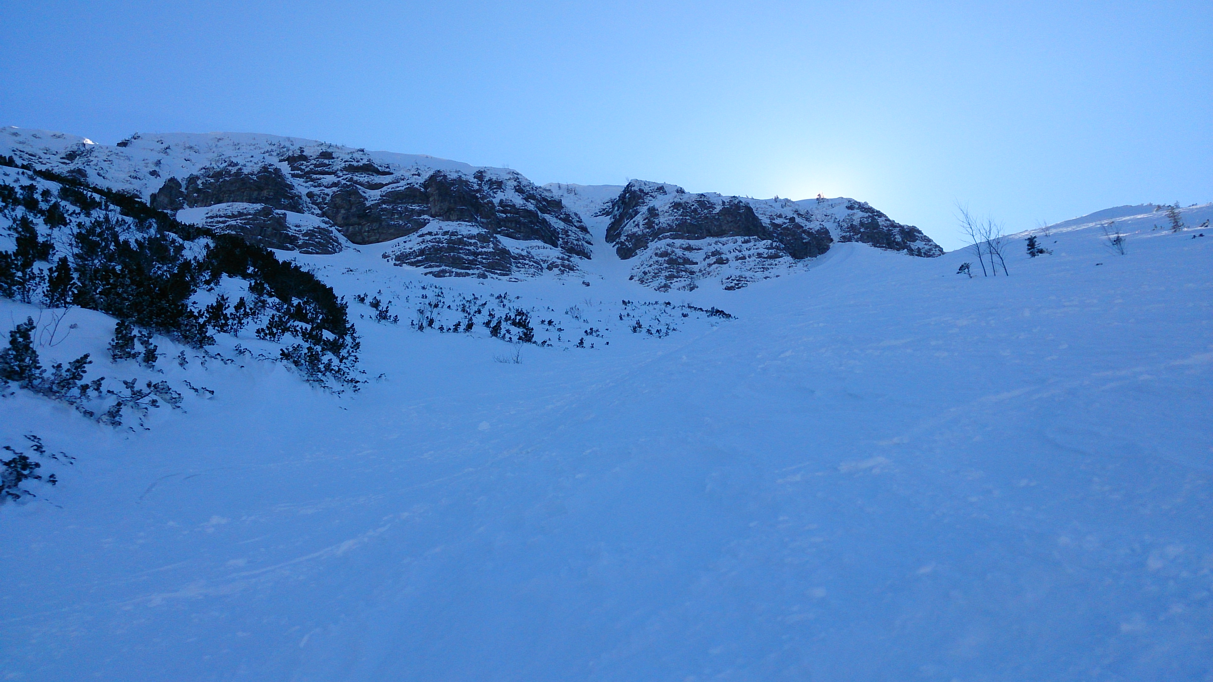 Nach dem Zustieg folgen an sich schöne Skihänge, leider die Grundlage etwas inhomogen:
