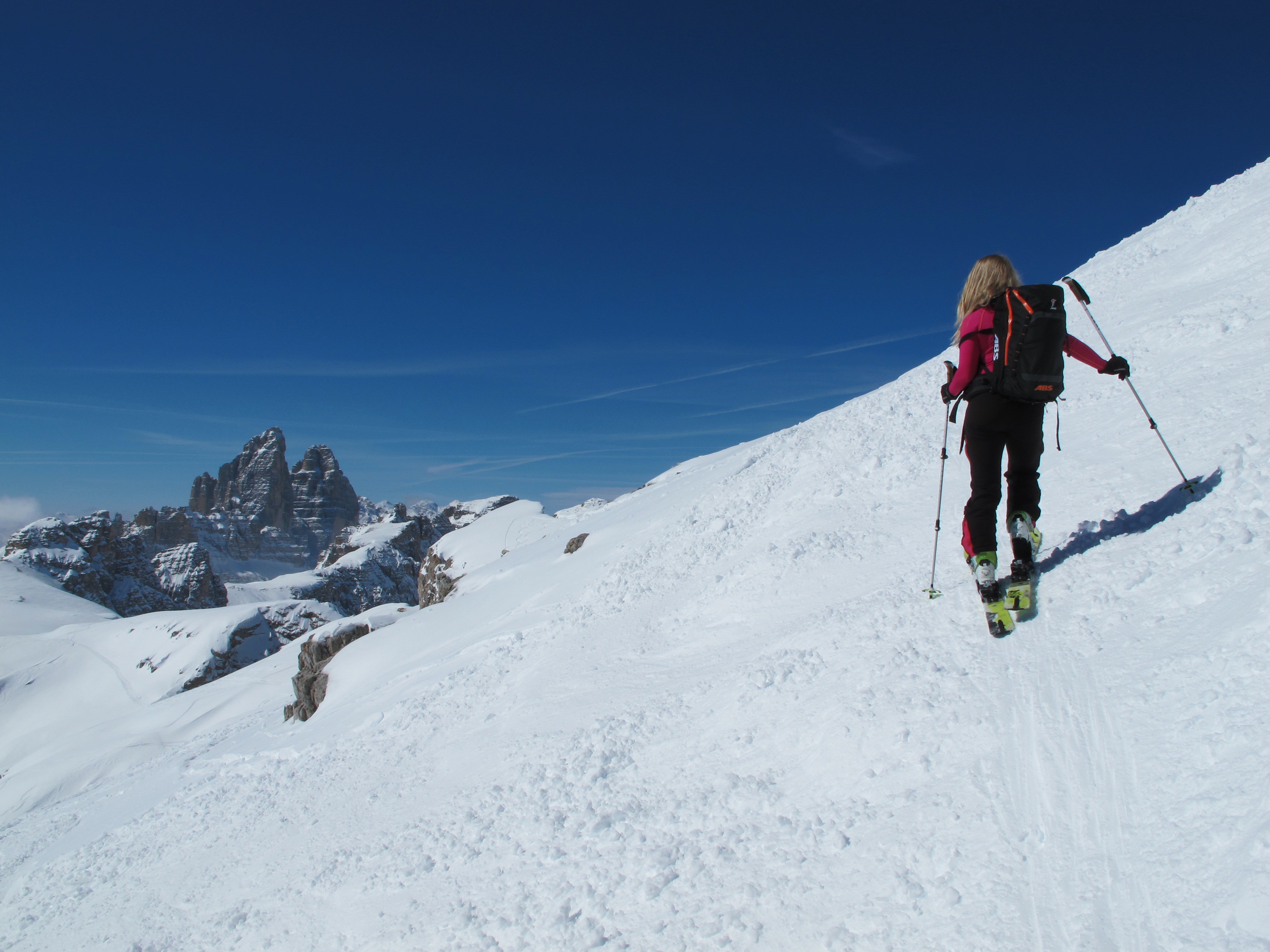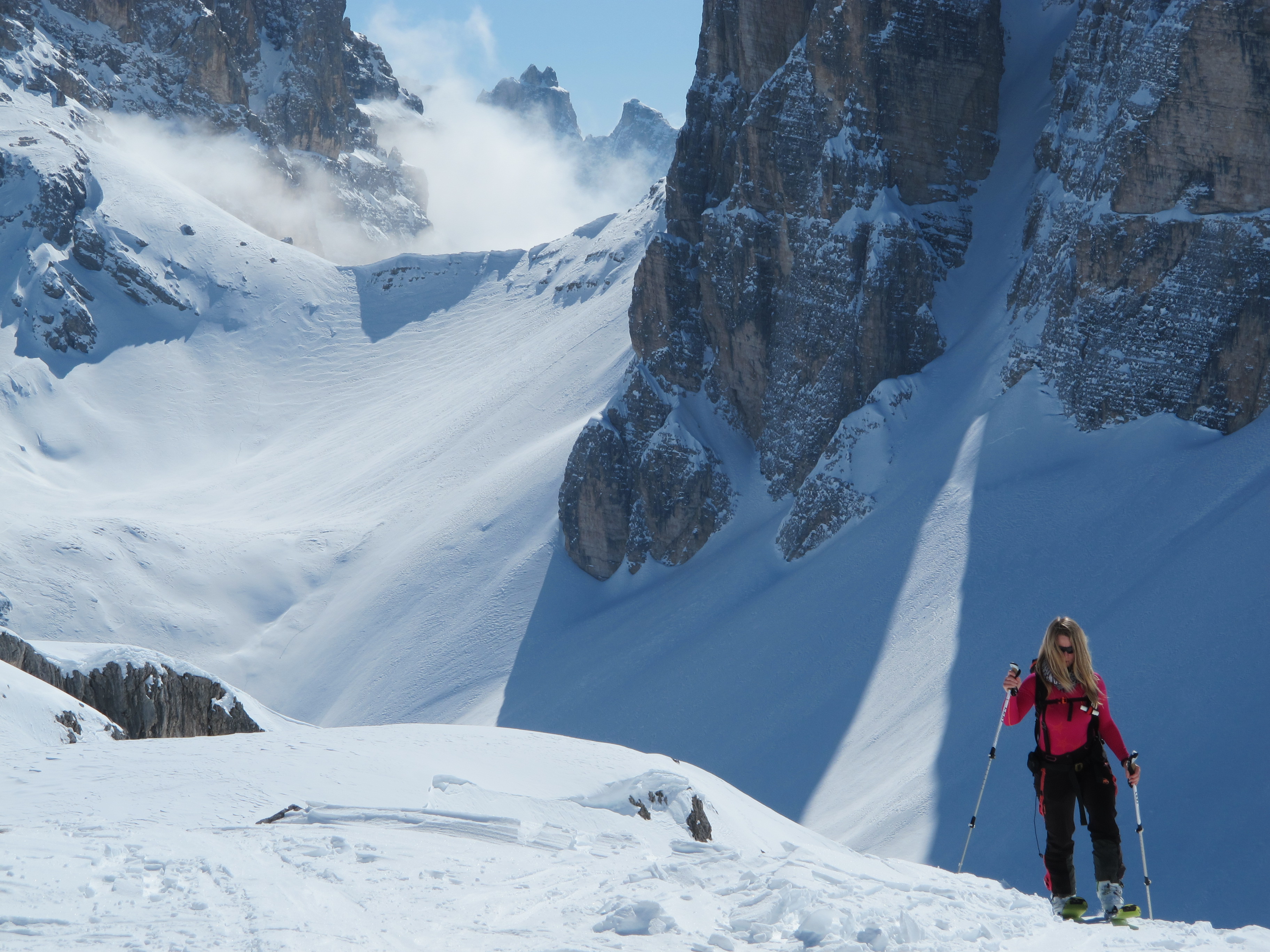 Schnee bei der Abfahrt teilswindgepresst, teils pulvrig, teils firnig. Ca. 60% gingen sehr gut zu fahren.