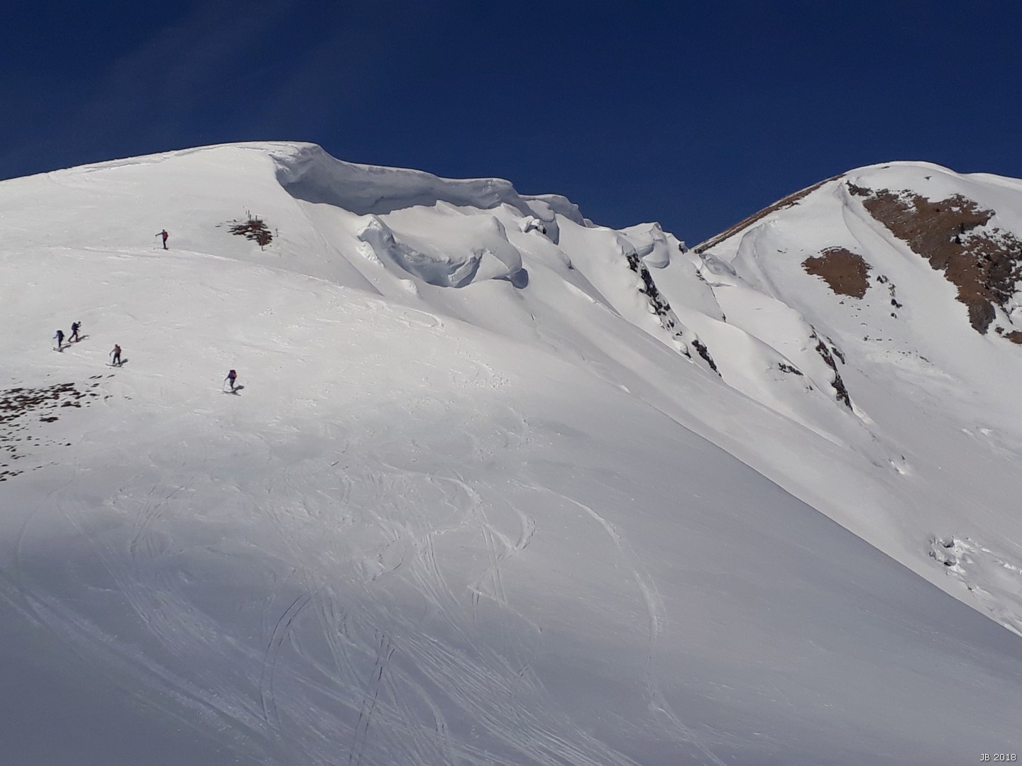 Tourenverhältnisse: ausgezeichnet, auf den Sonnenhängen schöner Firn, im Schatten noch etwas Pulver, am Gipfel heute windstill