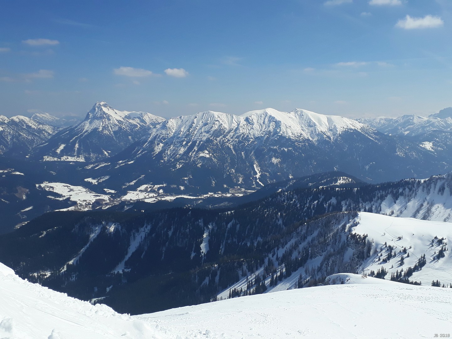 Obwohl beste Verhältnisse, hielt sich der Andrang in Grenzen. Der Gipfelaufbau ist am Südgrat fast schneefrei. Problemlose Abfahrt auch auf der Forststrasse, kein Eis, meist firnig.