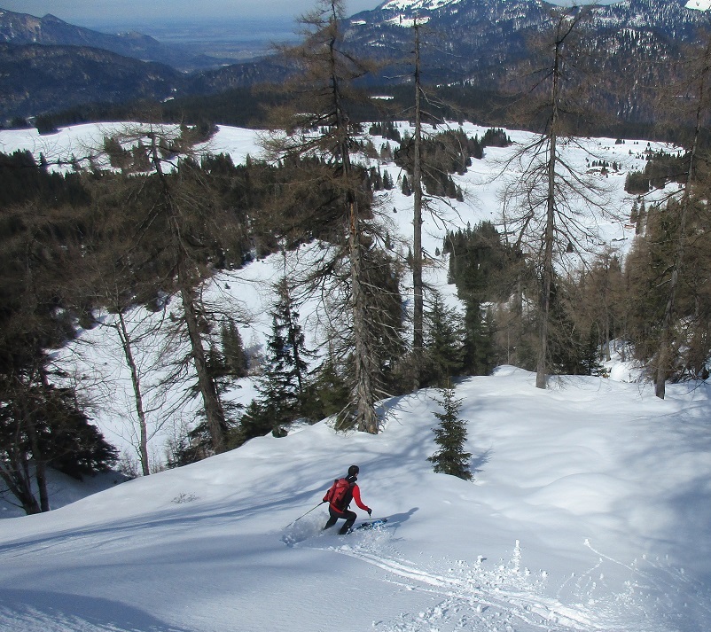 Tourenverhältnisse: Gut / schöne Tour mit den 2 Abfahrtsvarianten / teilweise durften wir heute spuren / angenehme Temperaturen / in der 1.ten Abfahrt noch teils Pulverschnee / später wurde es noch gut fahrbarer Sulzschnee ohne die Tendenz zu versinken /