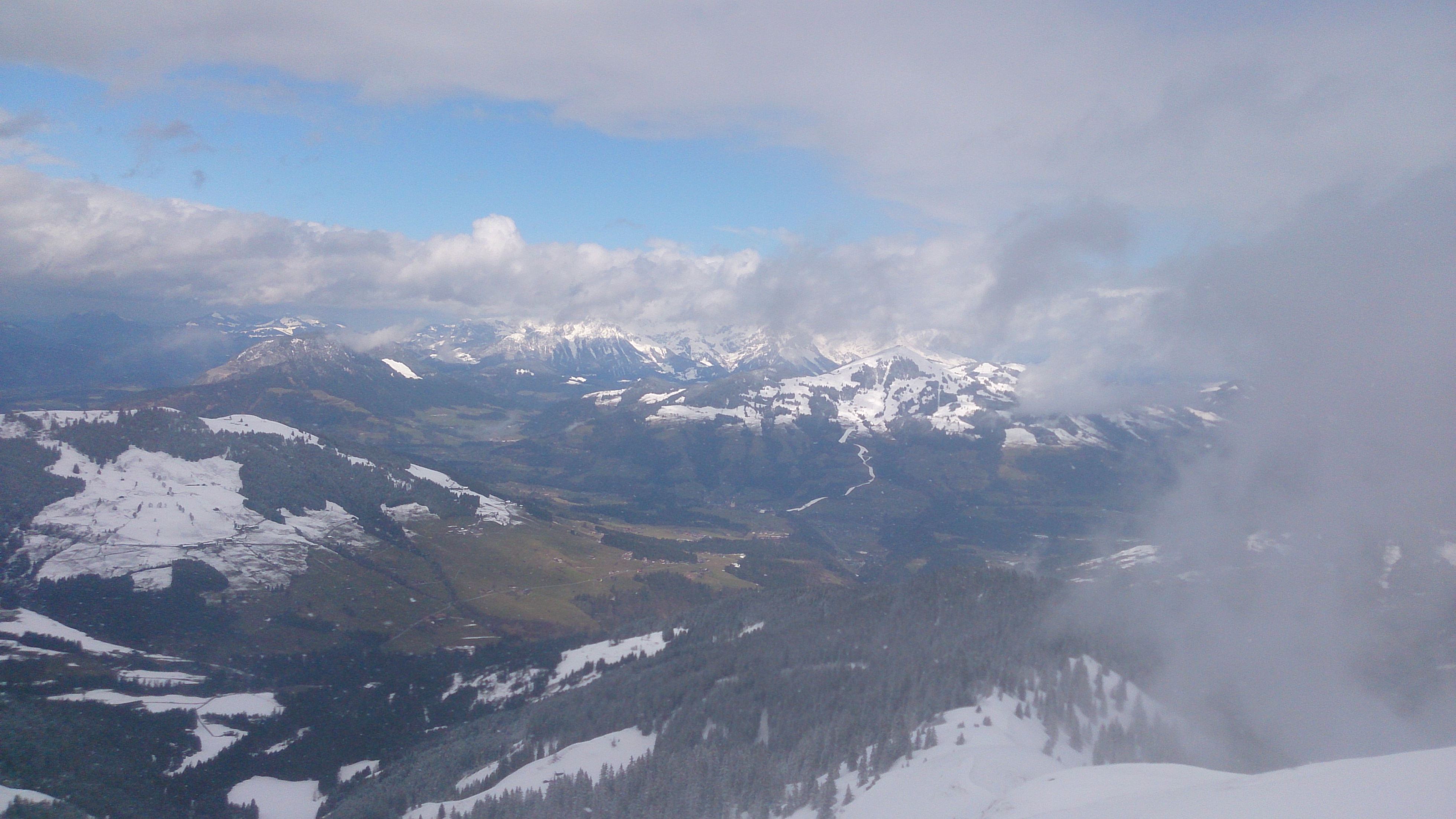 Blick hinüber zum Skigebiet Skiwelt Wilder Kaiser mit der Talabfahrt nach Hopfgarten: