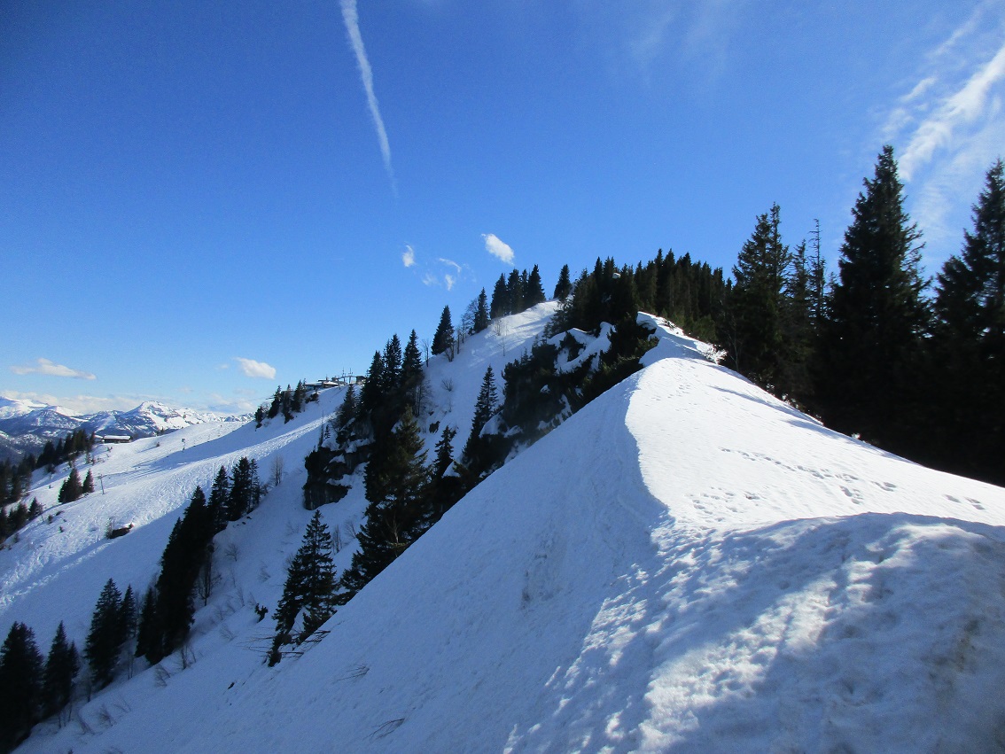 Tourenverhältnisse: Gut / Lifte unten stehen still / Droben noch Skibetrieb bis 8.4. / Aufstieg auf der aufgesulzten Piste geht ganz gut / im freien Gelände ging es heute jedoch besser ! / Schöne Abfahrt über die Garland durch schnellen Sulz bis zum P.