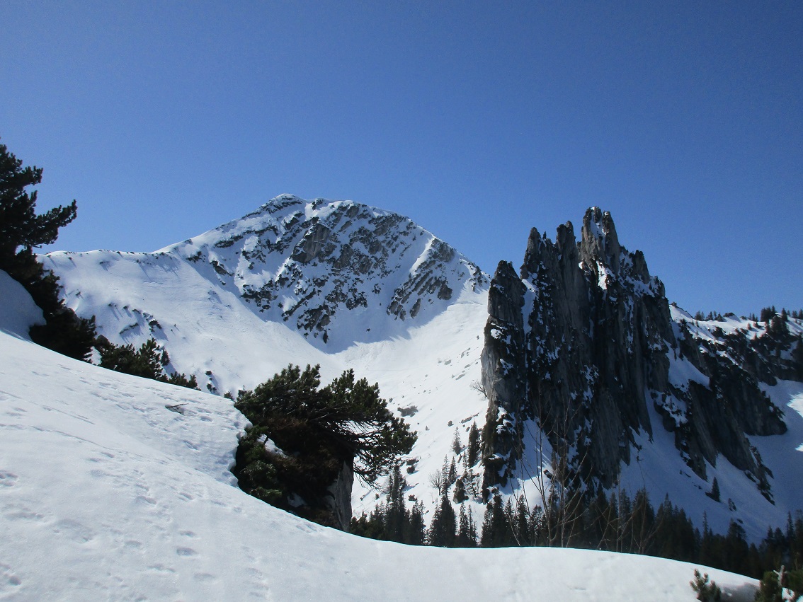Tourenverhältnisse: Ski : Gut / Kraxln : Sehr Gut / Schnee vom P. weg / Fels strohtrocken / Warm + schee sonnig war's beim kraxln / Skiabfahrt am Nachmittag nach Osten ging besser als gedacht : feiner, nicht zu tiefer Sulzschnee