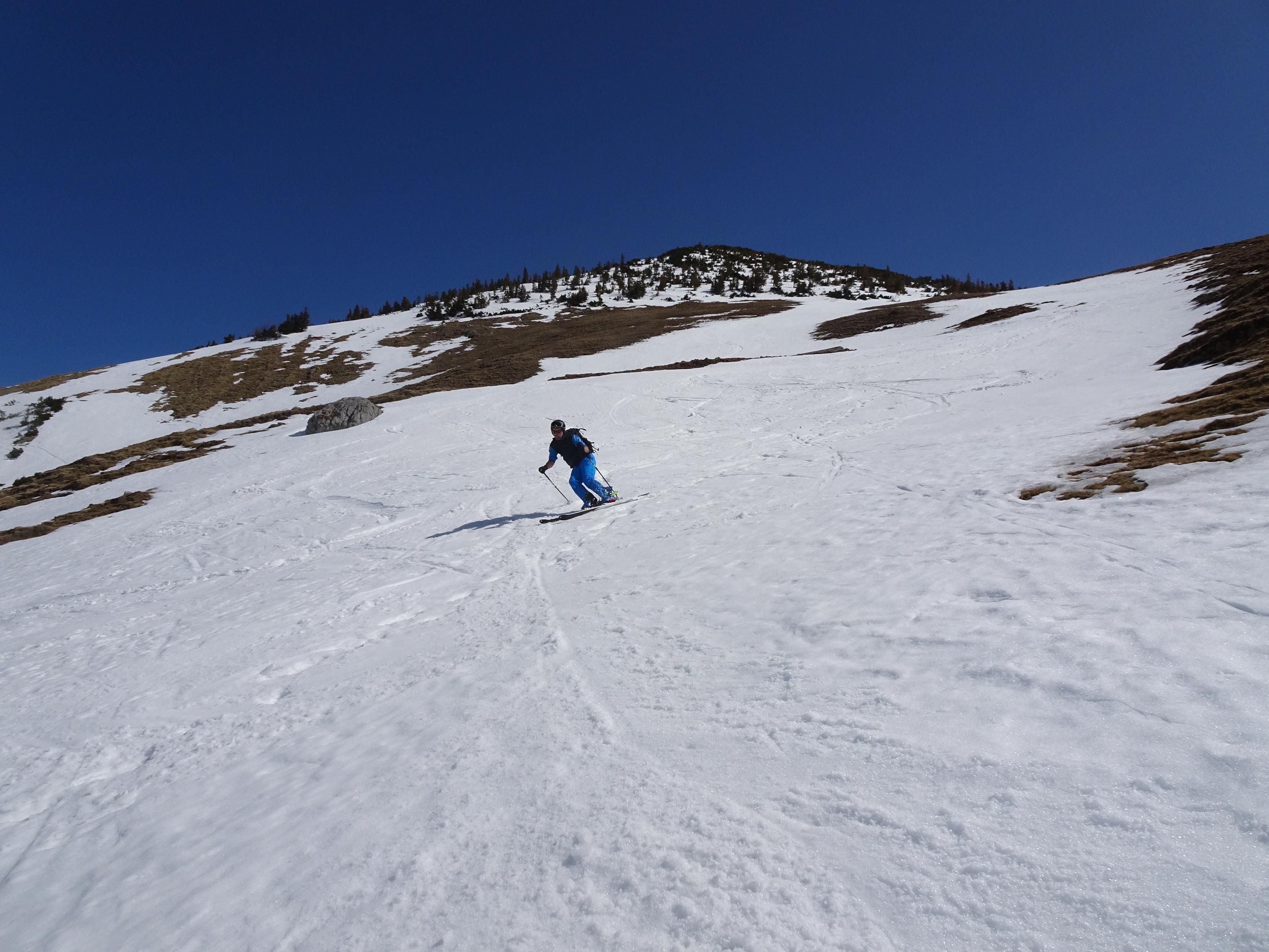Grundsätzlich liegt noch genügend Schnee - sieht man mal von Stellen am Forstweg zum Rotwandhaus ab sowie vom obersten Bereich des Miesingsattels. Auch die Taubensteinabfahrt ist noch in einem guten Zustand.