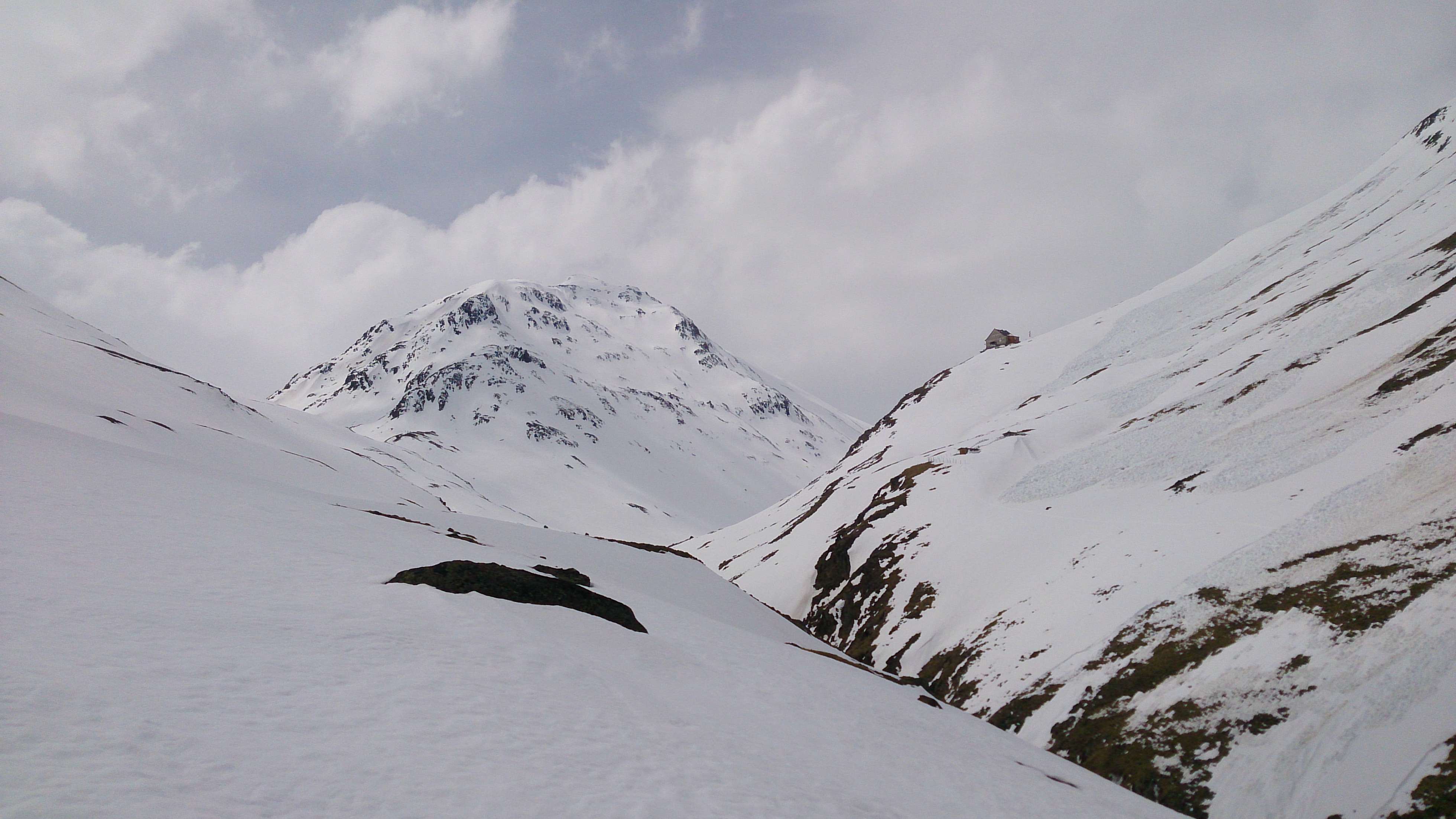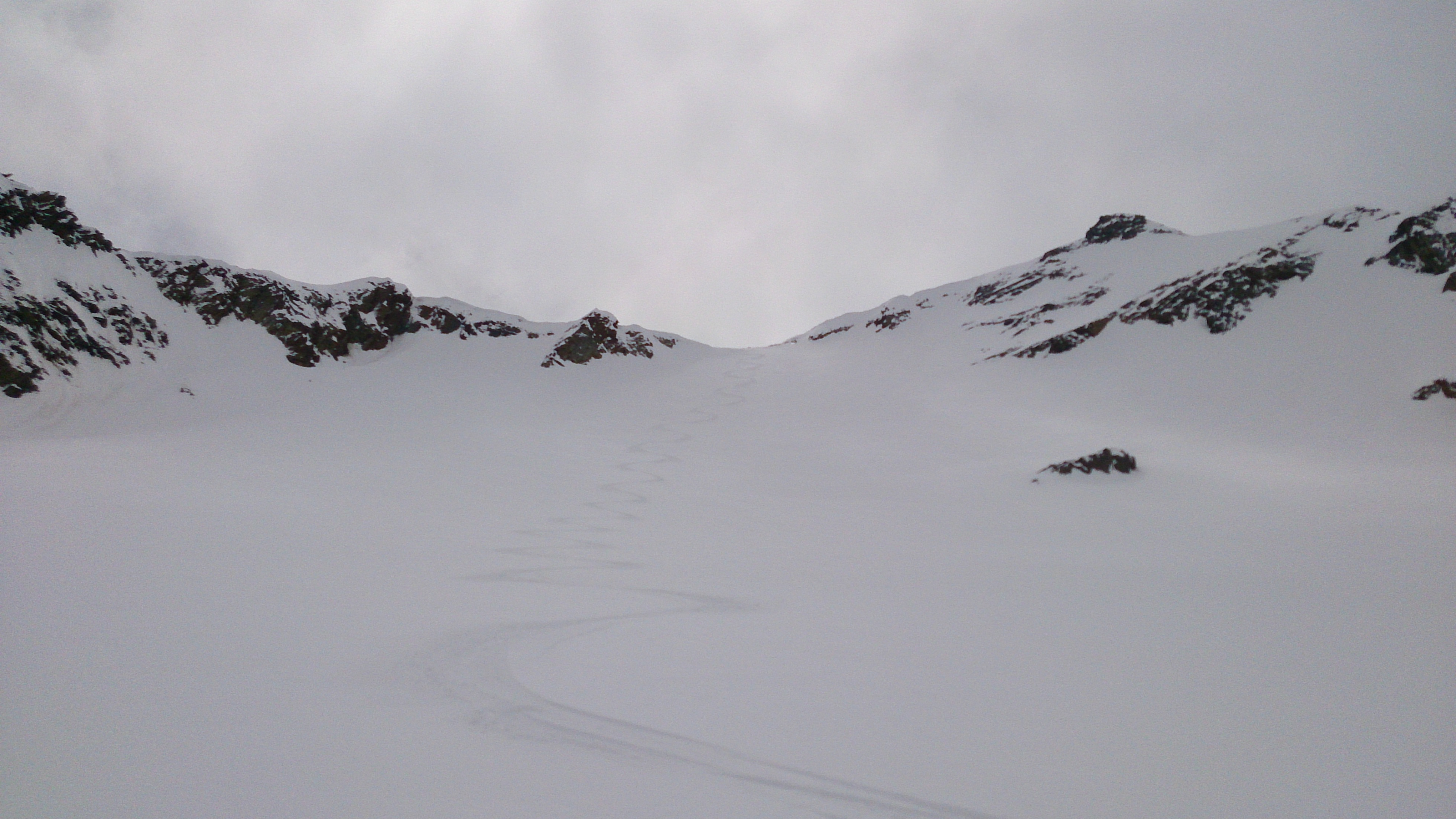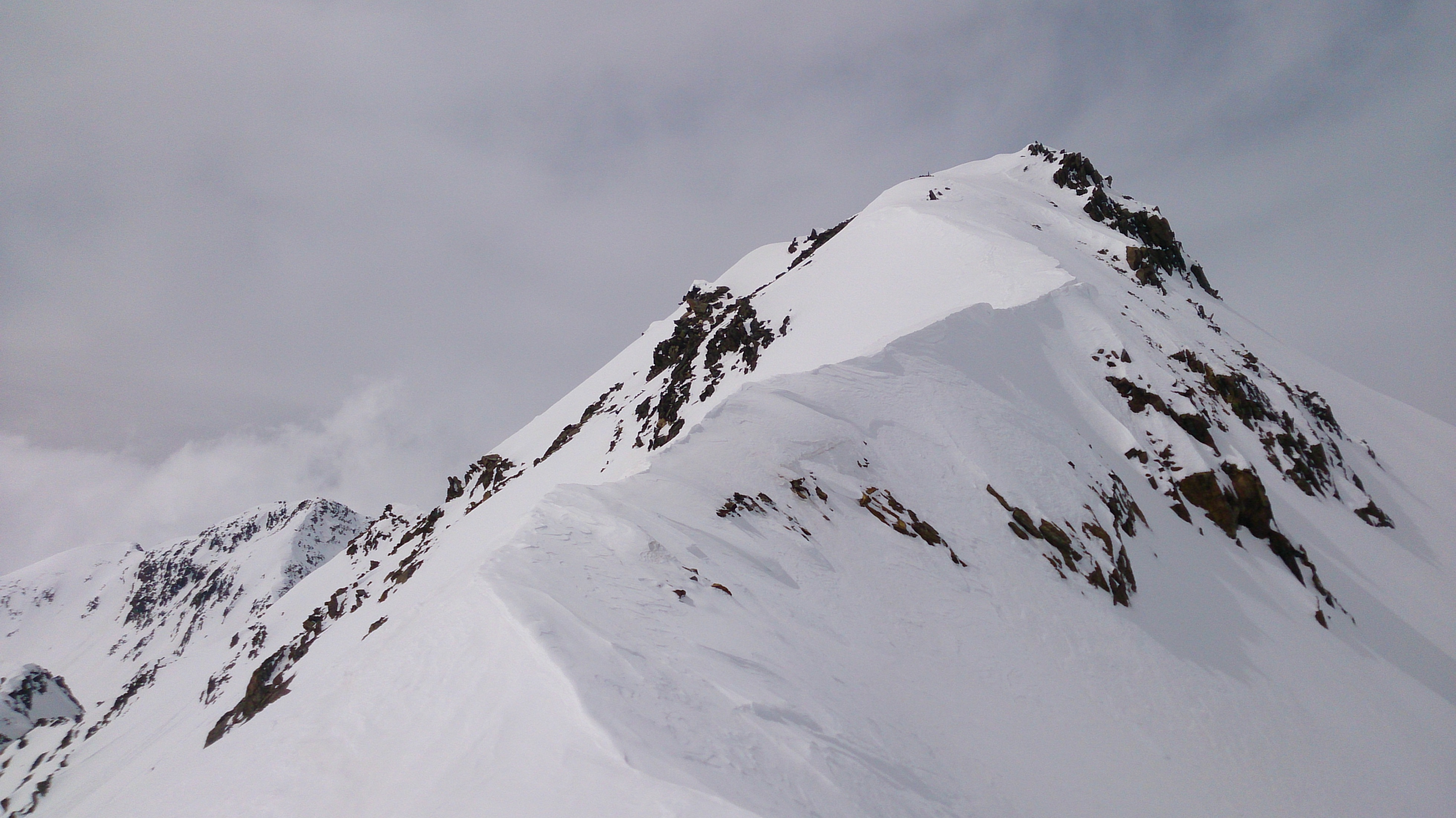 Sonstiges: Vom Hauptkamm drückten heute die Wolken herüber und sorgten für deutlich schlechteres Wetter als die beiden vergangenen Tage. Der Zustieg durch das Niedertal ist wirklich von vielen und großen Lawinen verwüstet - unangenehm zu gehen (immerhin: was schon unten an Schnee ist kann einen nicht mehr einlahnen). Nicht zu spät Harscheisen anlegen, ist zwar in den vielen Gleitpassagen deutlich langsamer, aber bei dem harten Schnee doch wesentlich sicherer.