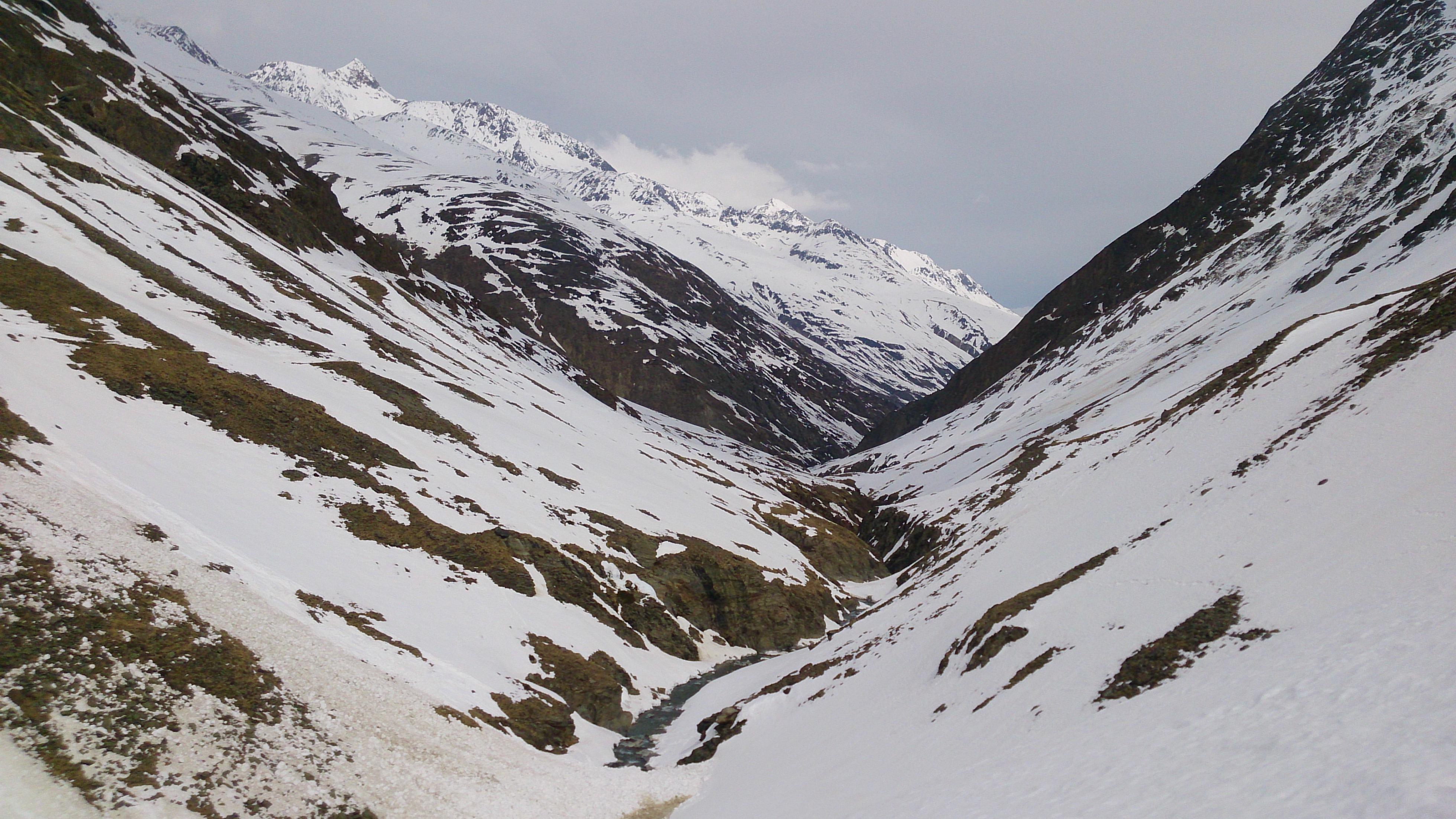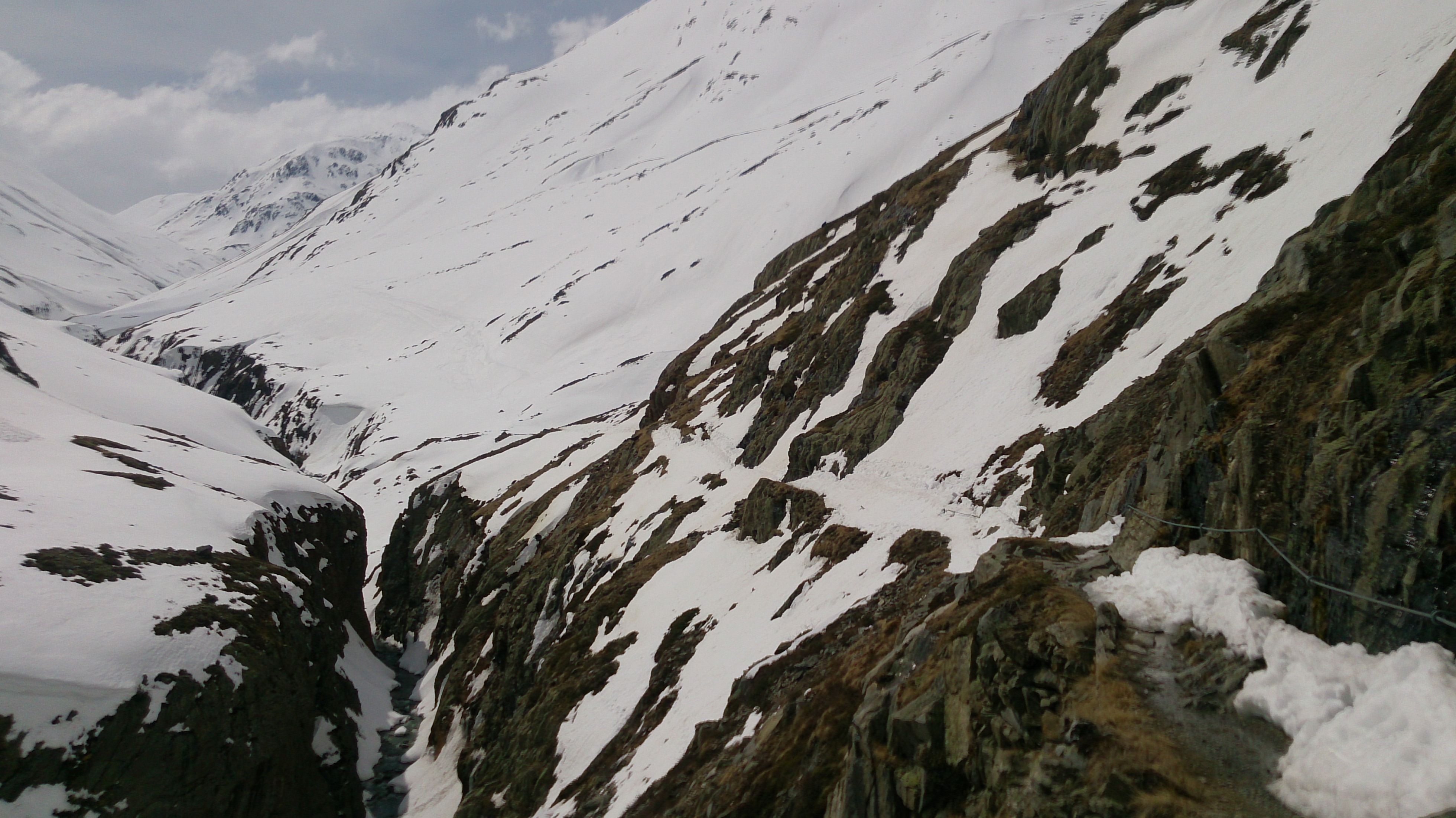 Beim Zustieg zur Martin-Busch-Hütte, hinten sieht man schon einen Teil der Lawinenhänge: