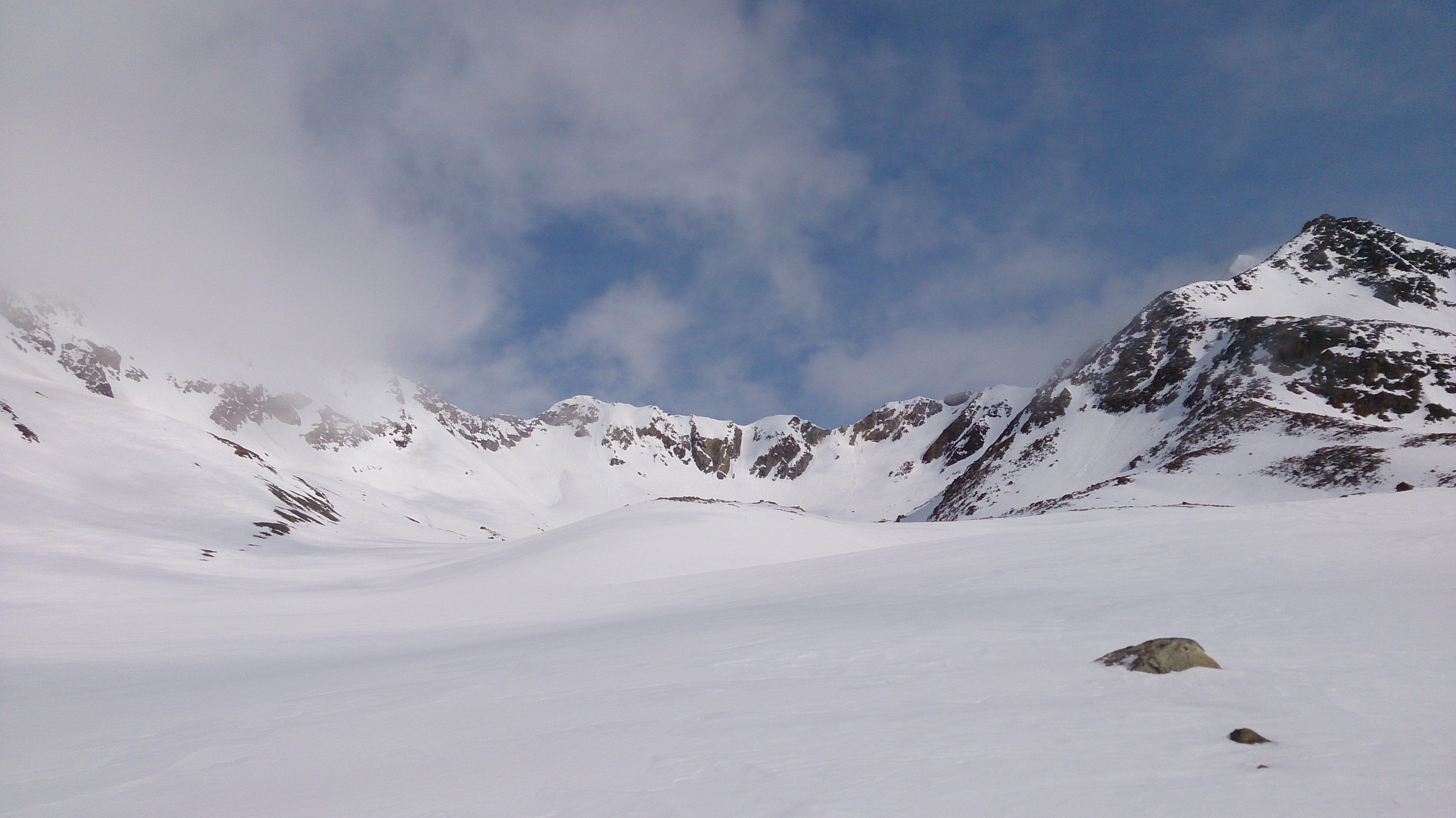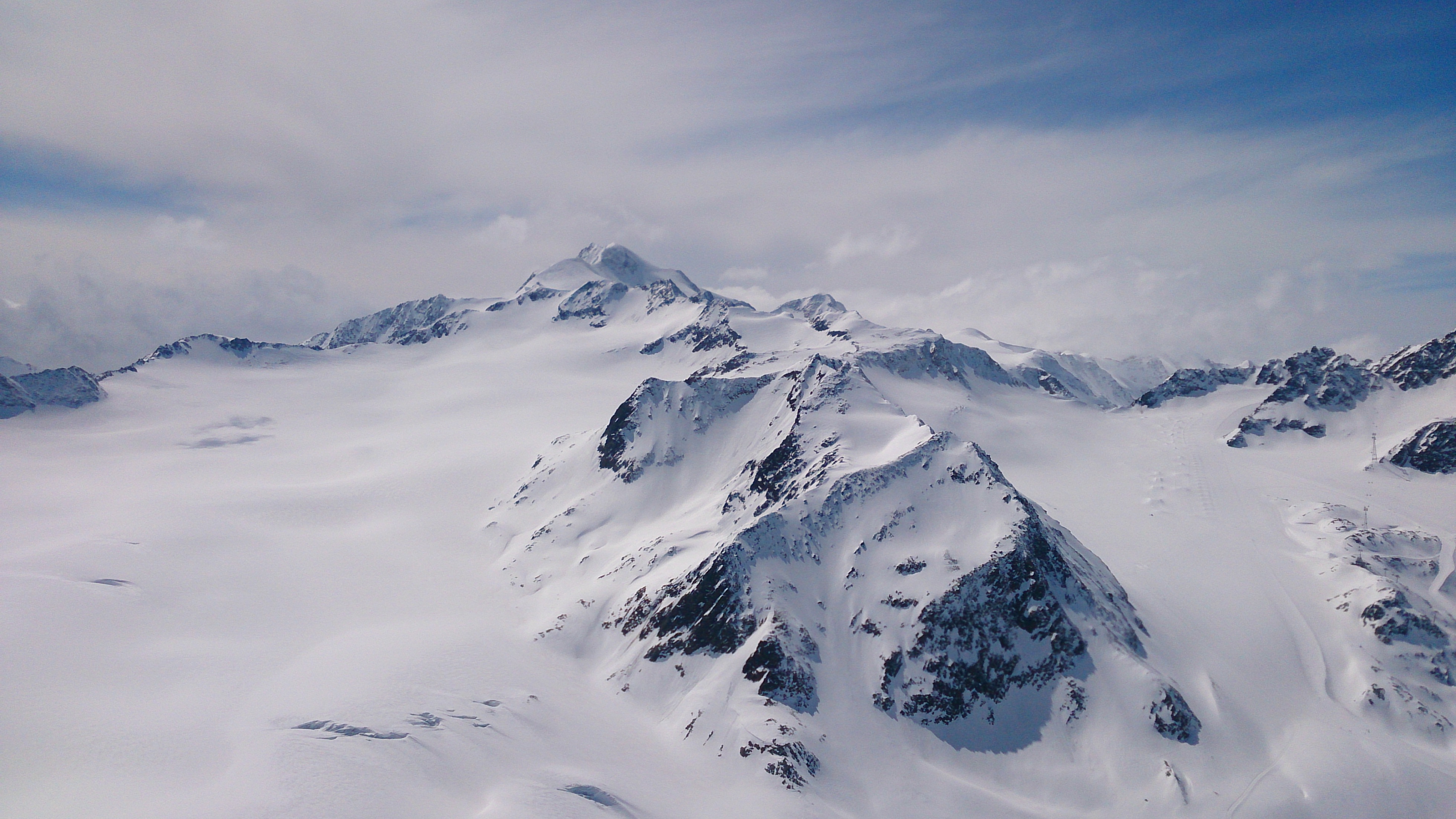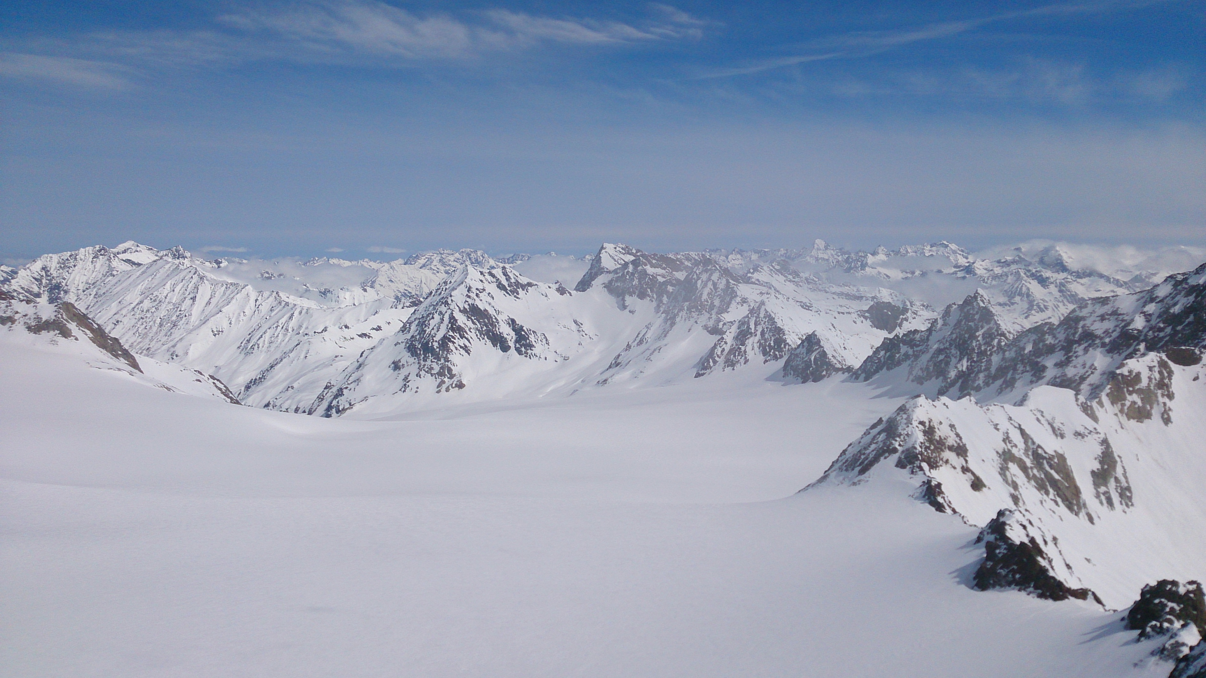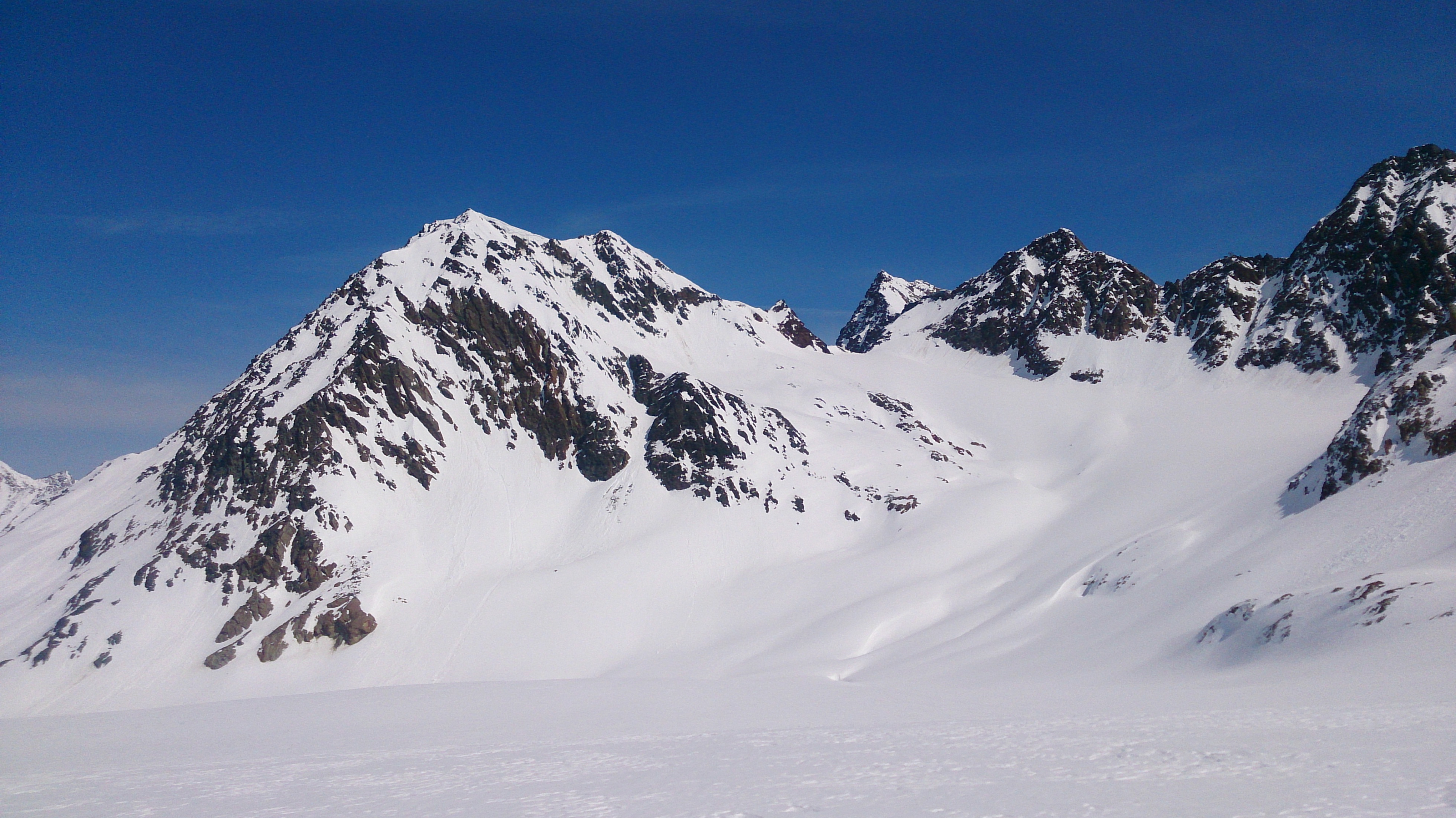 Tourenverhältnisse: genügend Schnee von Vent weg und dank der beschneiten Talabfahrt auch bis nach Sölden hinab; im freien Gelände (überwiegend Gletscher) viel windbeeinflusster Schnee, ab und zu auch guter Pulver