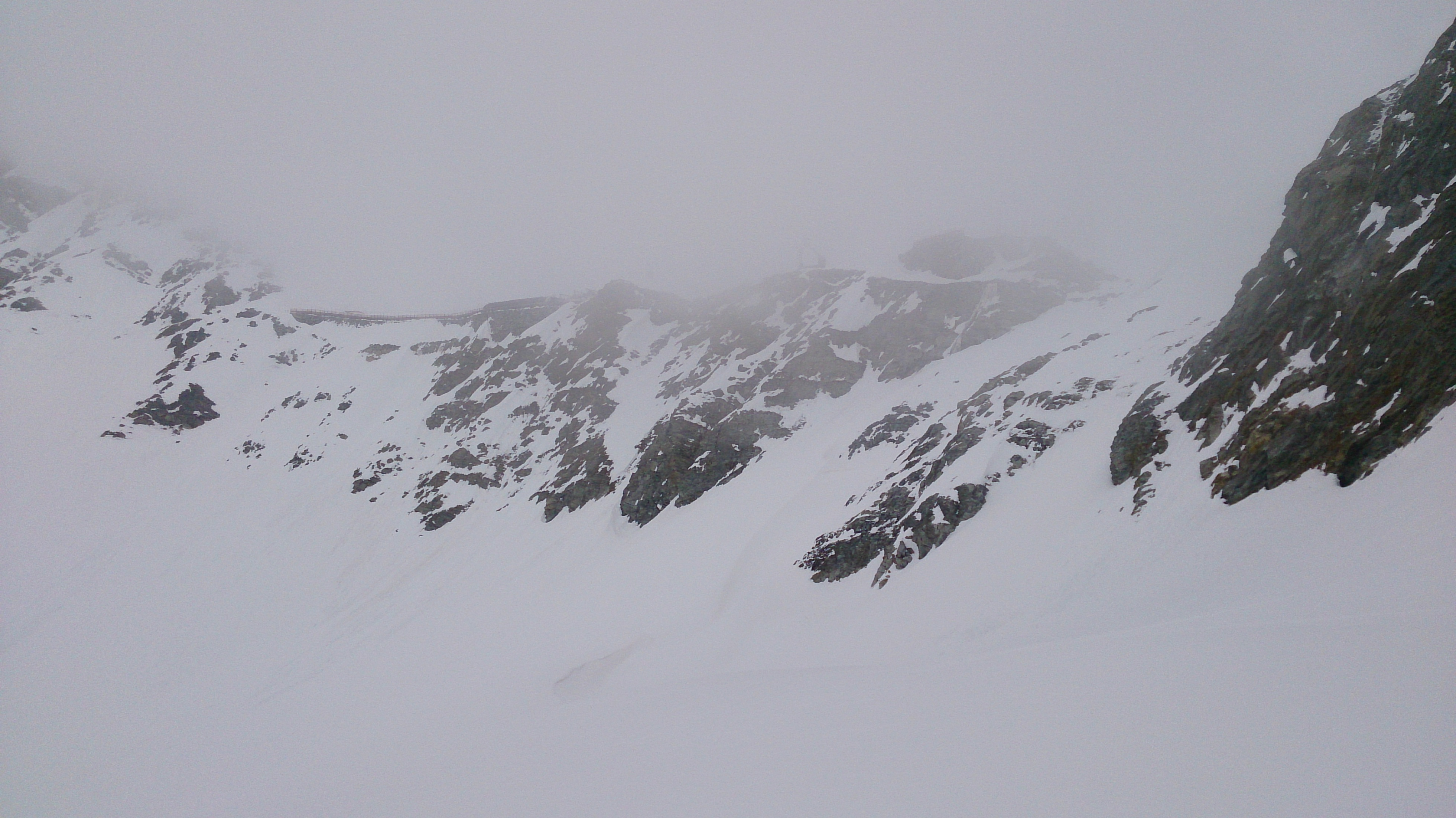 Sonstiges: Heute vom Nebel verfolgt zunächst durch das geschlossene Venter Skigebiet (die Pistenraupe hat leider teilweise schon einiges umgegraben) und dann weiter über steile, südseitige Hänge (Harscheisen) in das Taufkar. Gerade bei der steilsten Stelle fiel total der Nebel ein, zum Glück kannte ich die ungefähre Route vom Sommer. Gut 20 Hm bin im steilsten Stück hinaufgestapft, wegen des grundlosen Schnees war das aber extrem mühsam - wohl doch besser mit Skiern hinaufplagen. Am Gipfel des Taufkarkogel lichtete sich zum Glück der Nebel und gab den Blick auf den Mittelbergferner frei - da südseitig durch das Rofenkar Nebel aufzog und die Abfahrt dorthin wegen des Gletscherrückgangs auch nicht ganz trivial ist, entschied ich mich spontan für eine Erweiterung - den Linken Fernerkogel über den Mittelbergferner und nach Abfahrt von diesem kurz hinauf in das Rettenbachjoch (Söldener Skigebiet) und die sehr lange, schöne Talabfahrt nach Sölden (natürlich einiges los).