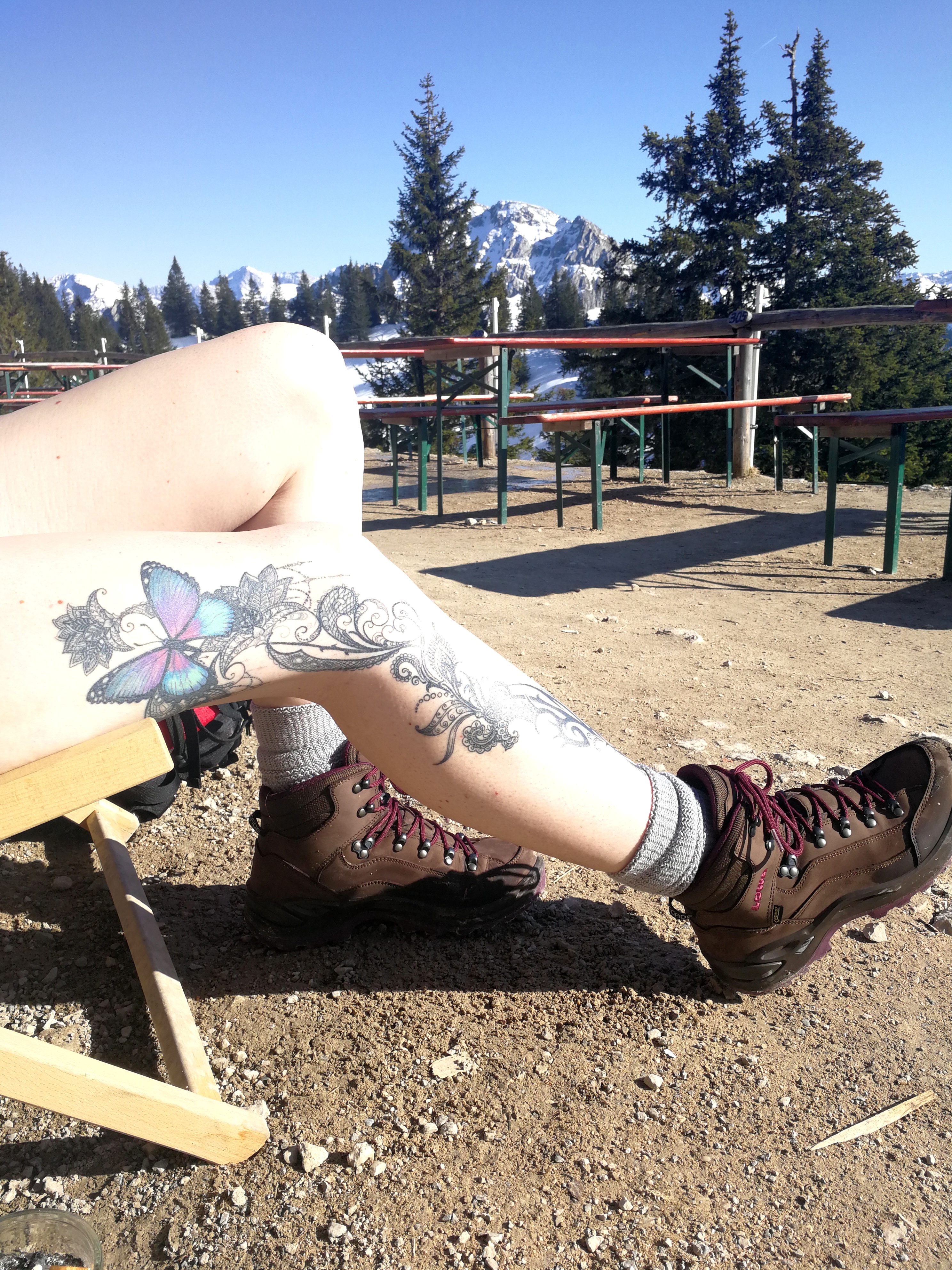 Tourenverhältnisse: Bis zur Marienbrücke war die Hölle los - verständlich! Danach aber noch kaum was. Menschenleere Wanderwege! Alles schön trocken und gut zu gehen. Ich hab es genossen Nach ca. 2 Stunden Aufstieg, lag noch sehr viel Schnee. Im Wald teils vereist, auf den Hängen in der Sonne dafür nass und weich - teilweise ist man steckengeblieben und es war 100% Konzentration gefragt, damit die Schritte wirklich trittsicher sind und man nicht abrutscht. Die letzte Stunde Aufstieg war deshalb nicht gerade spaßig... Für das letzteStück habe ich mich einem Ehepaar angeschlossen. Der Mann des Ehepaars meinte - es sei nicht gefährlich. Die Frau meinte - als wir schon fast oben waren, man dürfe bei sowas eigentlich auf ihren Mann nicht hören. Der Abstieg auf dem selben Weg wäre dann wirklich kein Spaß gewesen! Deshalb Abstieg über die Skipiste über die Rohrkopfhütte zur Tegelbergbahn und dann zurück zum Parkplatz in Schwangau gelaufen.