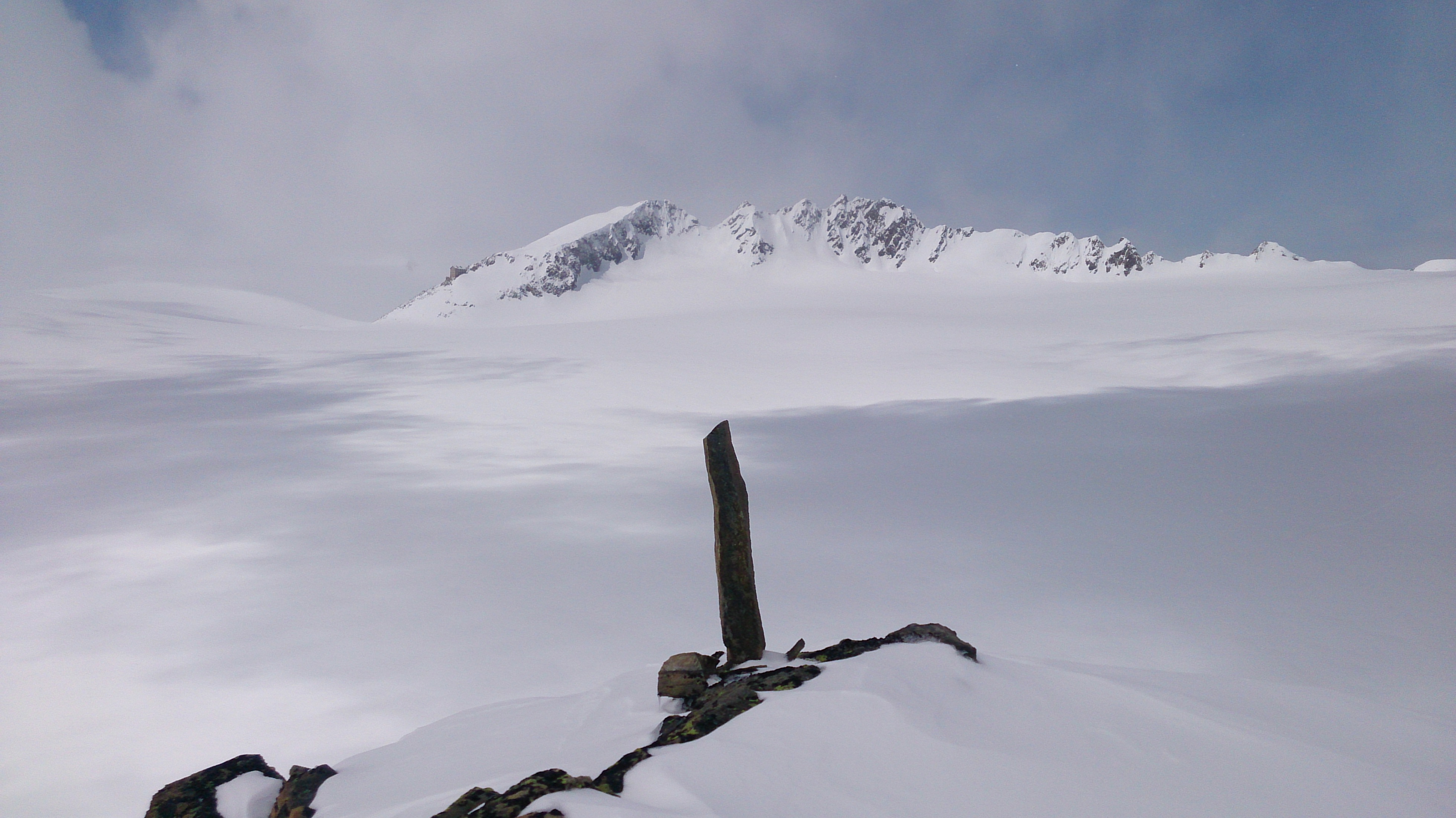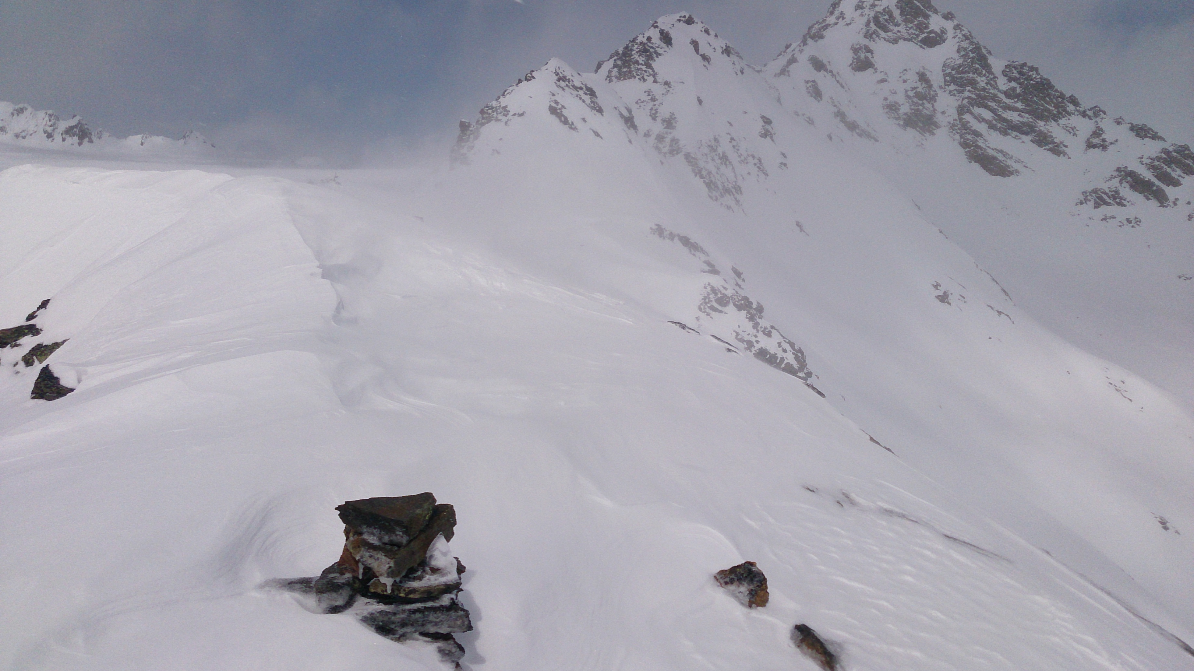 Tourenverhältnisse: nordseitig bis ca. 2.800 m noch Pulver, danach mit Stich / am Nachmittag auch bruchharschig weil schon wieder etwas angefroren