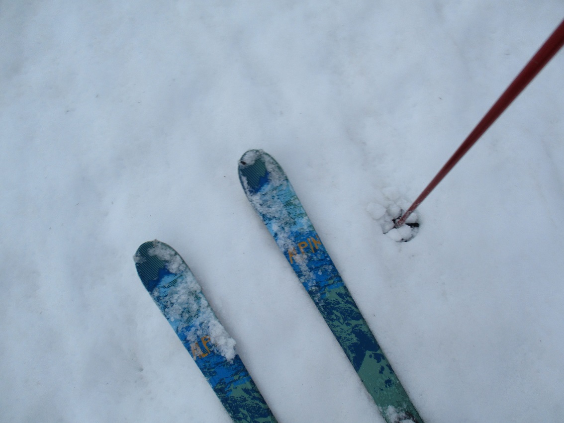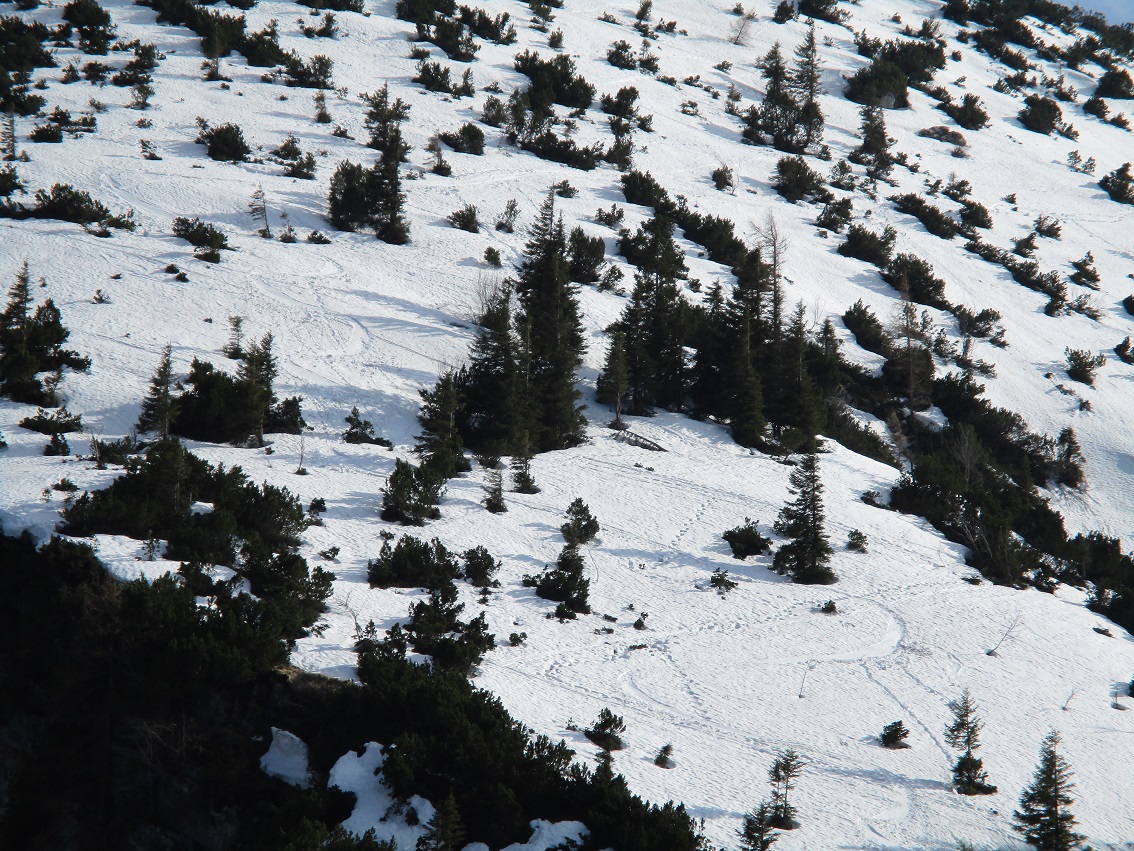 Tourenverhältnisse: Ganz passabel / Sulziger Schnee - NOCH kein Sumpf : / Ging heute noch durchgehend mit Schnee : bis auf ca. 50 apere Meter unterhalb der Rosengassenalm / Keine Leit am Berg