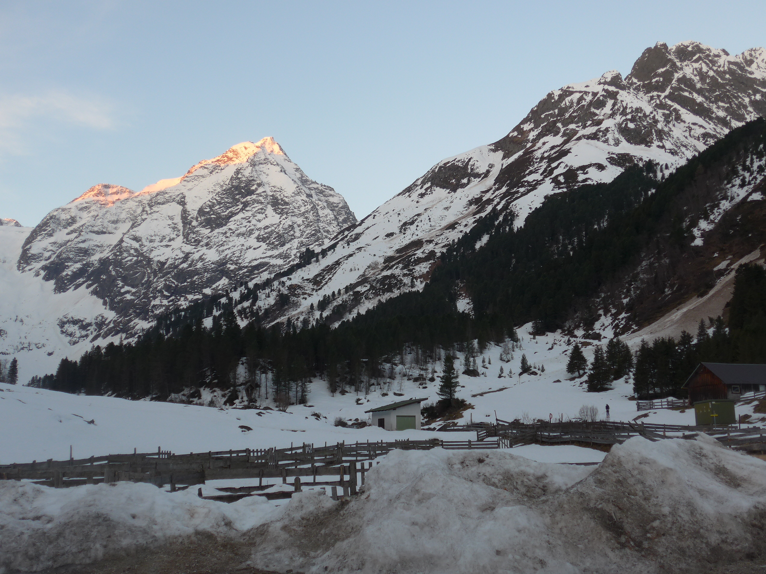 Die Tagesgebühr beim Parkplatz beträgt 4.-€ und kann nur in Münzen gezahlt werden. Die bevorzugten Ziele sind der Lisenser Fernerkogel und das Lisenser Skispitzl. Die Schöntalspitz haben nur ca. 10 Tourengeher besucht.