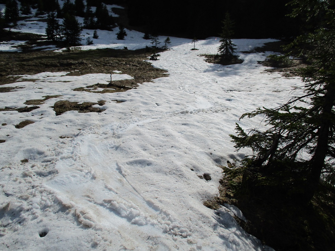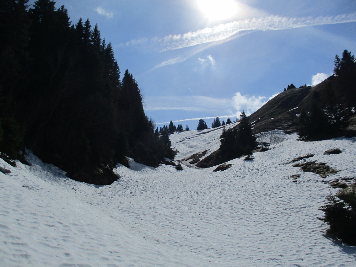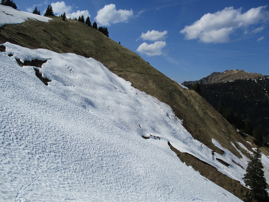 Tourenverhältnisse: Auffahrt komplett schneefrei / noch Schnee vom Sulzgraben ab / fester, kompakter Altschnee mit leicht aufgefirnter oberer Schicht : kein Sumpf
