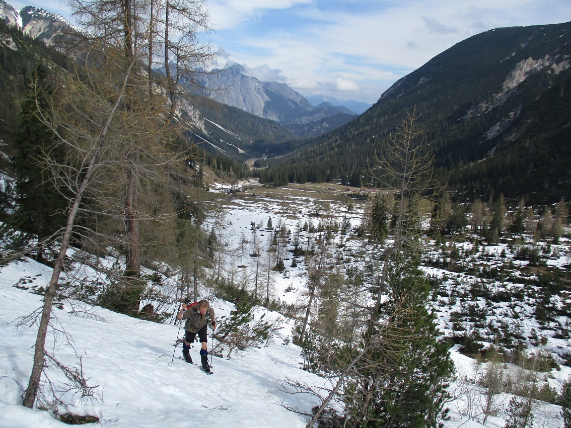 Tourenverhältnisse: Sehr gut / Auffahrt bis über die Eppzirler Alm schneefrei / vom Radfdepot weg mit Ski / fester, kompakter Altschnee - nur oberflächlich aufgefirnt