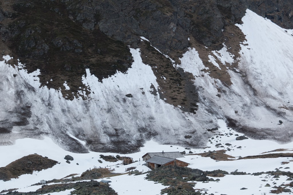 - Hüttenzustieg: Schnee ab Alp Suot (ca. 2000m, wird weiterhin schnell weniger)