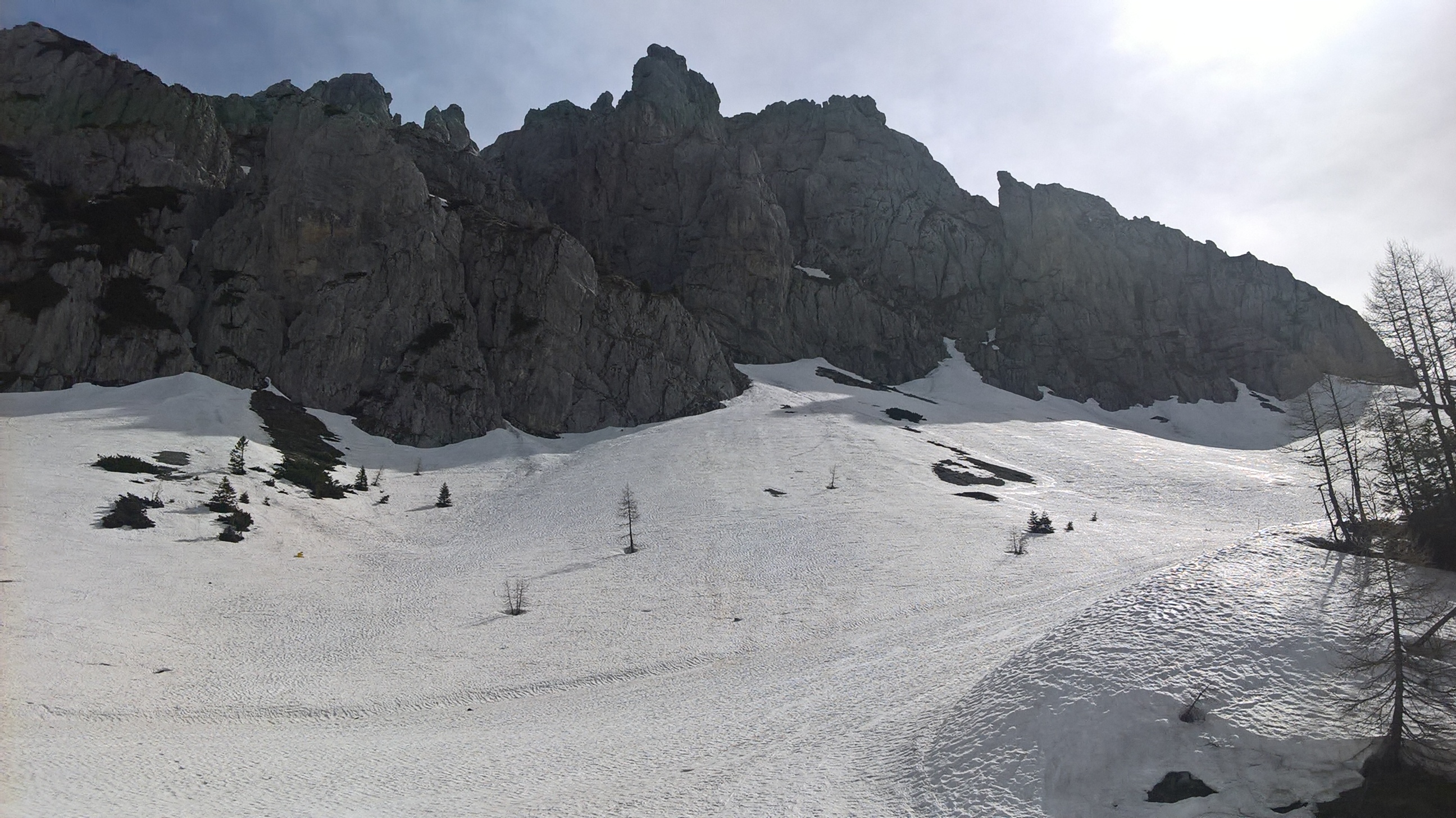 Tourenverhältnisse: Dank Kunstschnee auch noch am 1.Mai eine durchgehende Schneedecke ab 1500m am Nassfeld. Der Tag hat sich als ziemlich ideal herausgestellt da es Nachts 0Grad hatte und der Schnee noch einmal fest wurde. Die Oberfläche recht griffig zum aufsteigen. Heute ca. 10 Tourengeher unterwegs. Kurz unter der Bergstation haben sich die Murmeltiere gezeigt die hier mitten auf der Piste den Ausstieg aus ihrem Bau haben. Nur als wir vorbeiliefen haben sie sich kurz in ihren Bau verkrochen. Sobald der Schnee getaut ist haben sie das Gebiet wieder für sich. Ab Bergstation geht es noch 200hm um den Berg rum zum Gipfel. Skidepot am Ende eines Schneefelds und 5Min Fußaufstieg zum aussichtsreichen Gipfel. Durch die Kühle heute noch ziemlich guter Abfahrtsschnee. Auf Skiern bis 50m vor den Parkplatz.