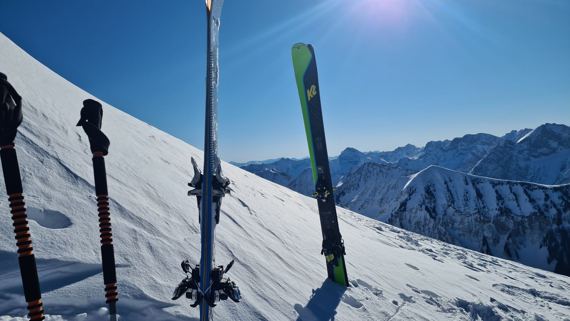 Wir haben uns gegen den Gipfelanstieg entschieden, denn oben hätte man es bei dem Wind sowieso nicht lange ausgehalten. Sind dann zurück bis zum Sattel abgefahren und haben einen wunderschönen, windgeschützten Brotzeitplatz gefunden. Nach einer Weile kam sogar die Sonne raus!