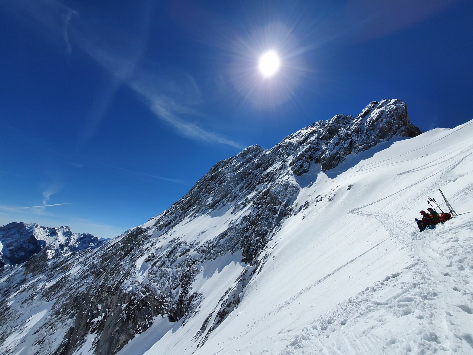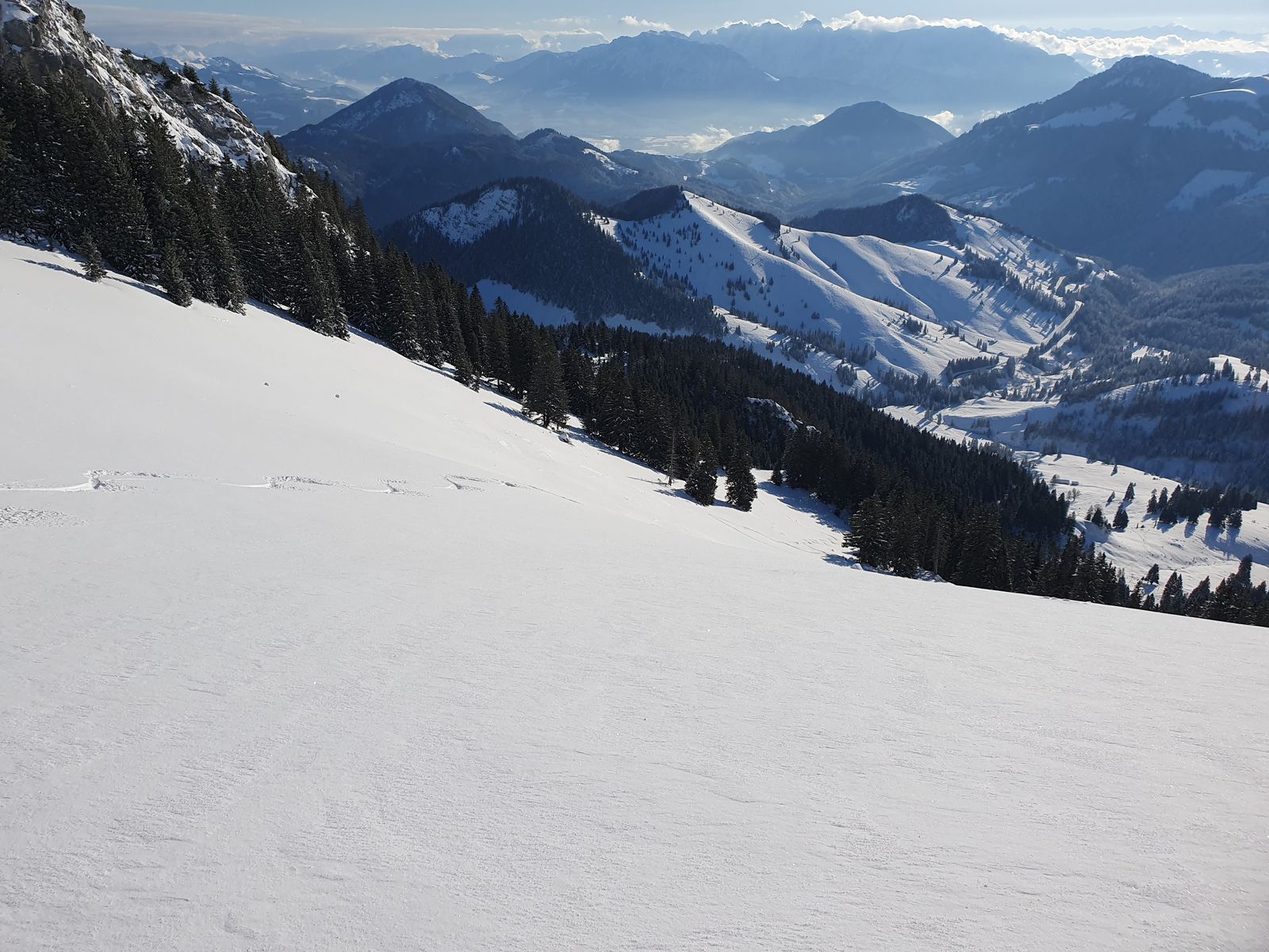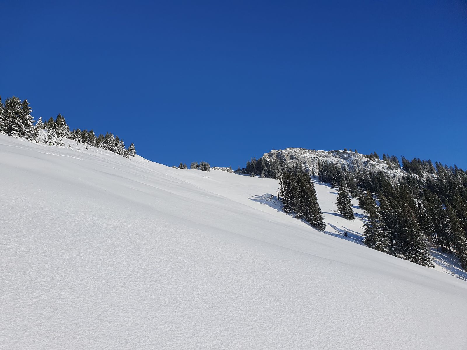 Von dort wieder etwas zurück die Aufstiegsspur da wir noch unbefahrene Pulverhänge entdeckt hatten.