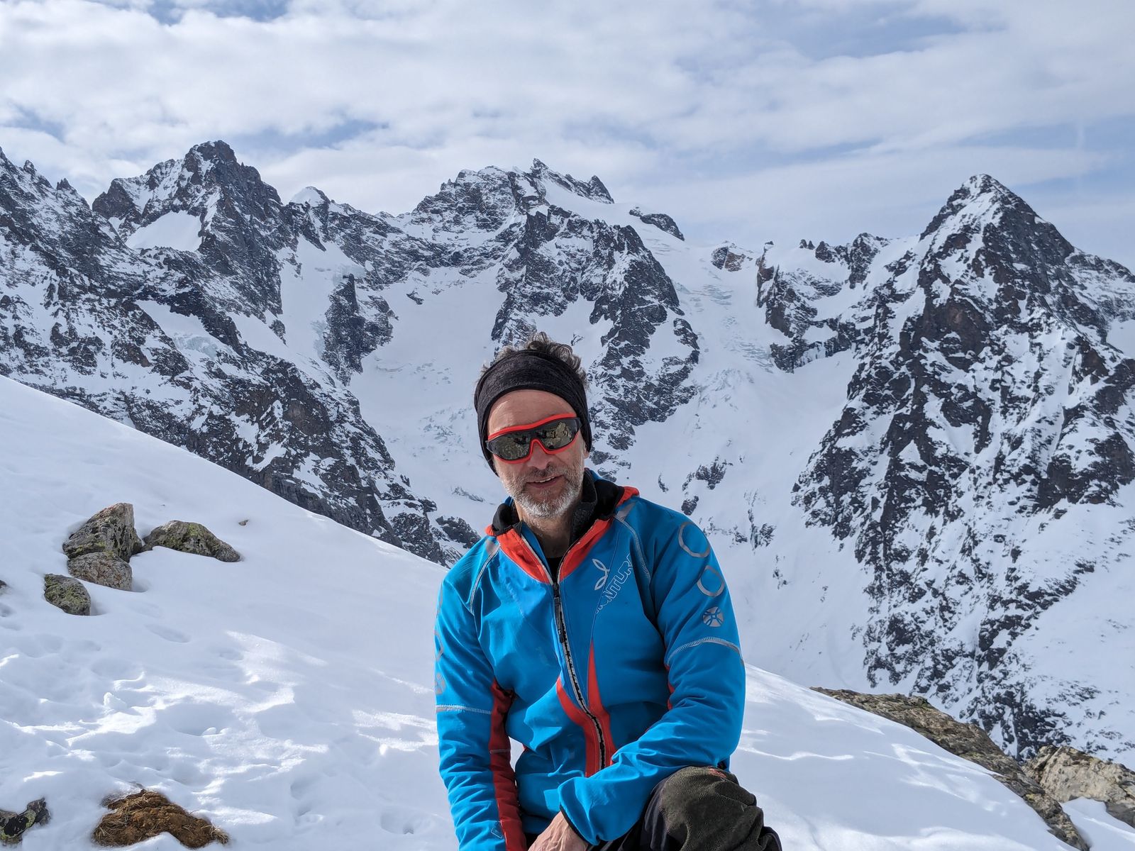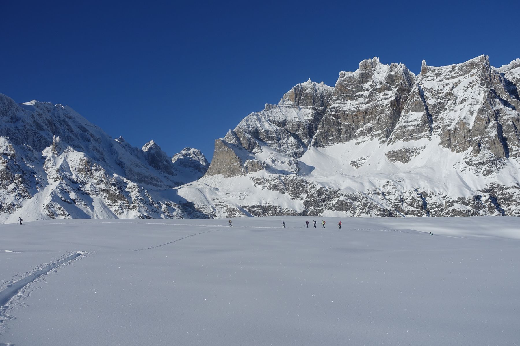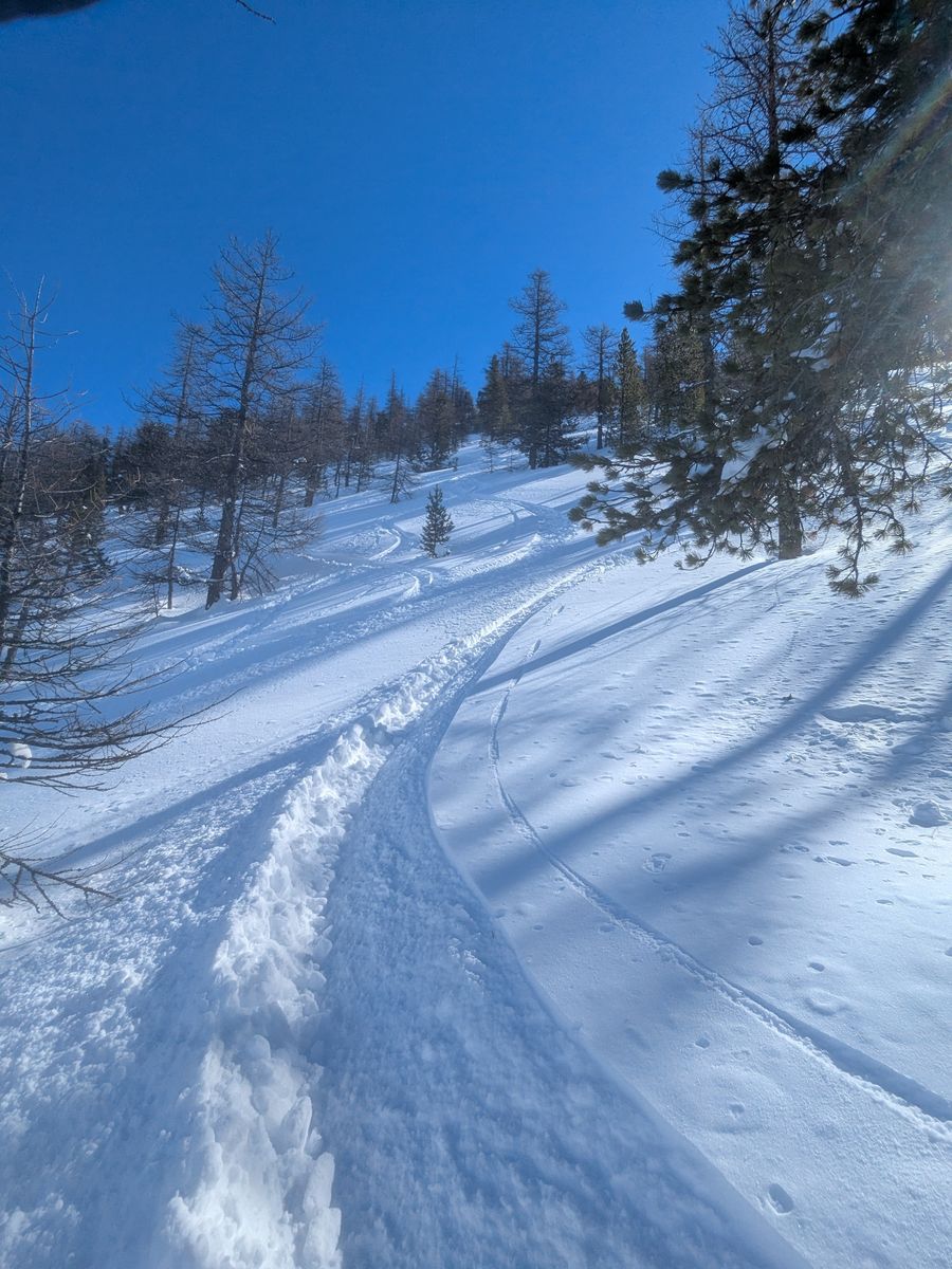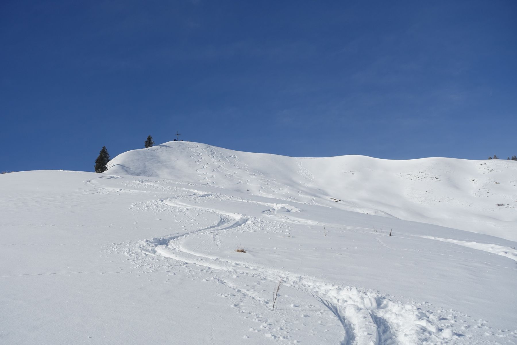 Bei knapp 1000 Hm haben wir die Pyramide problemlos erreicht. Gegenüber steht der Balmenhorn, wo man mit einem kurzen Klettersteig eine Christusstatue ("Cristo delle vette") und einen Biwakschachtel erreichen kann. Von der Pyramide waren es vielleicht 200 hm Abfahrt und 100 hm Gegenanstieg. Aus Zeitgründen haben wir auf den dritten Gipfel (Ludwigshöhe) verzichtet und sind auf nicht optimalen windgepressten Schnee zurückgefahren.