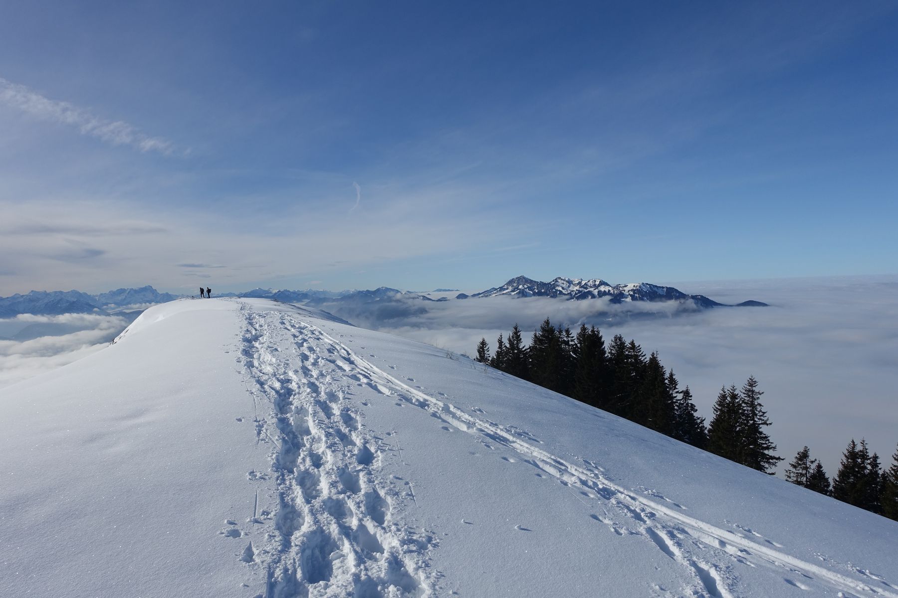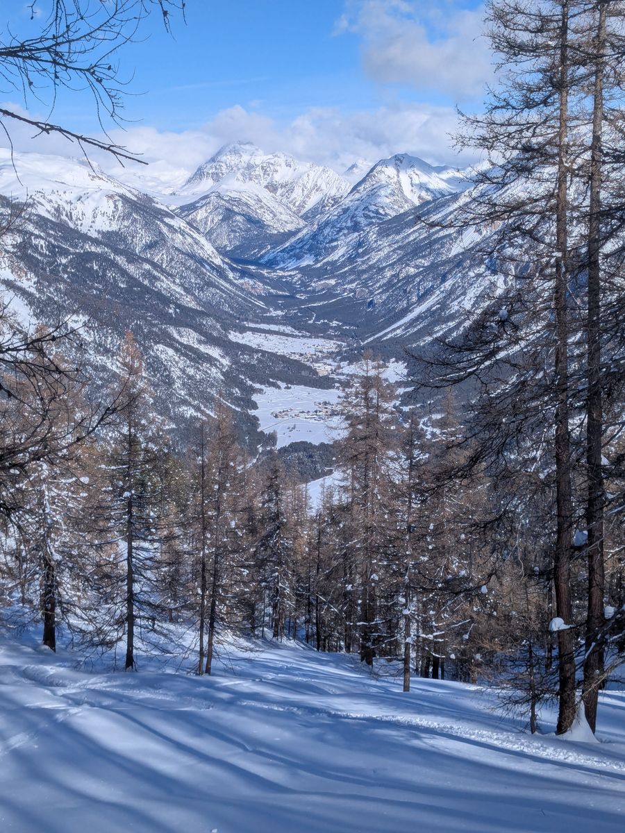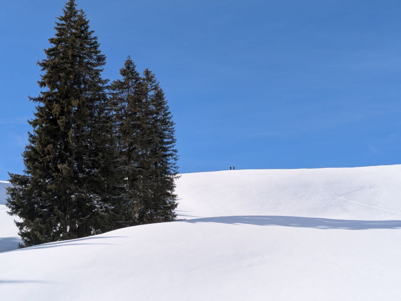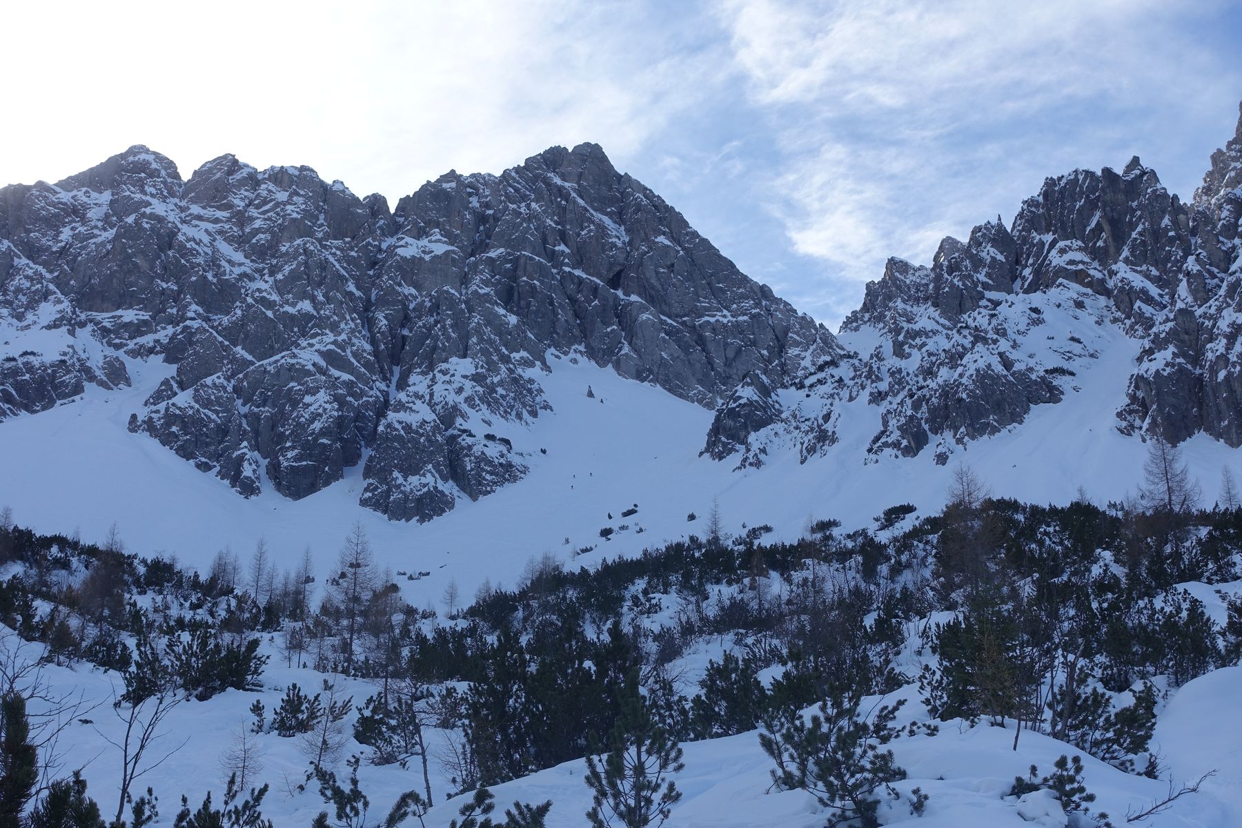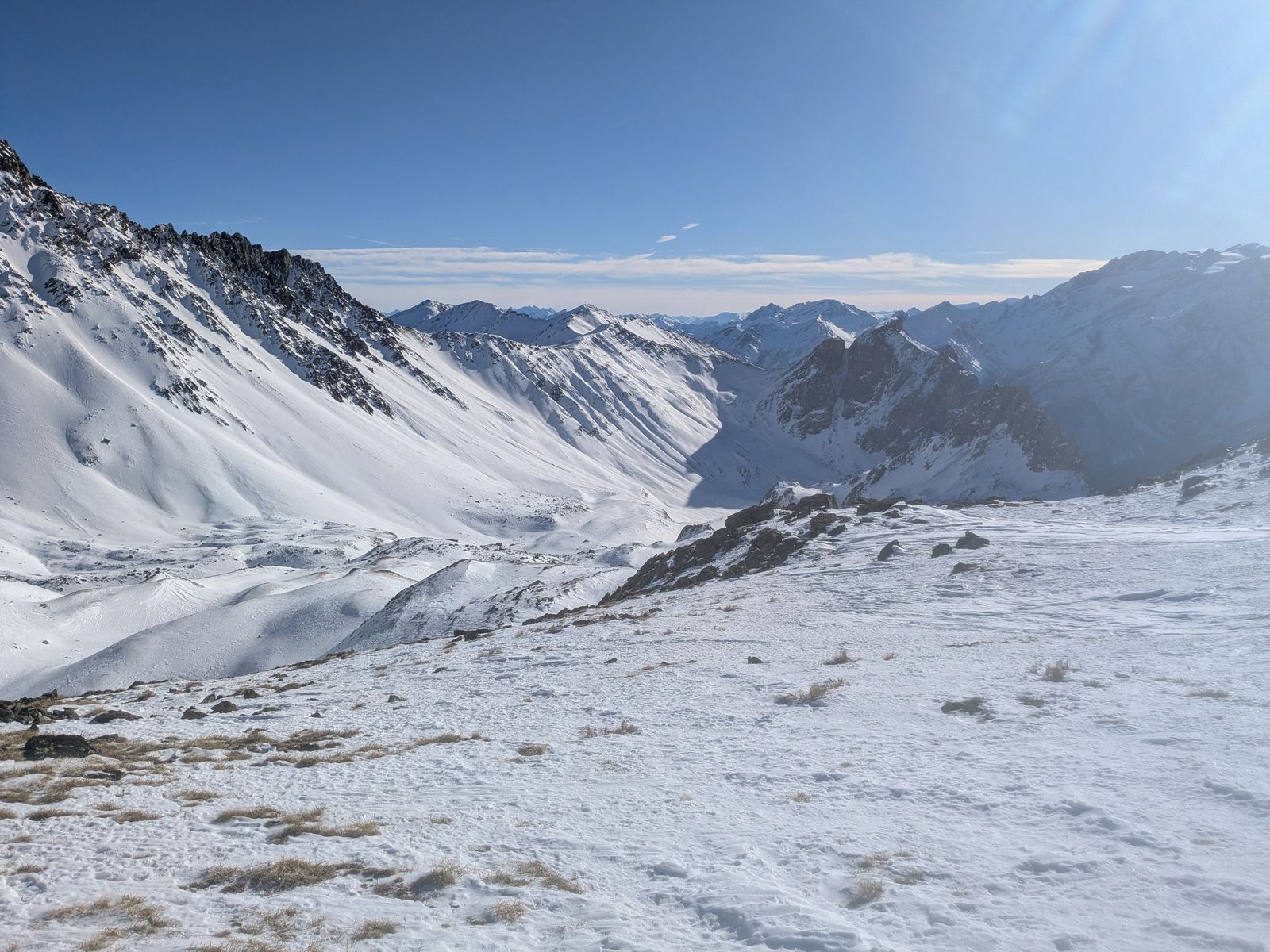Bei knapp 1000 Hm haben wir die Pyramide problemlos erreicht. Gegenüber steht der Balmenhorn, wo man mit einem kurzen Klettersteig eine Christusstatue ("Cristo delle vette") und einen Biwakschachtel erreichen kann. Von der Pyramide waren es vielleicht 200 hm Abfahrt und 100 hm Gegenanstieg. Aus Zeitgründen haben wir auf den dritten Gipfel (Ludwigshöhe) verzichtet und sind auf nicht optimalen windgepressten Schnee zurückgefahren.