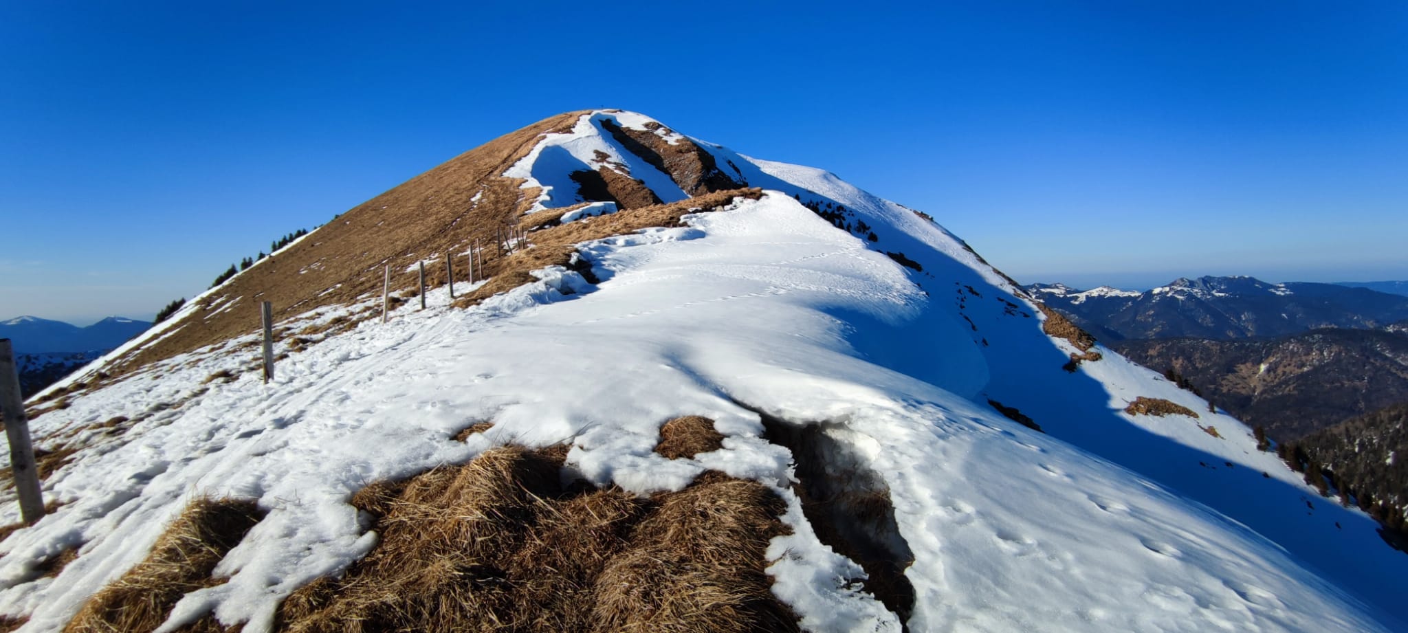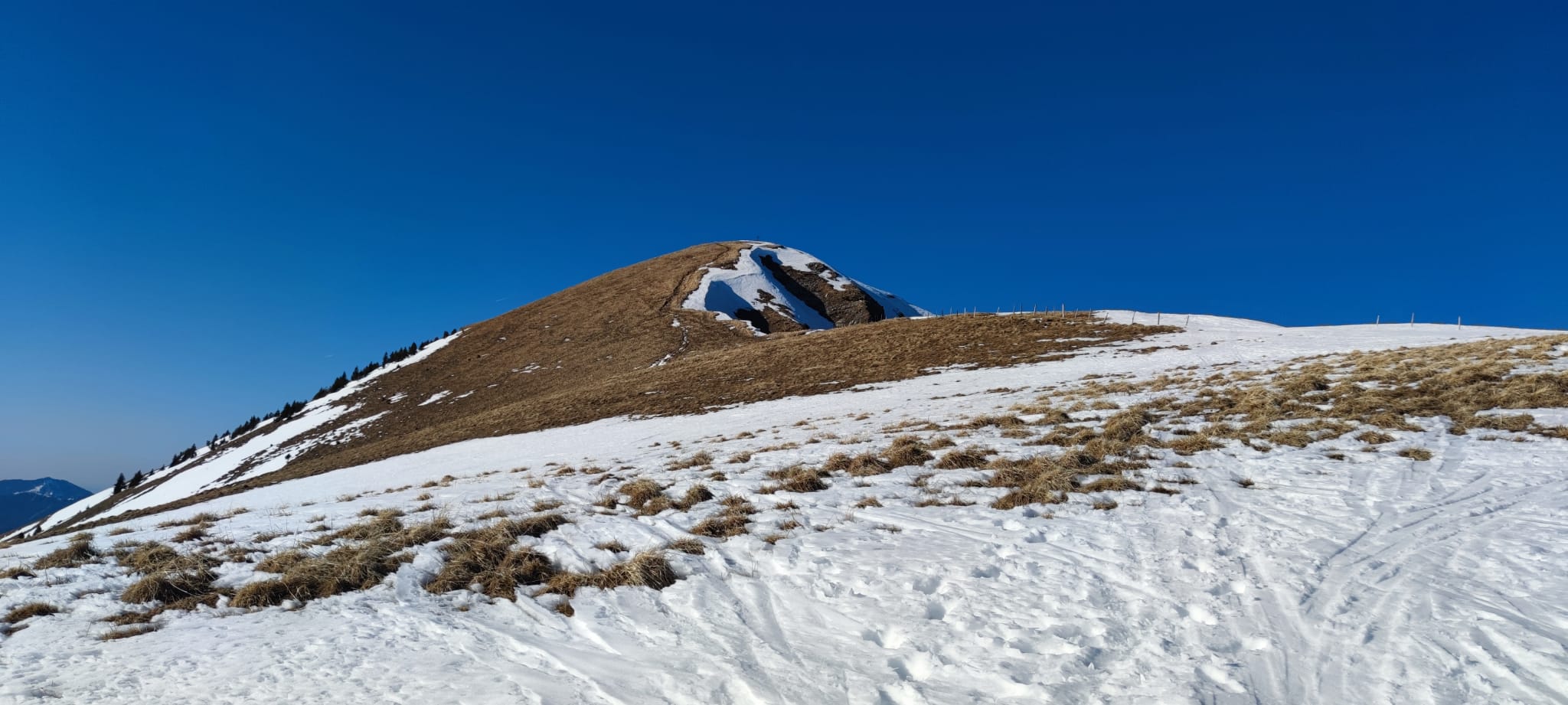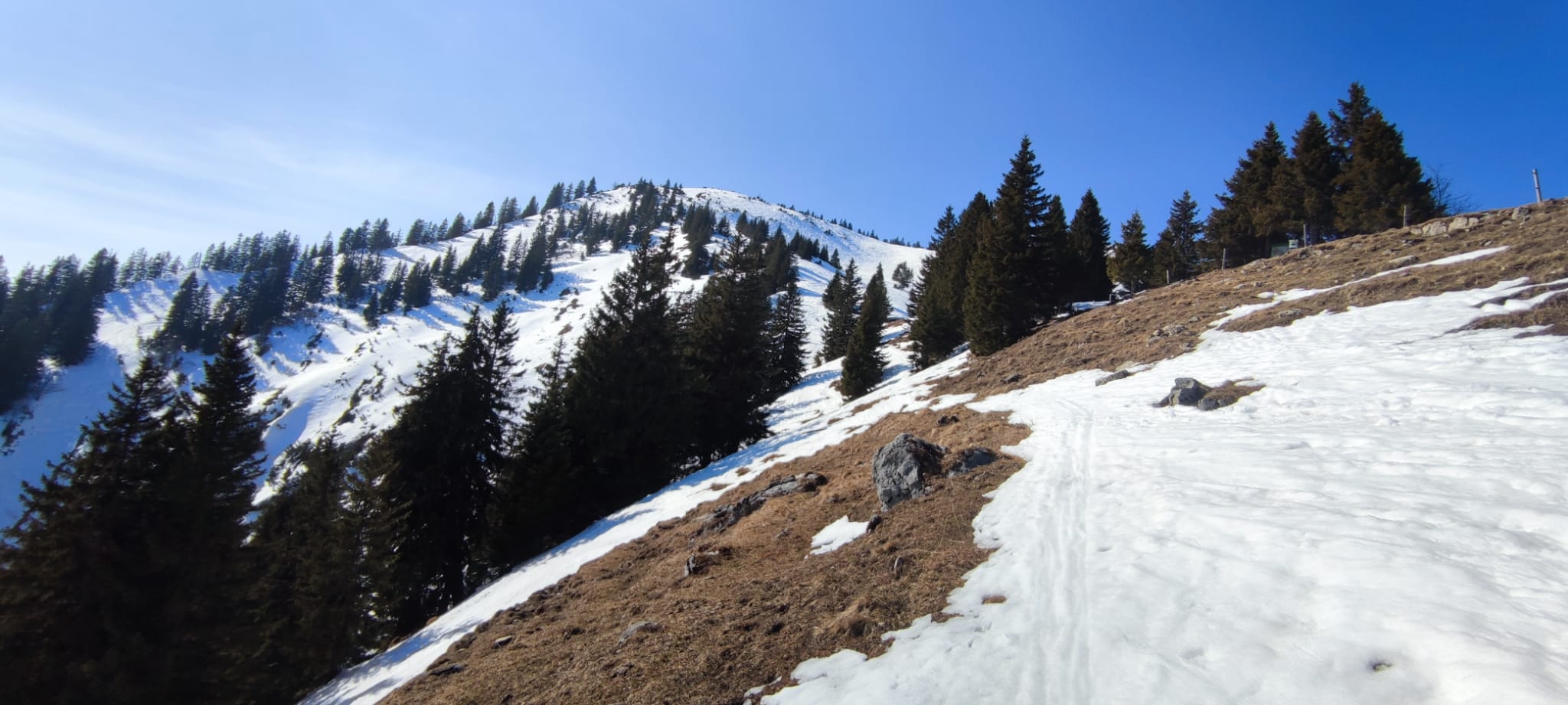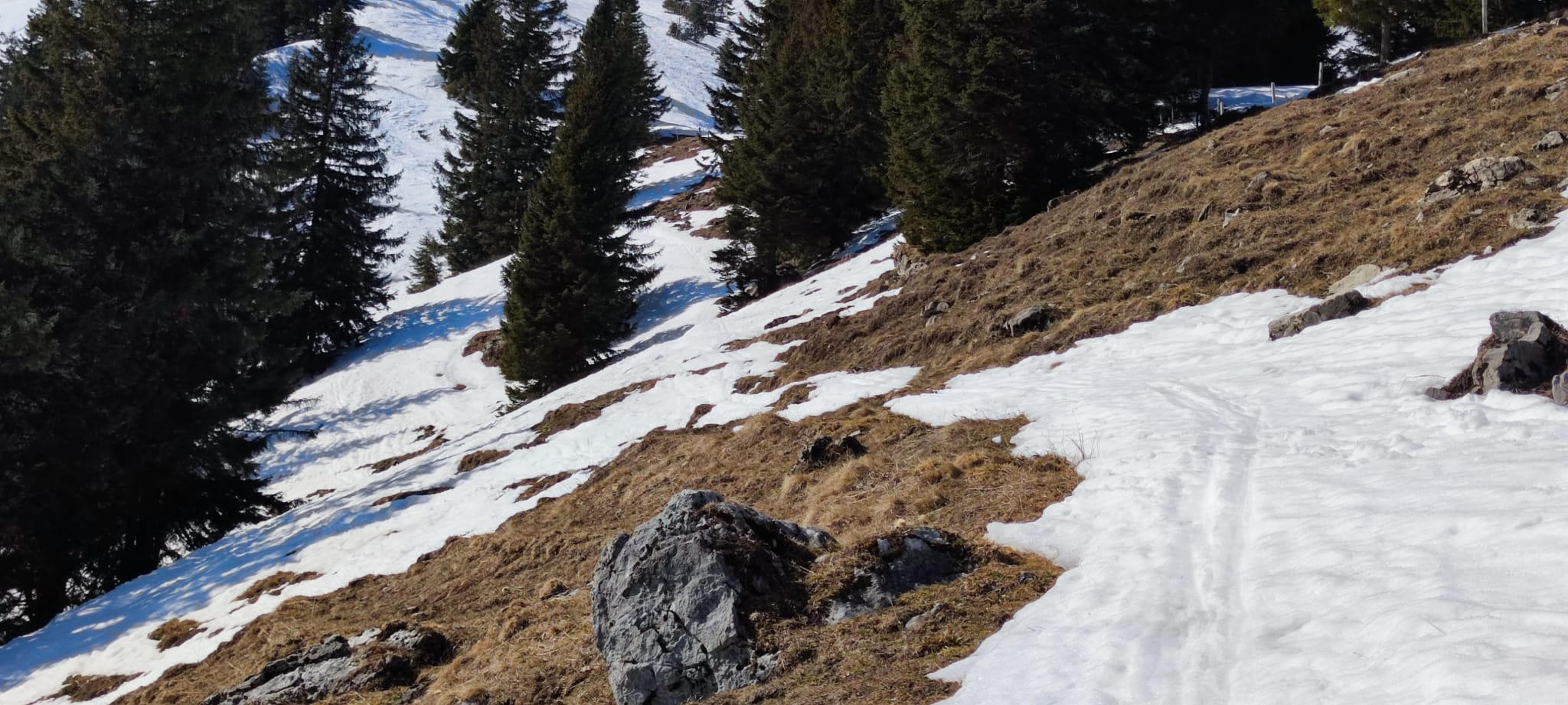 Ab Start noch genug Schnee, nur einmal Querung der Straße nötig. Beim Aufstieg die kürzere Variante (Abkürzen der Forststraße im unteren Teil) gewählt, da einmal etwas problematisch mit aperen Stelle, sonst ok. Im weiteren Verlauf alles ohne Probleme, nur wie erwartet ganz oben der Gipfelhang schon von vornherein komplett abgeweht gewesen. Hab mir auch in Anbetracht der Länge der Tour und der Uhrzeit die letzten paar Meter zu Fuß gespart. Vorsicht oben vor den Wechten, da nicht gedankenlos sein (vgl. Bilder!).