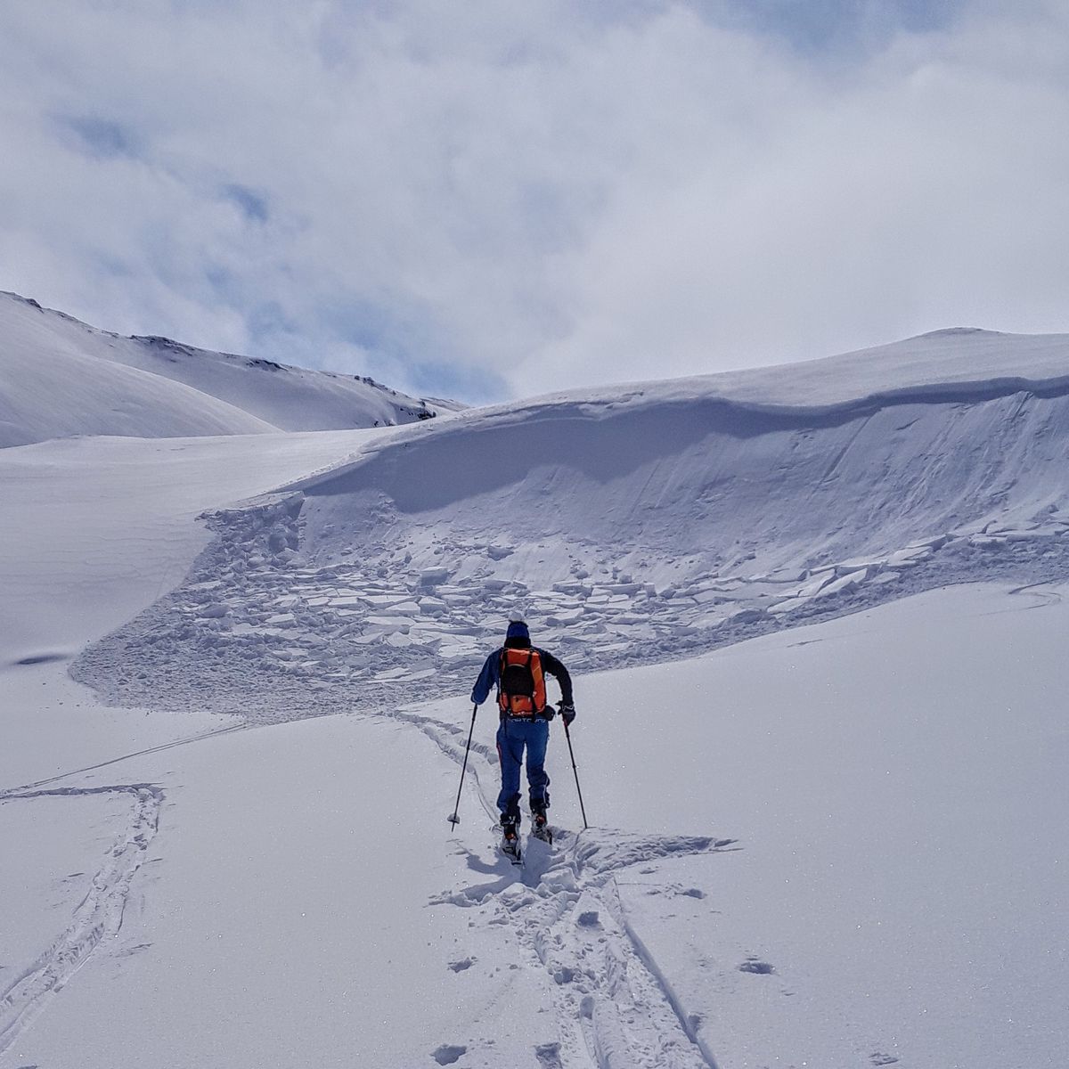 Nordseitig ist der Neuschnee von gestern noch einigermaßen trocken, die Abfahrt über den Gletscher noch gut. Beim Abstecher zur Fraganter Scharte kommen wir allerdings in die Wolke die südseitig ansteht, so dass die Sicht stark reduziert ist. Abfahrt durch die Wintergasse. Genügend Schnee bis zum Ausgangspunkt.