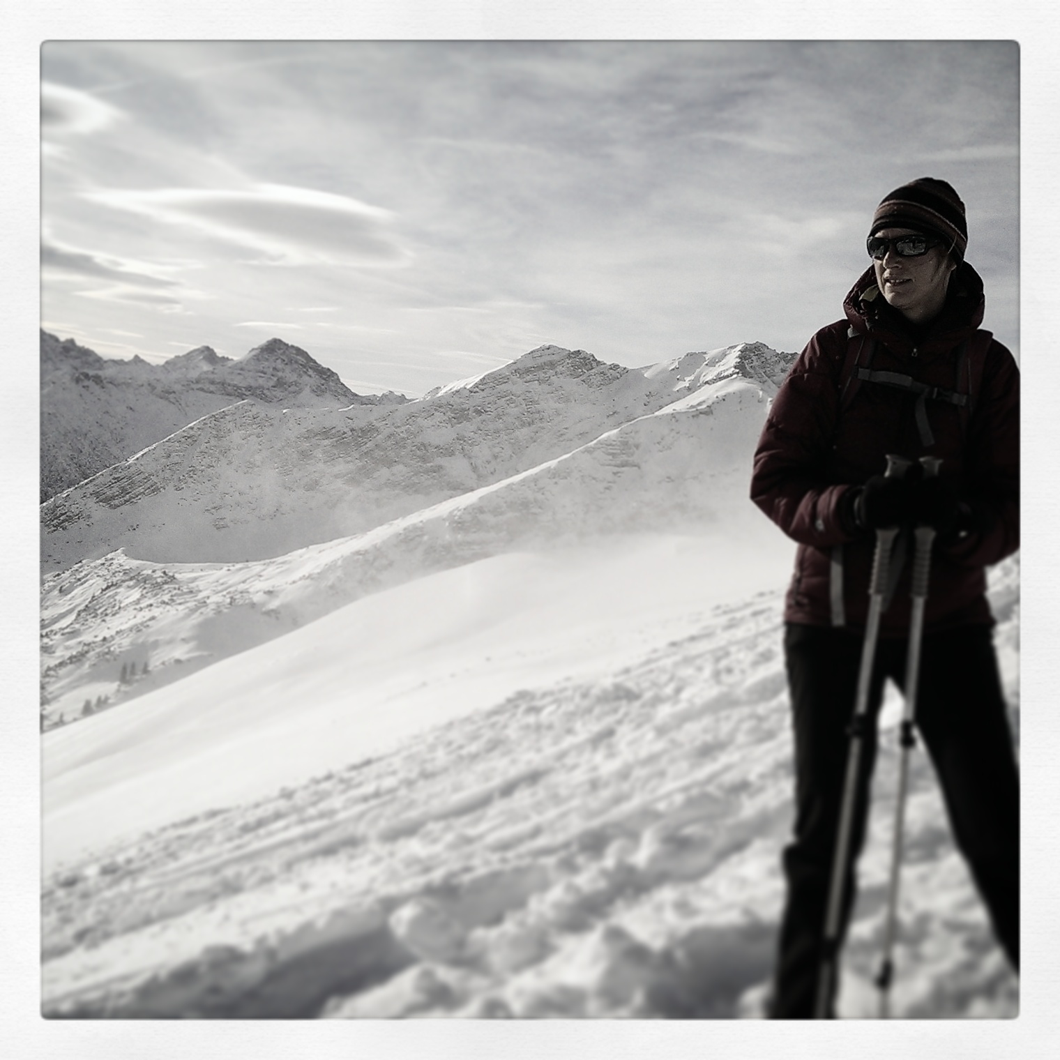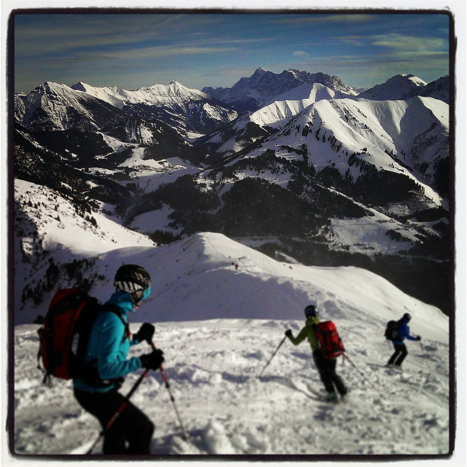 In der Abfahrt auf ca. 2000m nochmal aufgefellt und das Wildgrabenjoch im Pulver gespurt, +350hm.