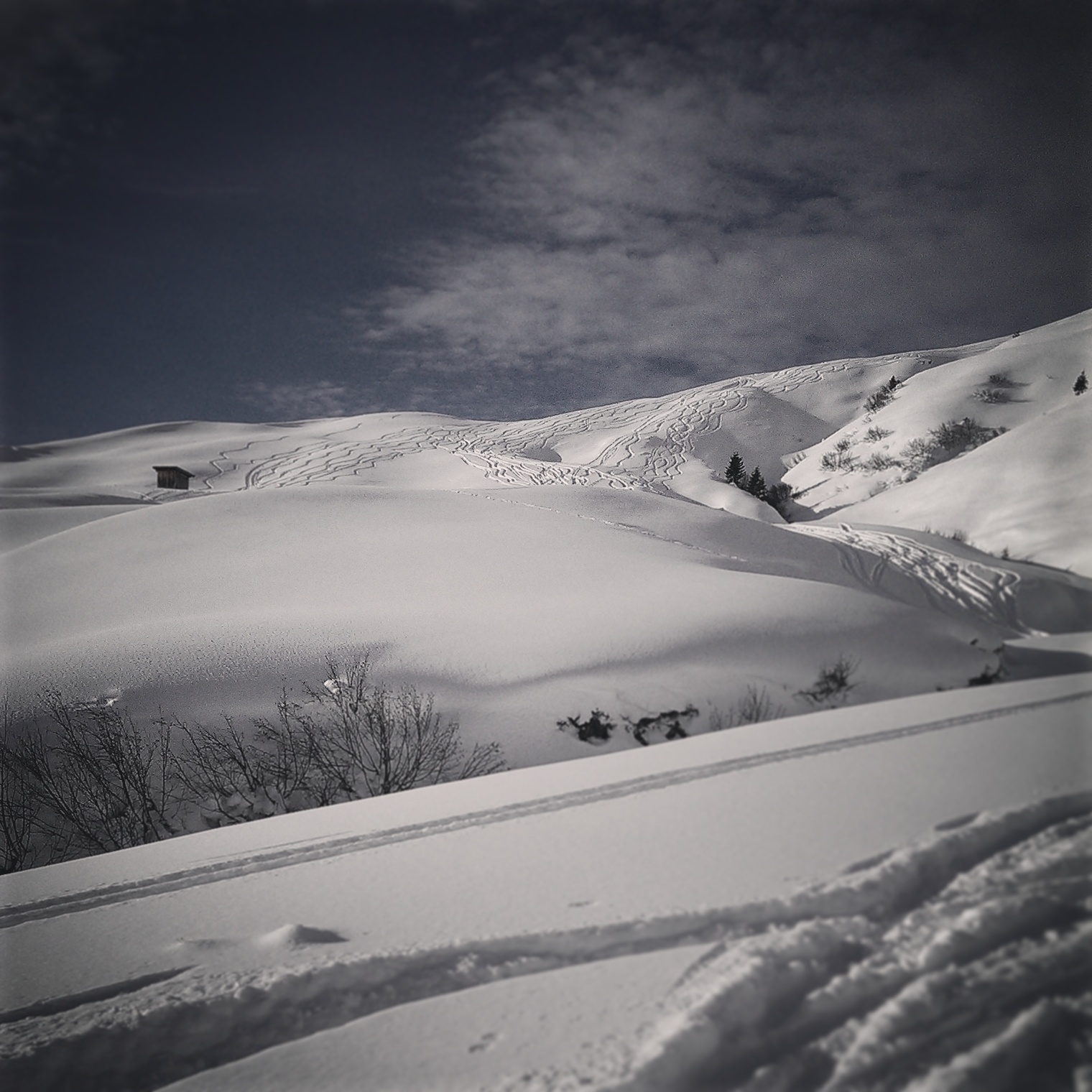 1530h auf der Rodelbahn beste Verhältnisse; ohne Ziehen bis zum Auto.