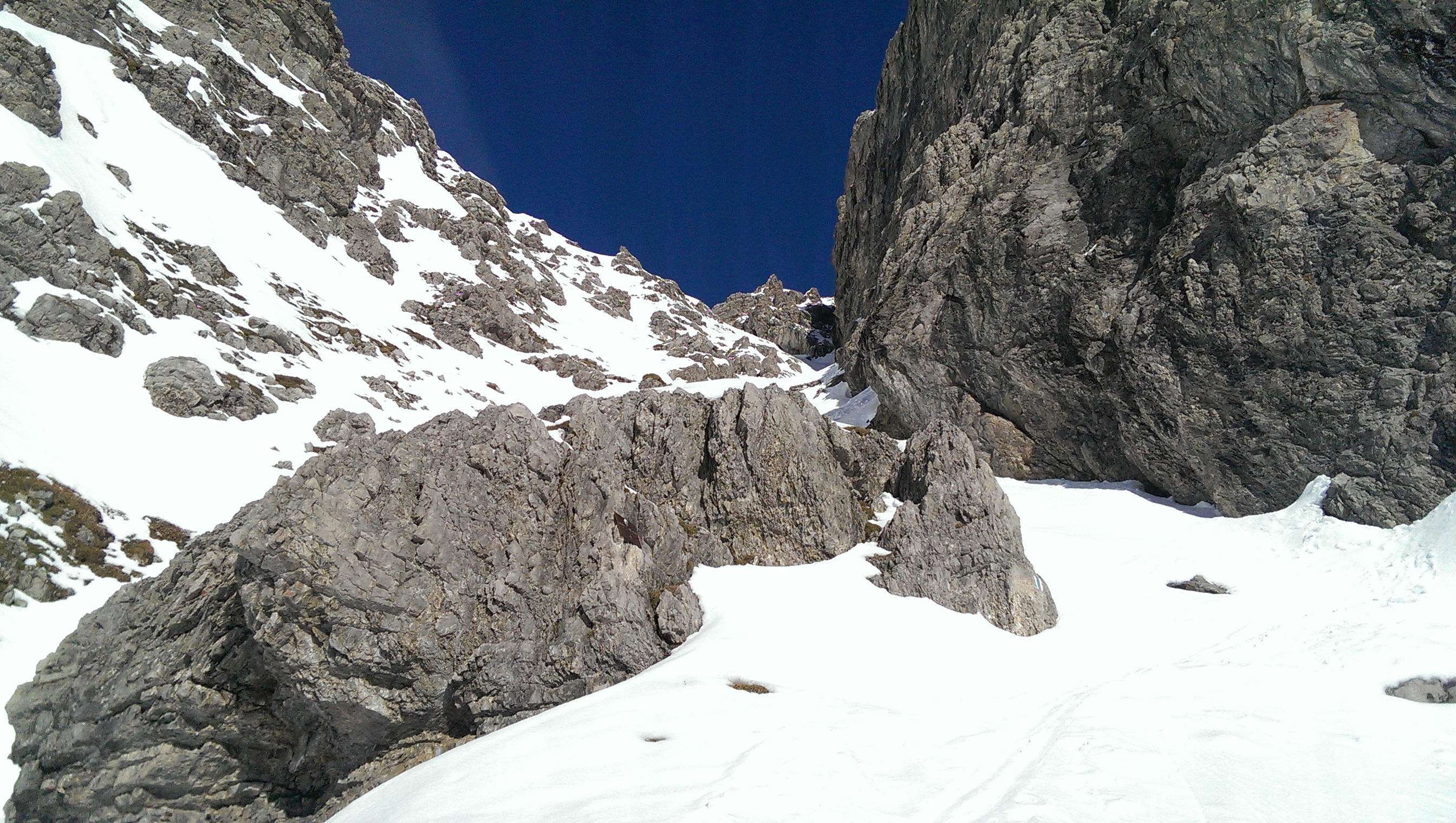 Aus den Felsflanken fiel ab 1000h alles, was nicht ausgewachsen war. Es ist aber genügend Platz im Kessel, um dem aus den Weg zu gehen.