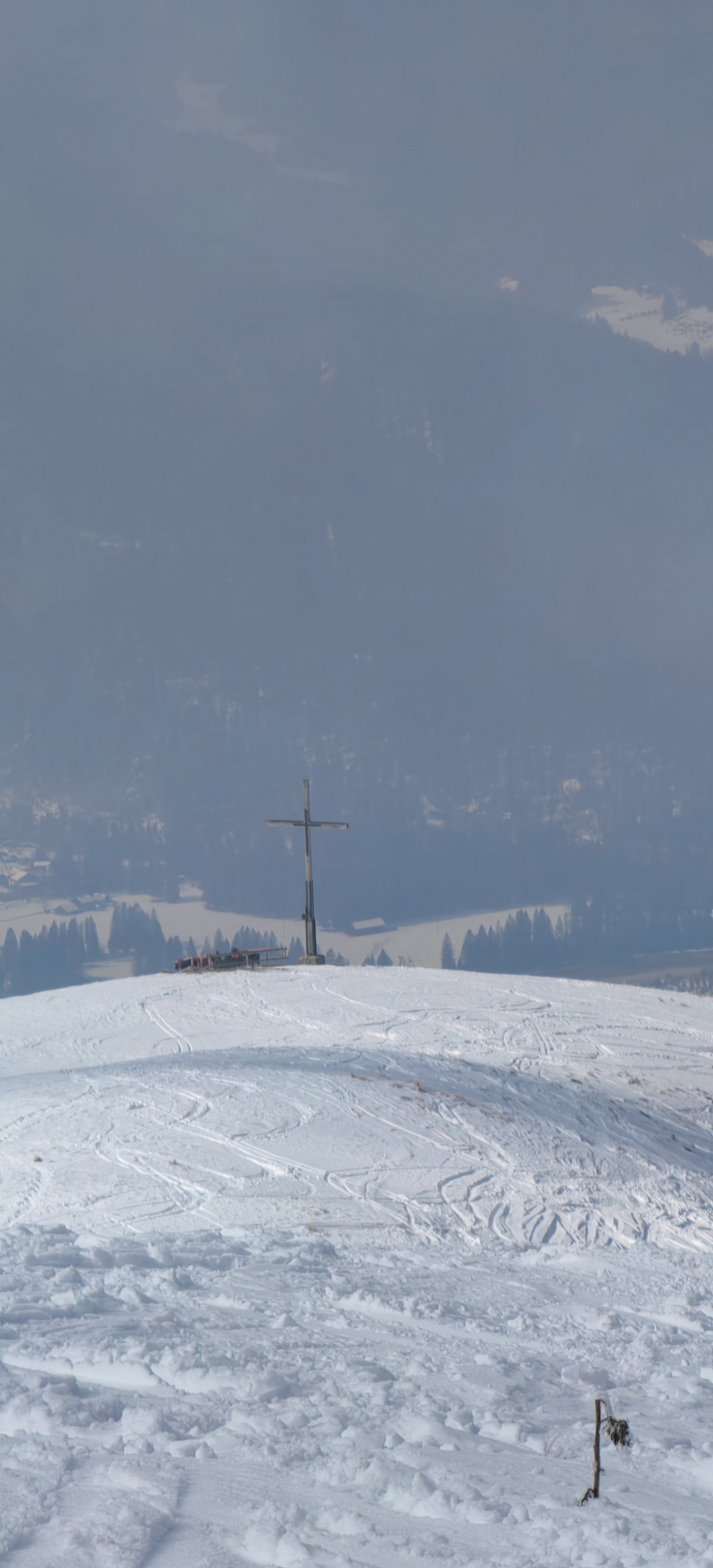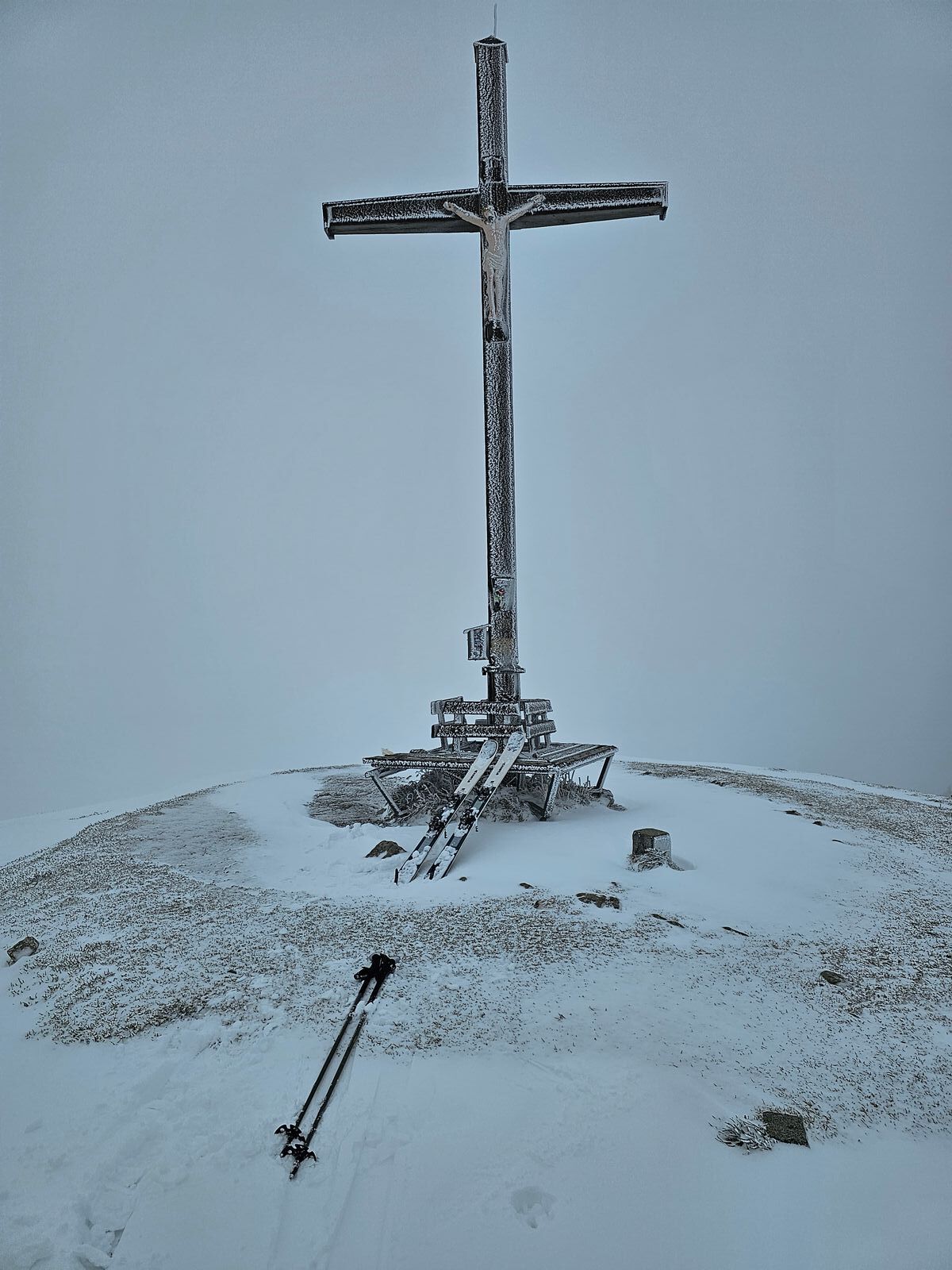heute war es dann soweit, mit "Stoaschi" bewaffnet ging es zum Spitzingsee. Vom Parkplatz Stümpflingbahn direkt auf die Ski und Aufstieg auf relativ dünner und feuchter Schneeauflage über den Osthang zum Stümpfling. Von dort mit kurzer Zwischenabfahrt hinüber zum Roßkopf. Der Gipfel war wie meistens stark abgeblasen und es herrschte ein ungemütlicher Westwind. Mit viel Umsicht war die Abfahrt mit einigen leichten Kontakten gerade so möglich. Um die Mittagszeit hatte es ca. 20 cm relativ komprimierten, feuchten Schnee auf der Piste, nach oben leicht ansteigend, wieder am Parkplatz angekommen waren die Verhältnisse schon deutlich schlechter.