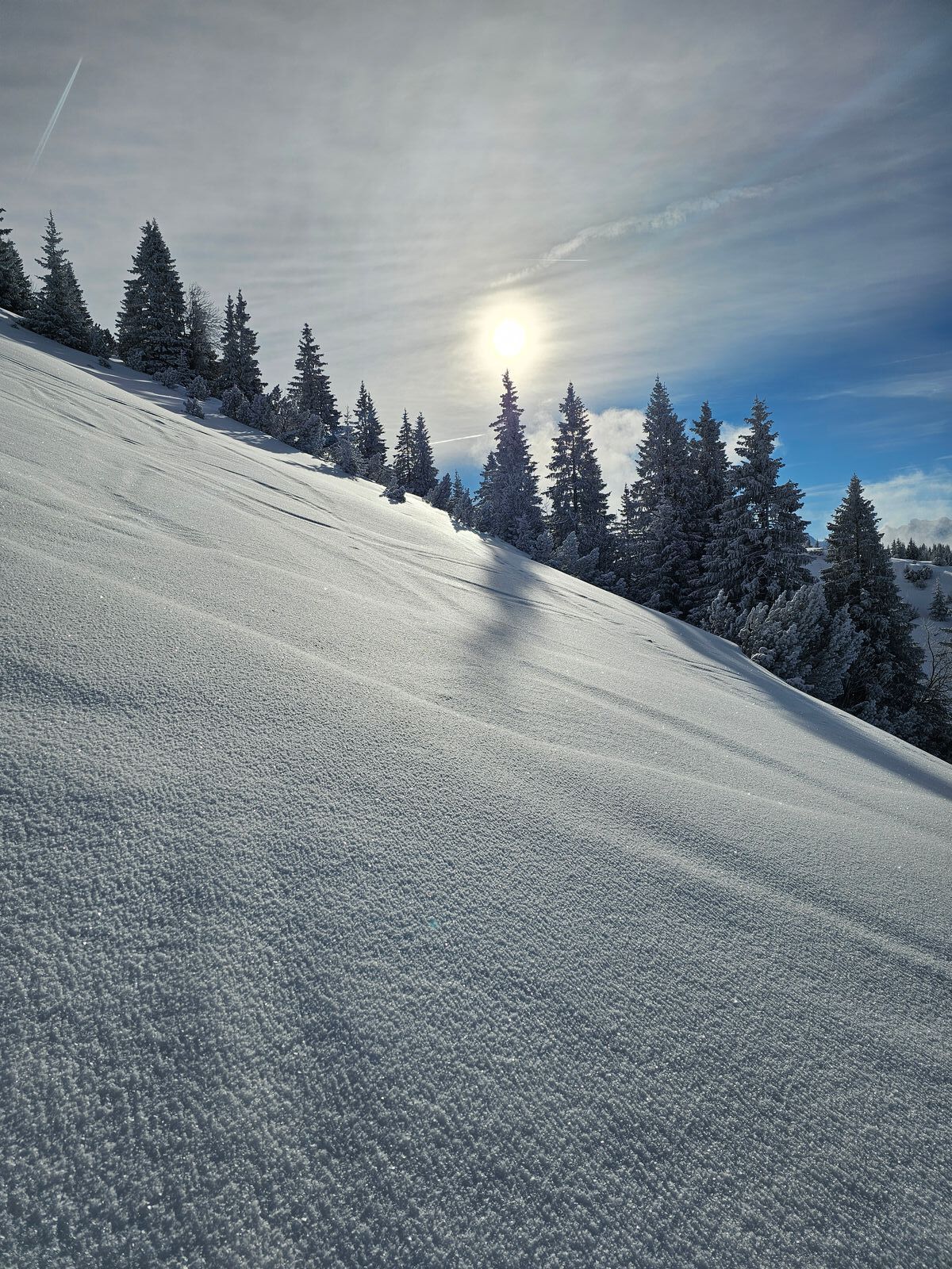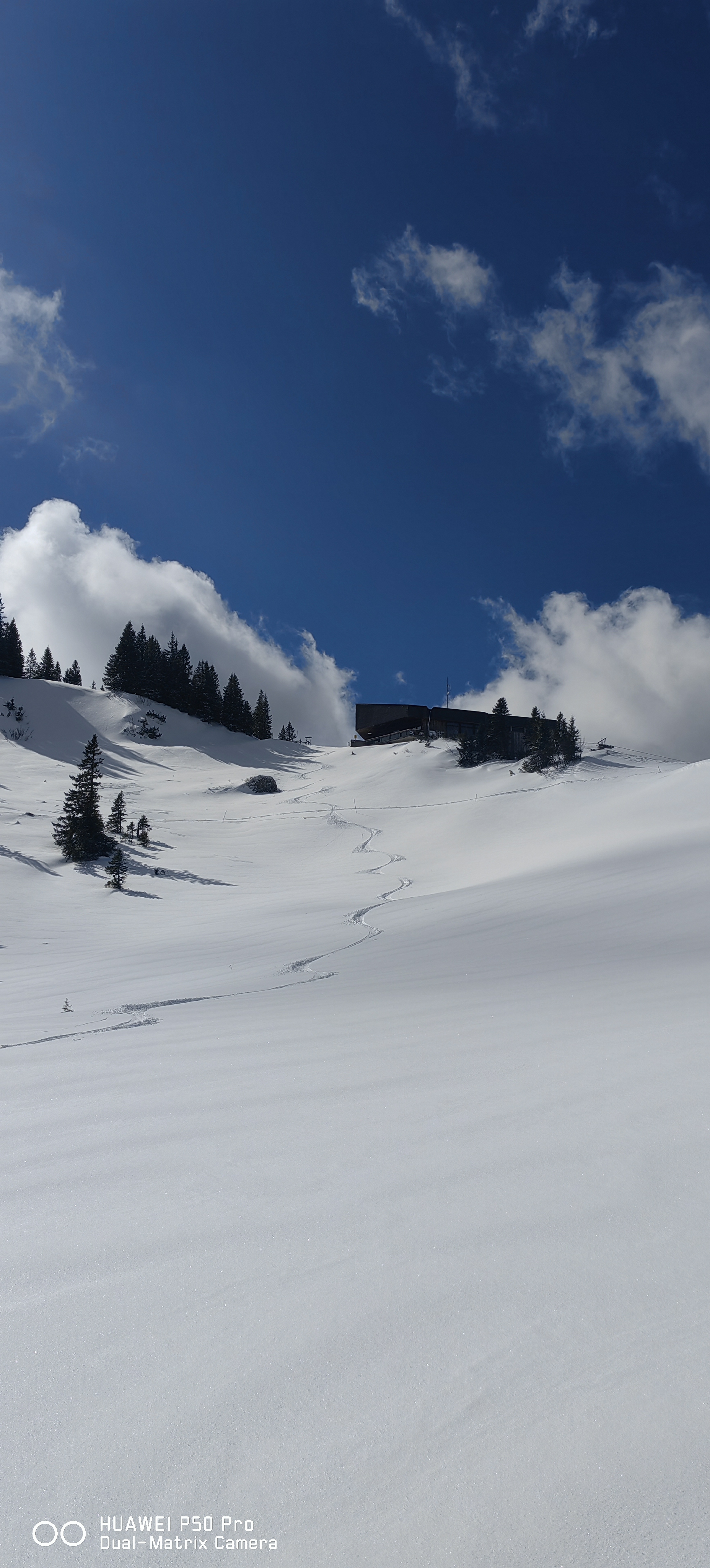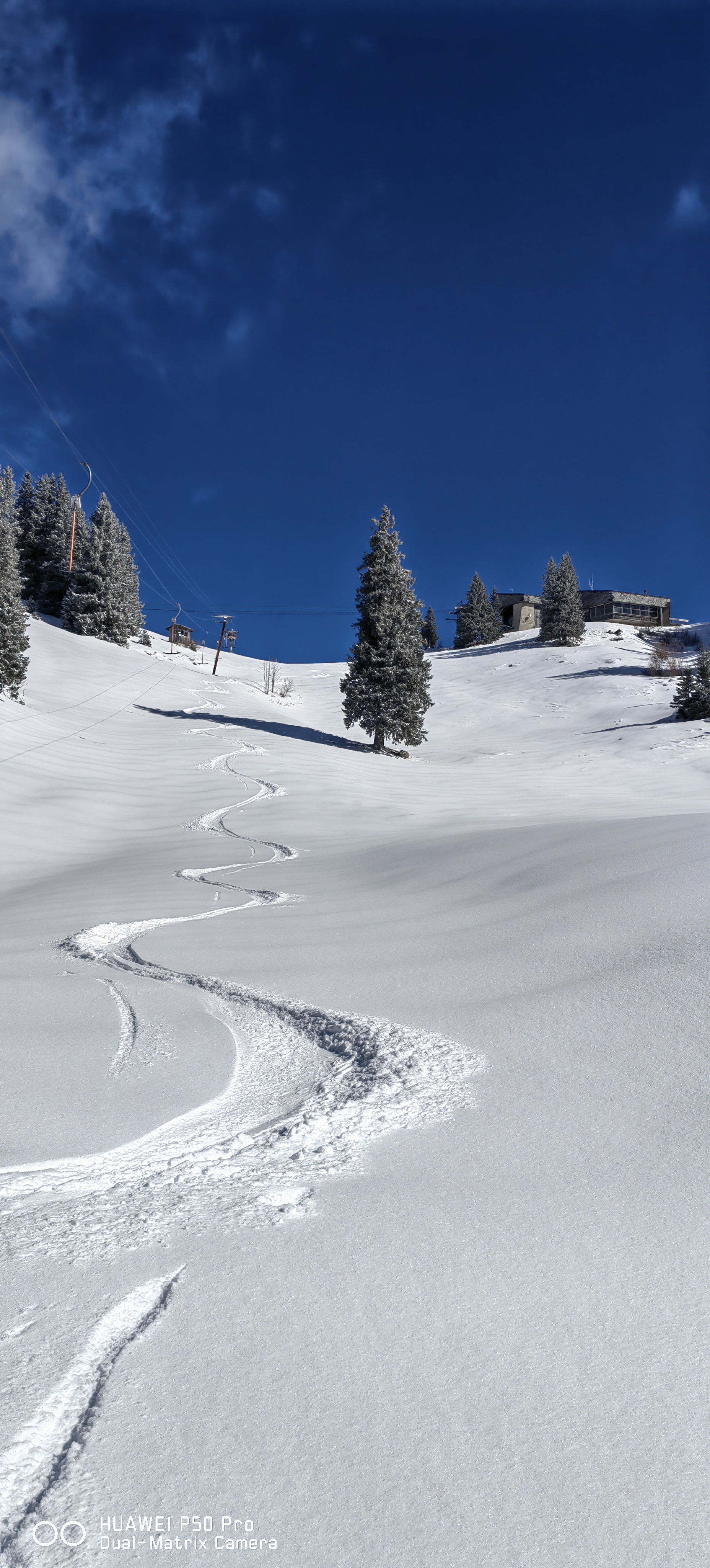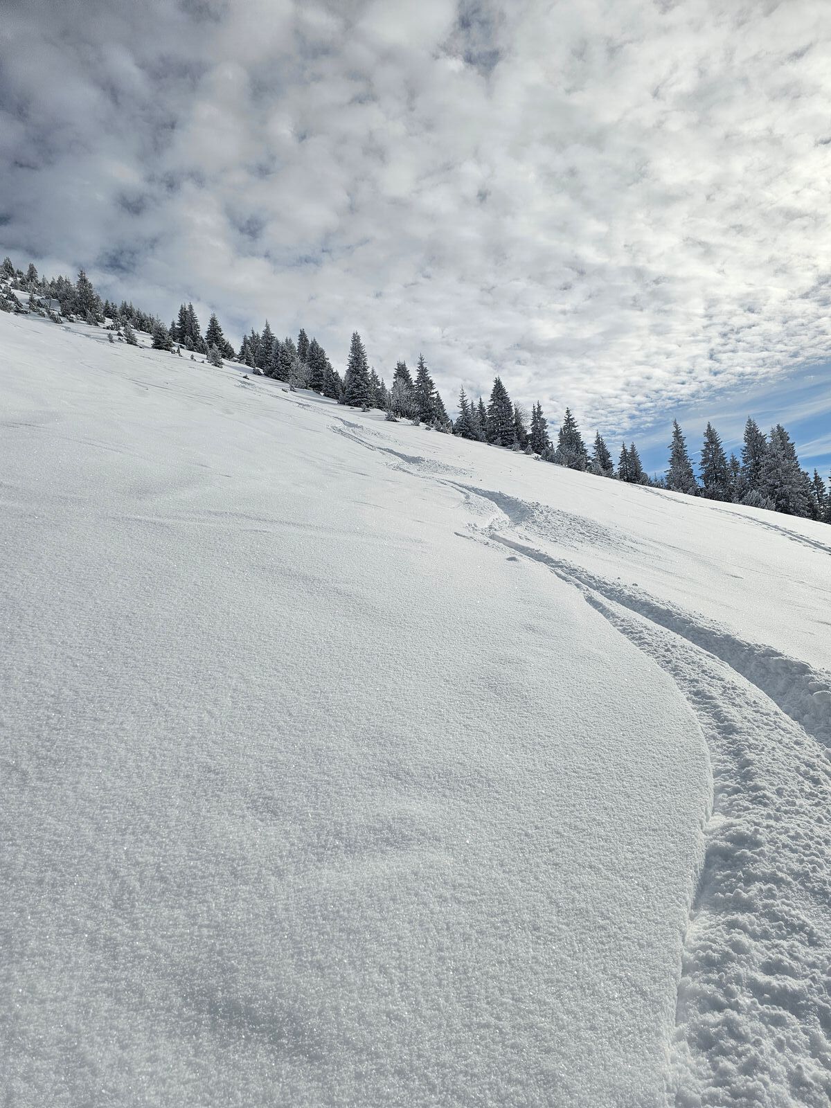 ( ca. 15 cm feiner Pulver auf teilweise tragender Schicht ) hier gehen sich schon tolle Schwünge aus8), sind aber leider nur so 350 hm.