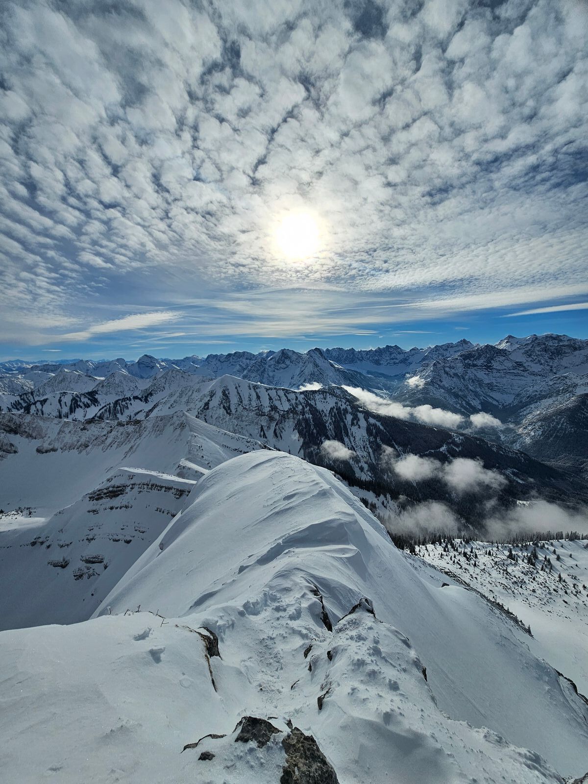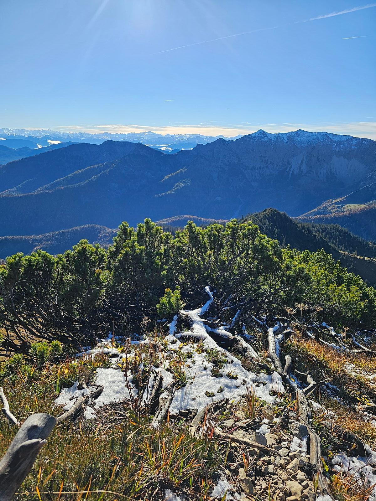 Heute gab es nochmal die Möglichkeit für eine schöne Herbstwanderung. Meine letzten Touren ( Hohe Munde und Gartnerwand ) waren überwiegend von Kälte und Schnee dominiert, so sollte heute mal mehr Sonne dabei sein. Der südseitige Aufstieg zur Auerspitz schien da genau richtig. Wie in Tourentipp beschrieben die Route vom Parkplatz zum Sillberghaus und weiter südseitig der Maroldschneid bis zum Kammverlauf, dann die Latschengasse rechts hinauf zum kleinen, eisernen Gipfelkreuz der Auerspitz. Bis hier herrschten beste Bedingungen ( herrlich sonnig und alles trocken ) und überraschend wenig Andrang. Der nordseitige Abstieg war bis zum Brotzeitfelsen sehr eisig und rutschig, hier war es neben dem Weg deutlich sicherer zu gehen. Ab der Ruchenkopfhütte dann alles wieder gut gehbar.