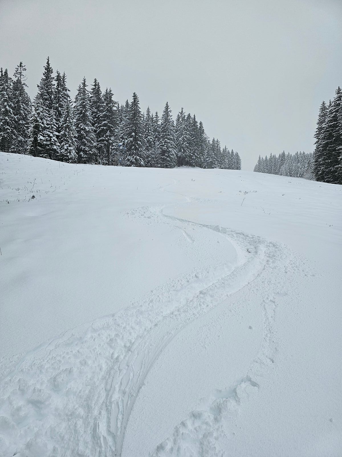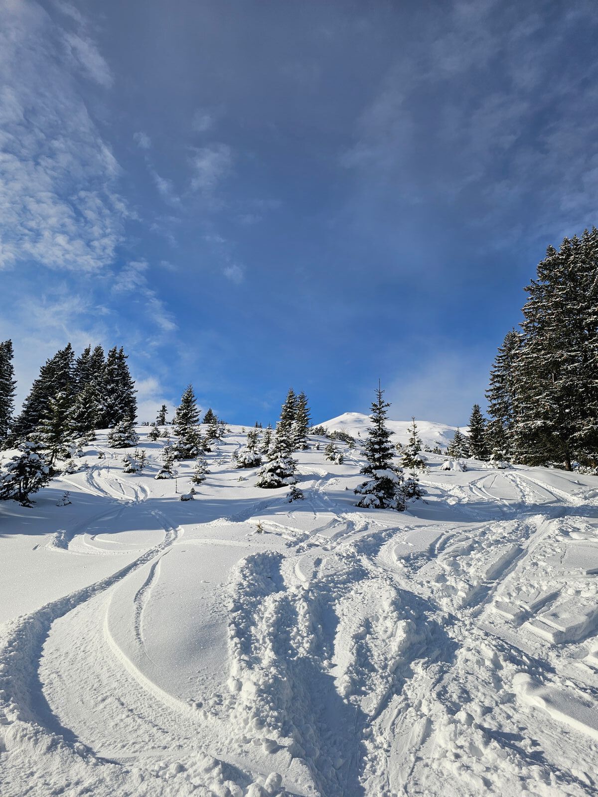 Im freien Gelände dann top Verhältnisse mit bis zu 25 cm feinsten Pulver auf guter Unterlage.