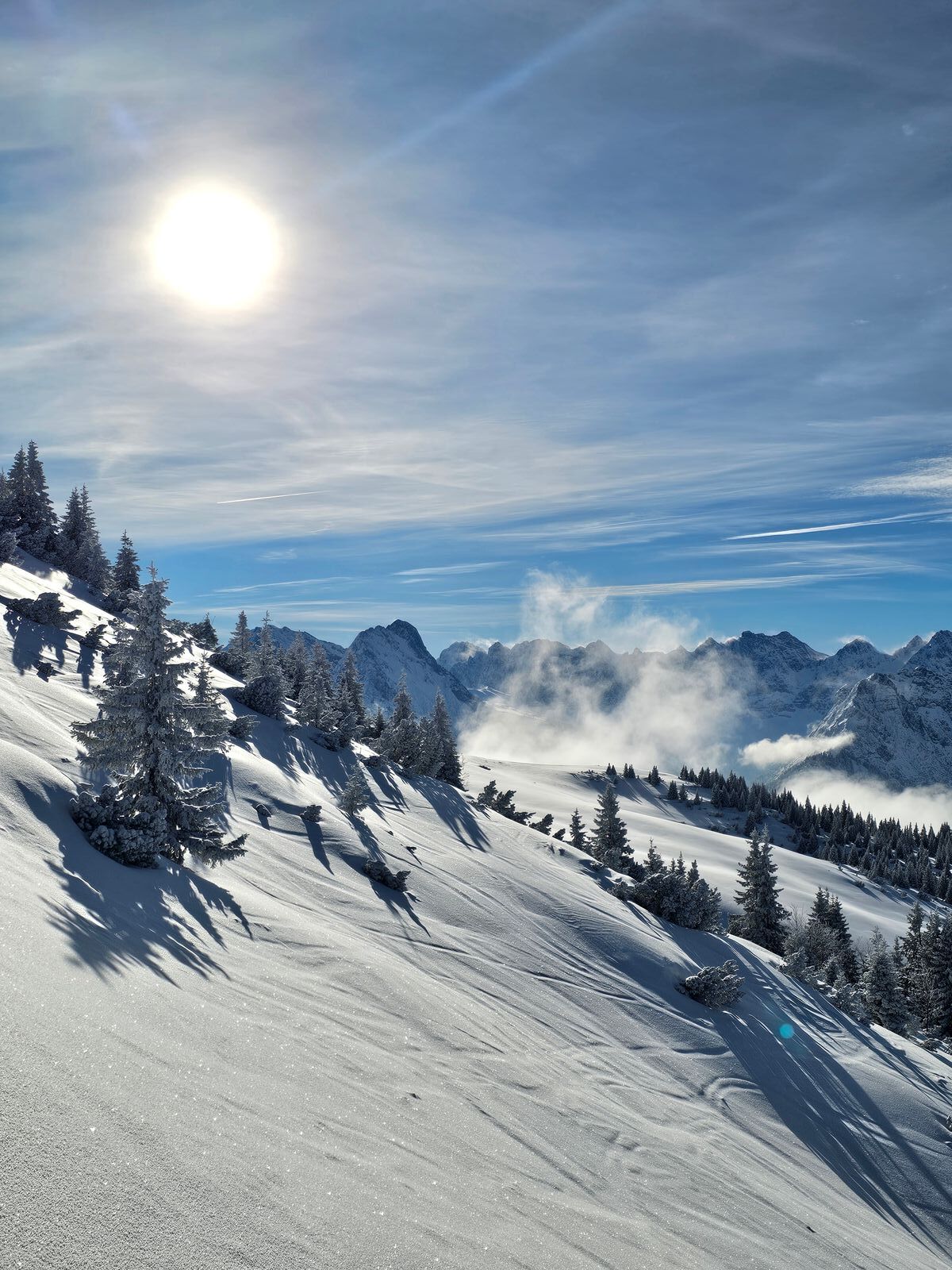 Nach dem nächtlichen Wintereinbruch gute Verhältnisse am Fahrenbergkopf.