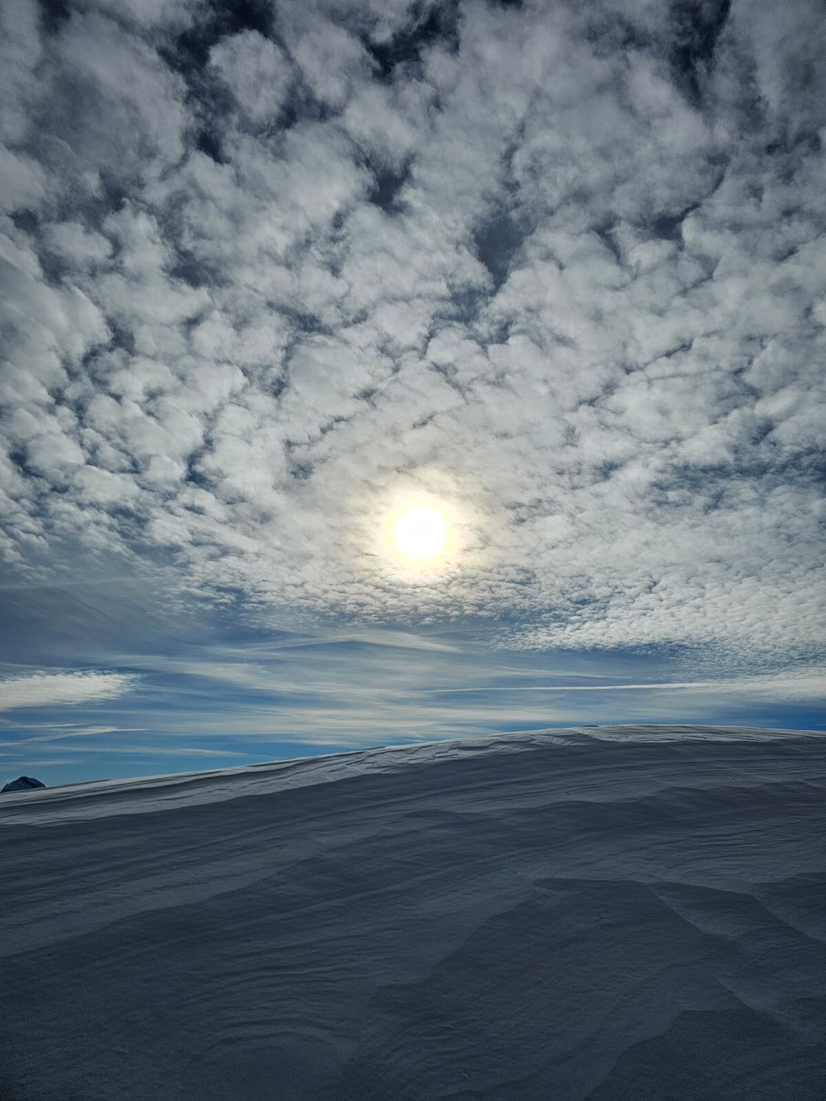 In exponierten Lagen ist der Schnee stark verfrachtet, die Lawinensituation ist aktuell sicher sehr genau zu prüfen! Viel Neuschnee und starker Wind, mehr muss man nicht sagen....