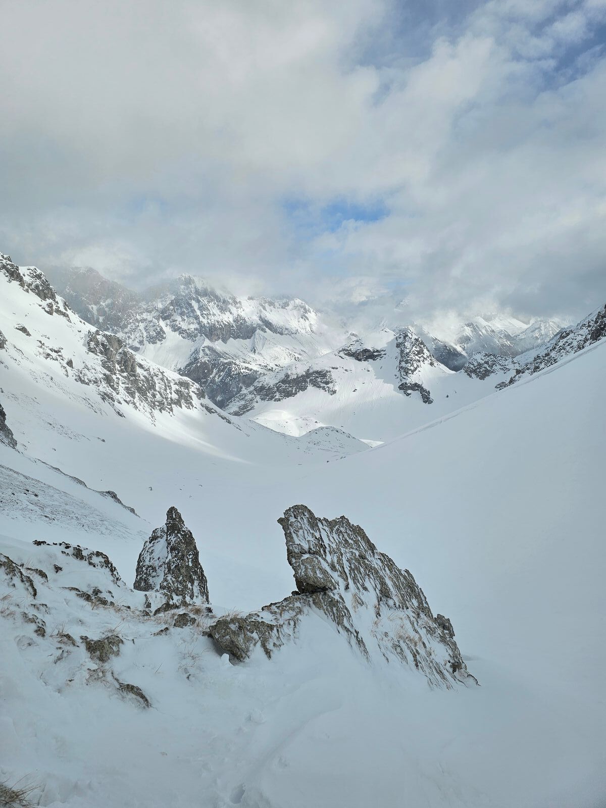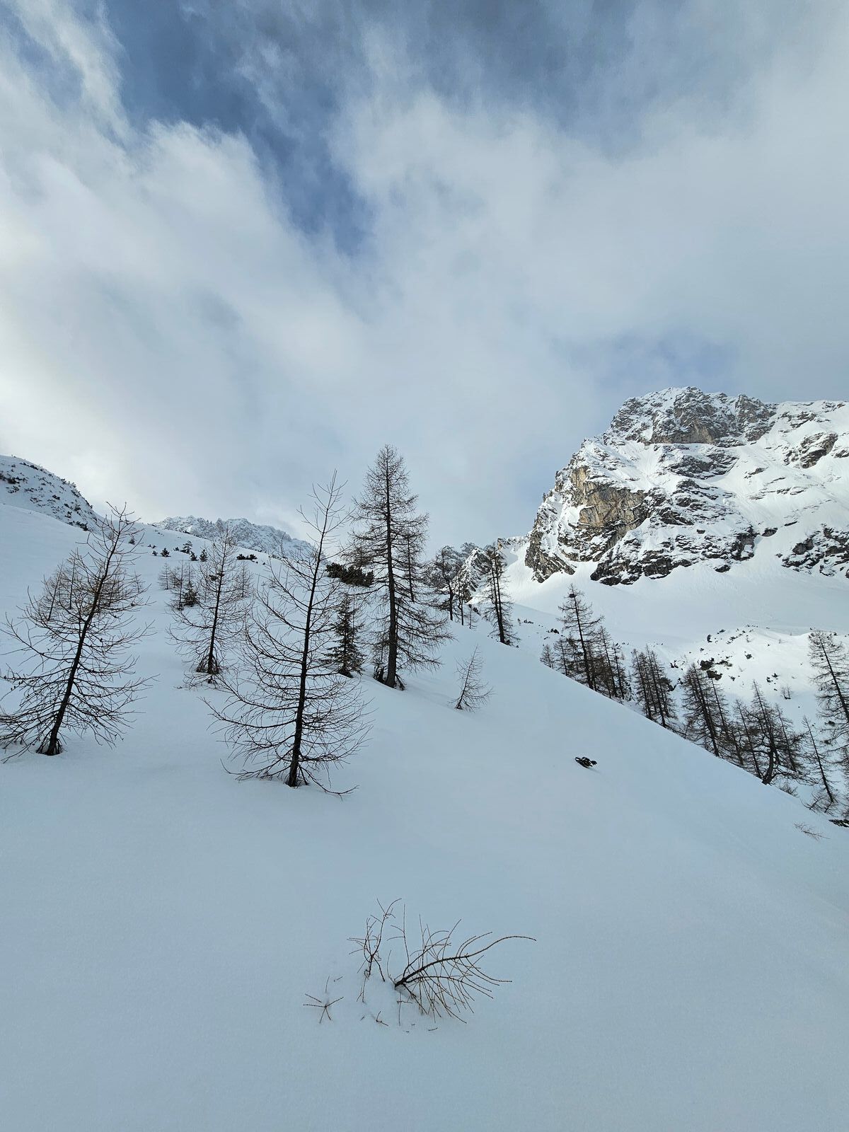 Gleich vorweg, es liegt tatsächlich sehr wenig Schnee im Gebiet und Skitouren im freien Gelände machen derzeit nur bedingt Sinn.